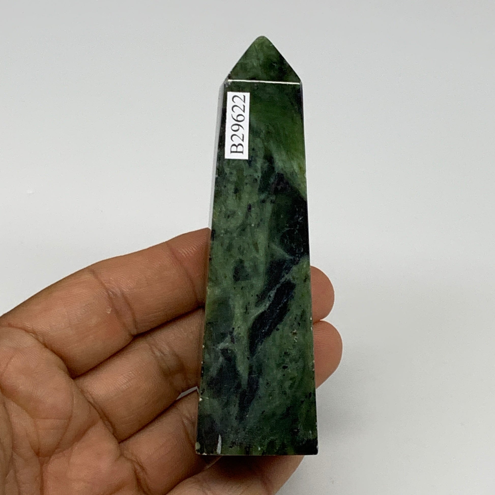 113.2g, 3.7"x1.1"x1", Serpentine Point Tower Obelisk Crystal @Pakistan, B29622