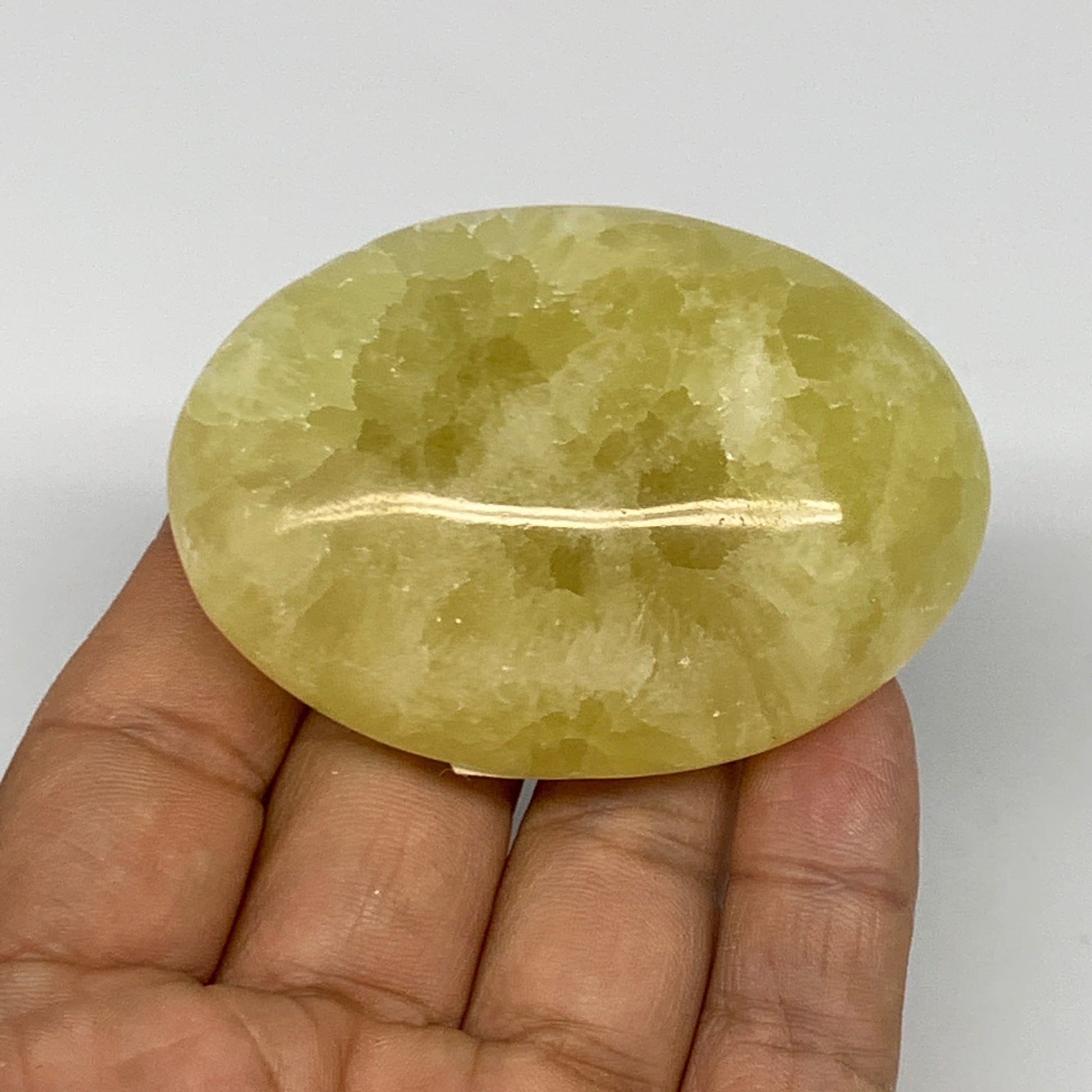 113.4g, 2.6"x1.9"x0.9", Lemon Calcite Palm-Stone Crystal Polished @Pakistan,B25537