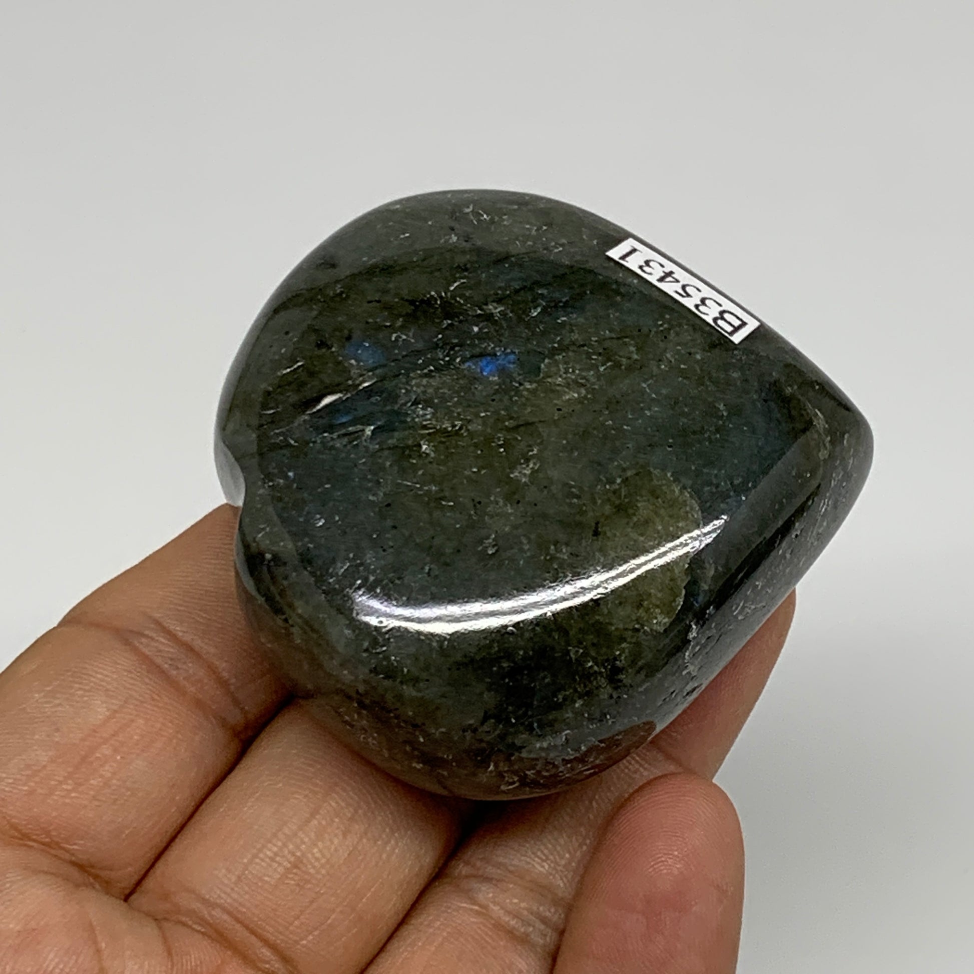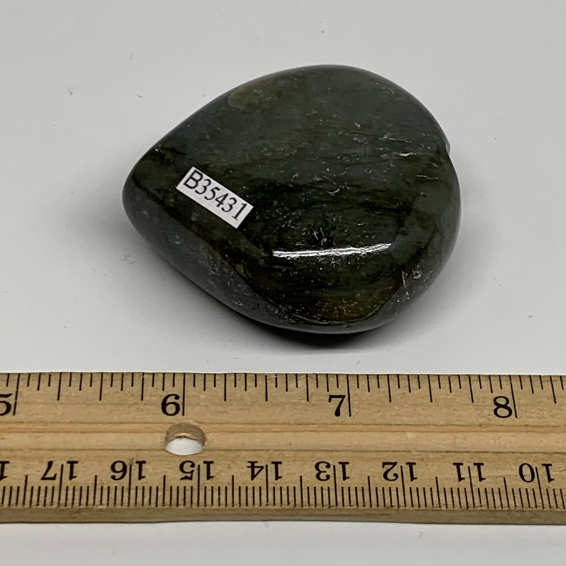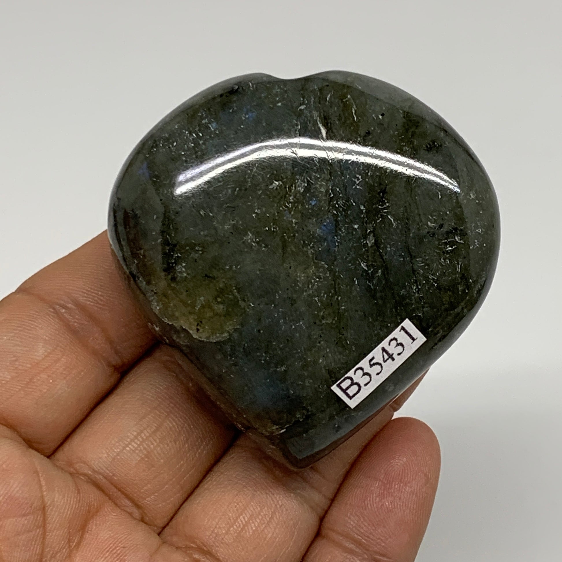 113.5g, 2.2"x2.1"x1", Natural Labradorite Heart Polished Crystal, B35431