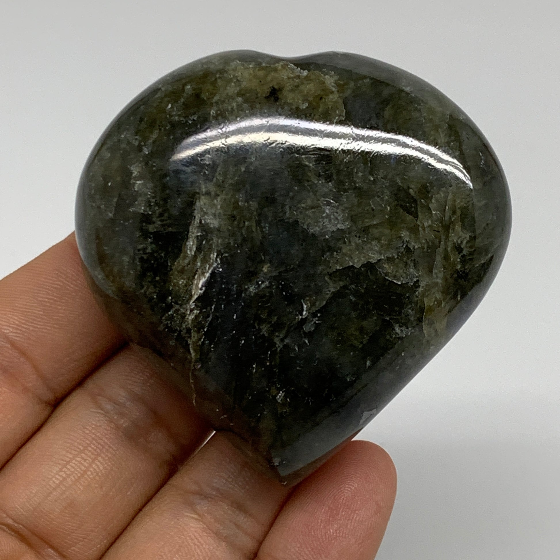 113.9g, 2.3"x2.3"x0.9", Natural Labradorite Heart Polished Crystal, B35417