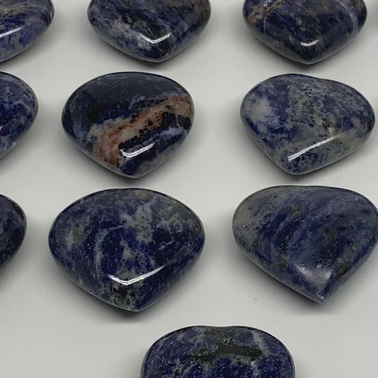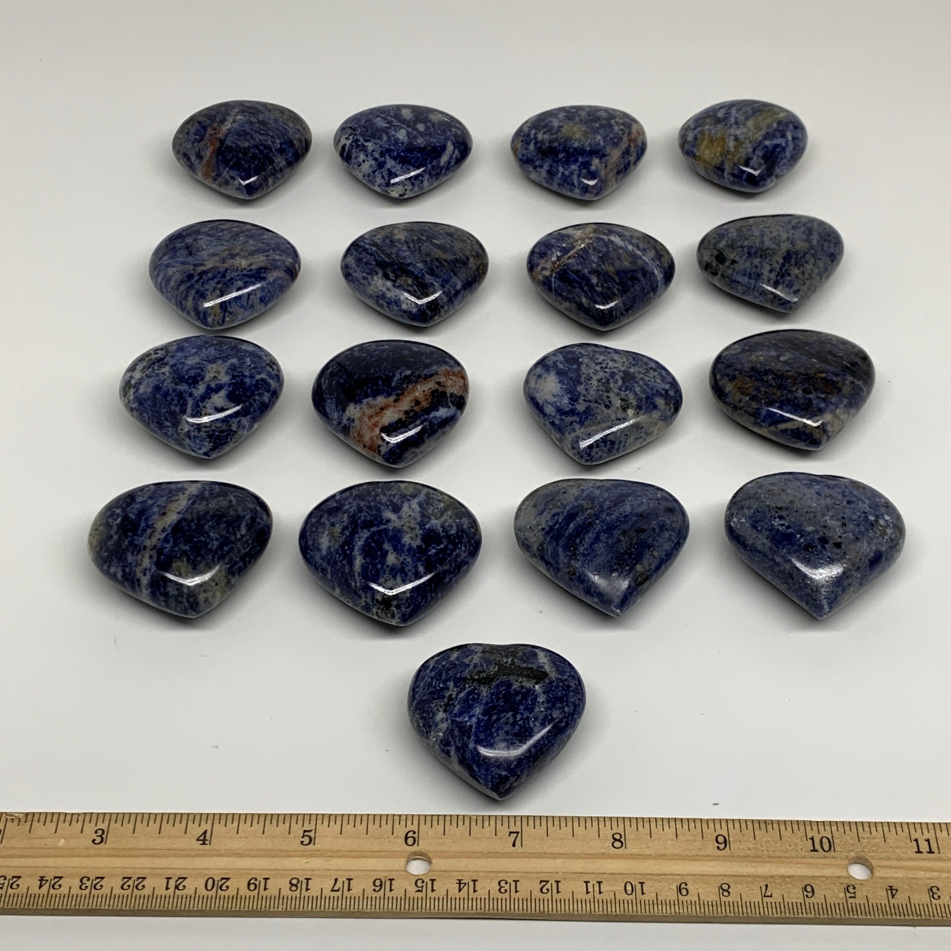 1130g (2.49 lbs) ,17 pcs, 1.7"- 2", Sodalite Hearts Polished Gemstone, B34880