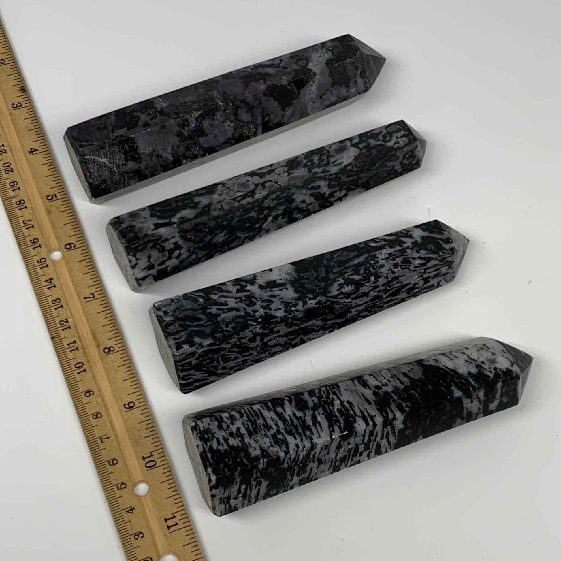 1135 grams, 5.4" - 5.9", 4 pcs, Indigo Gabro Merlinte Towers/Obelisks, B21438
