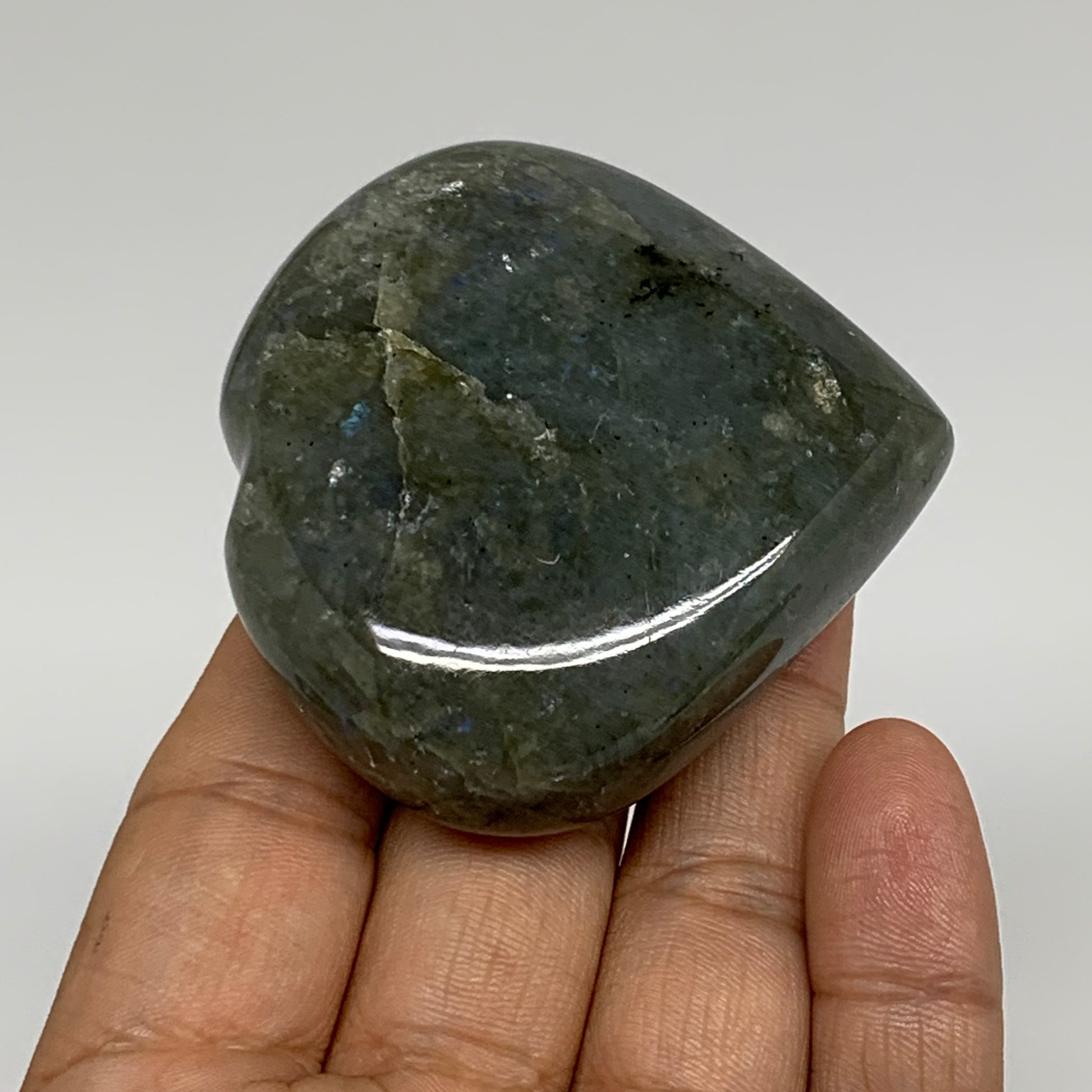 113g, 2.2"x2.3"x0.9" Natural Labradorite Heart Polished Healing Crystal, B35461