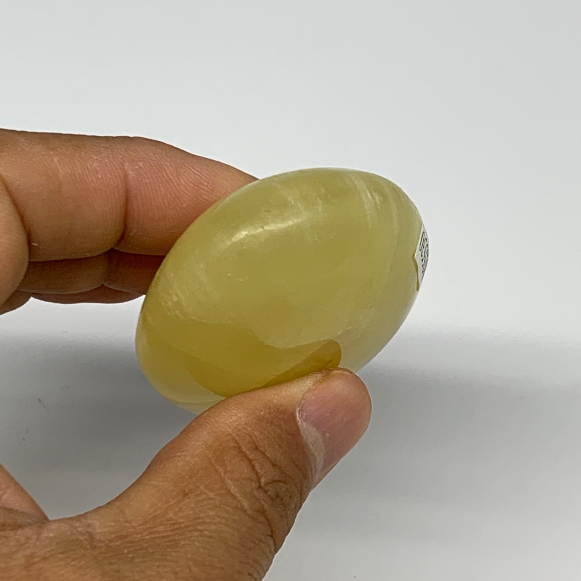 129g, 2.8"x1.9"x0.9", Lemon Calcite Palm-Stone Crystal Polished @Pakistan,B26431