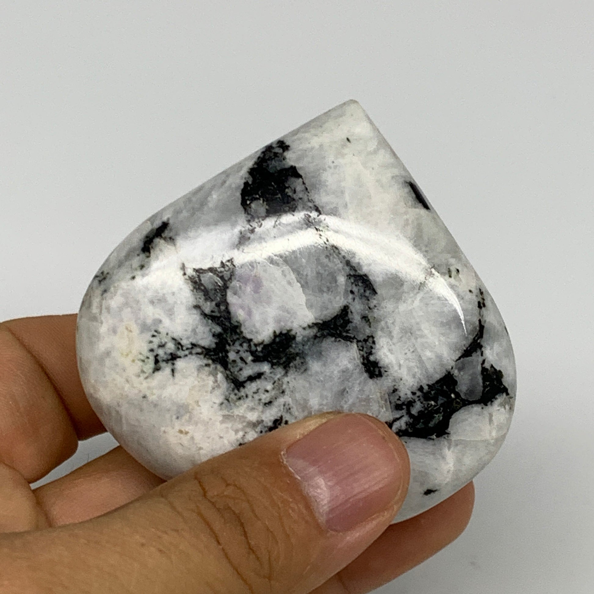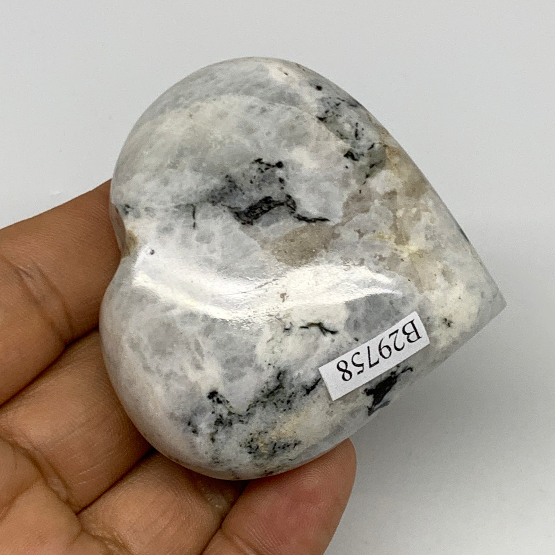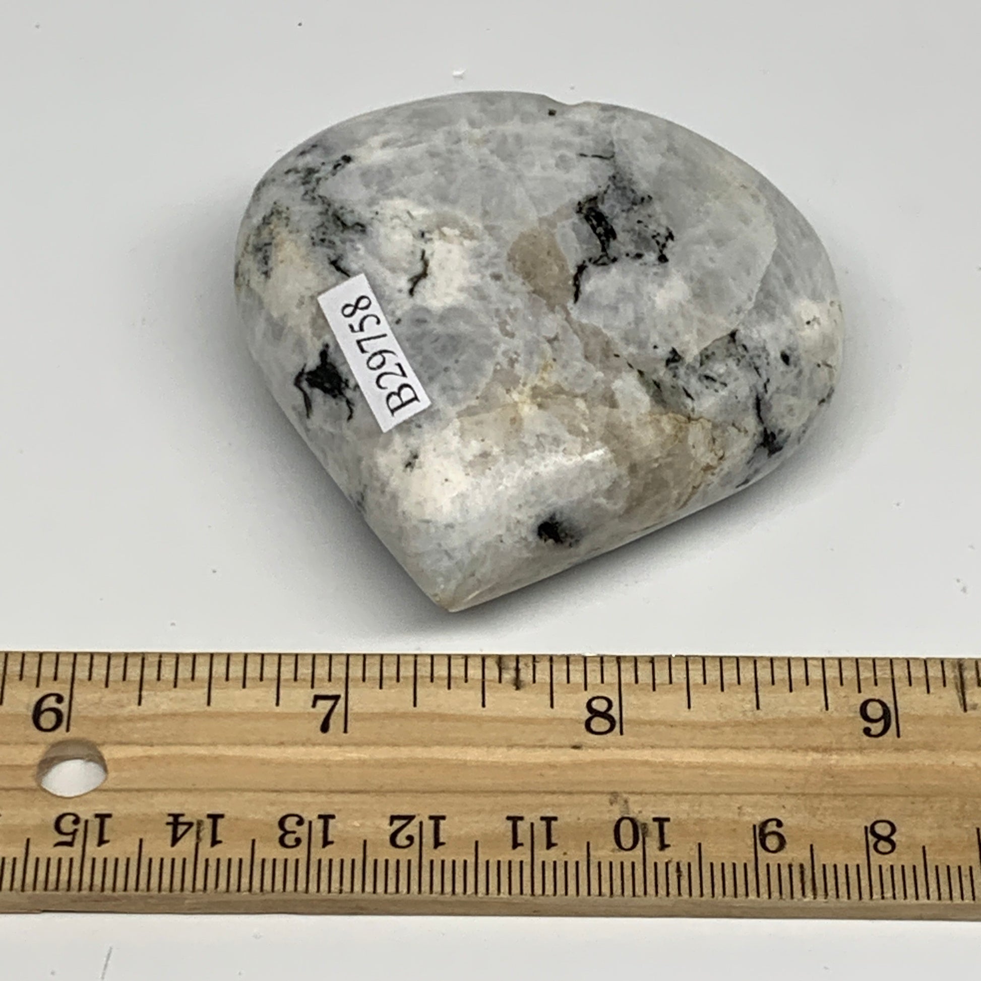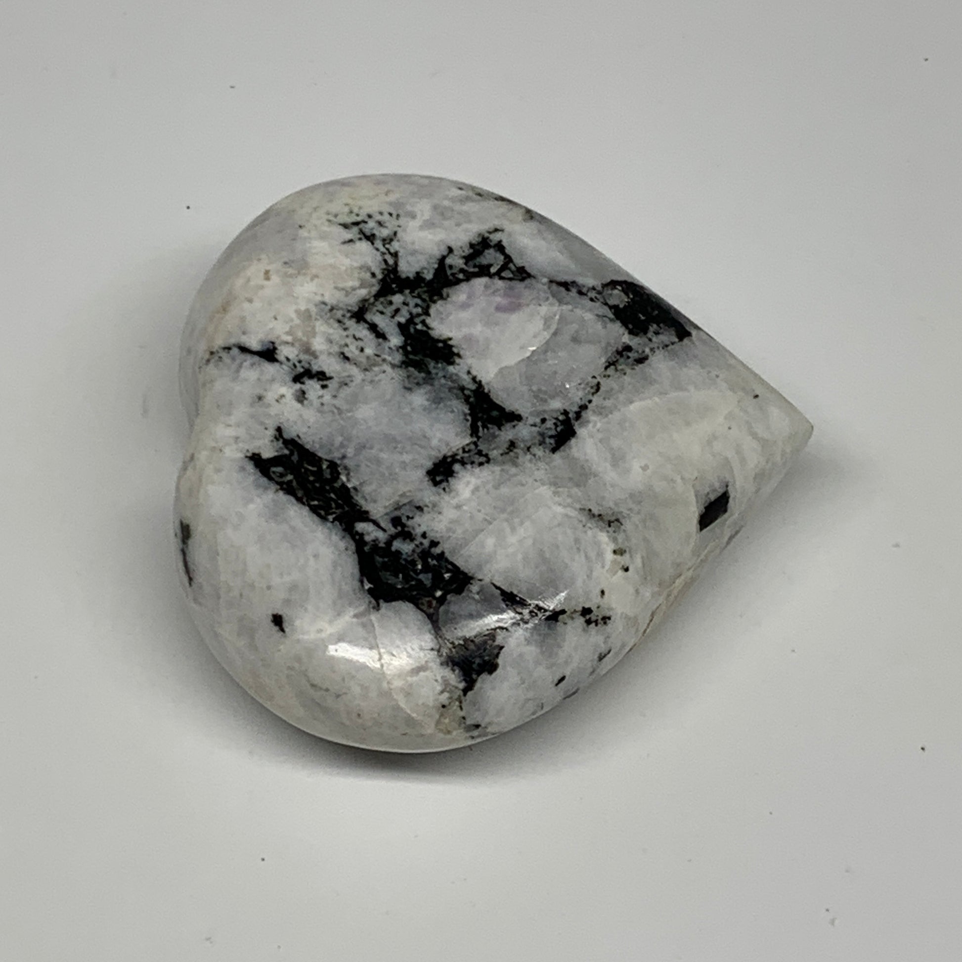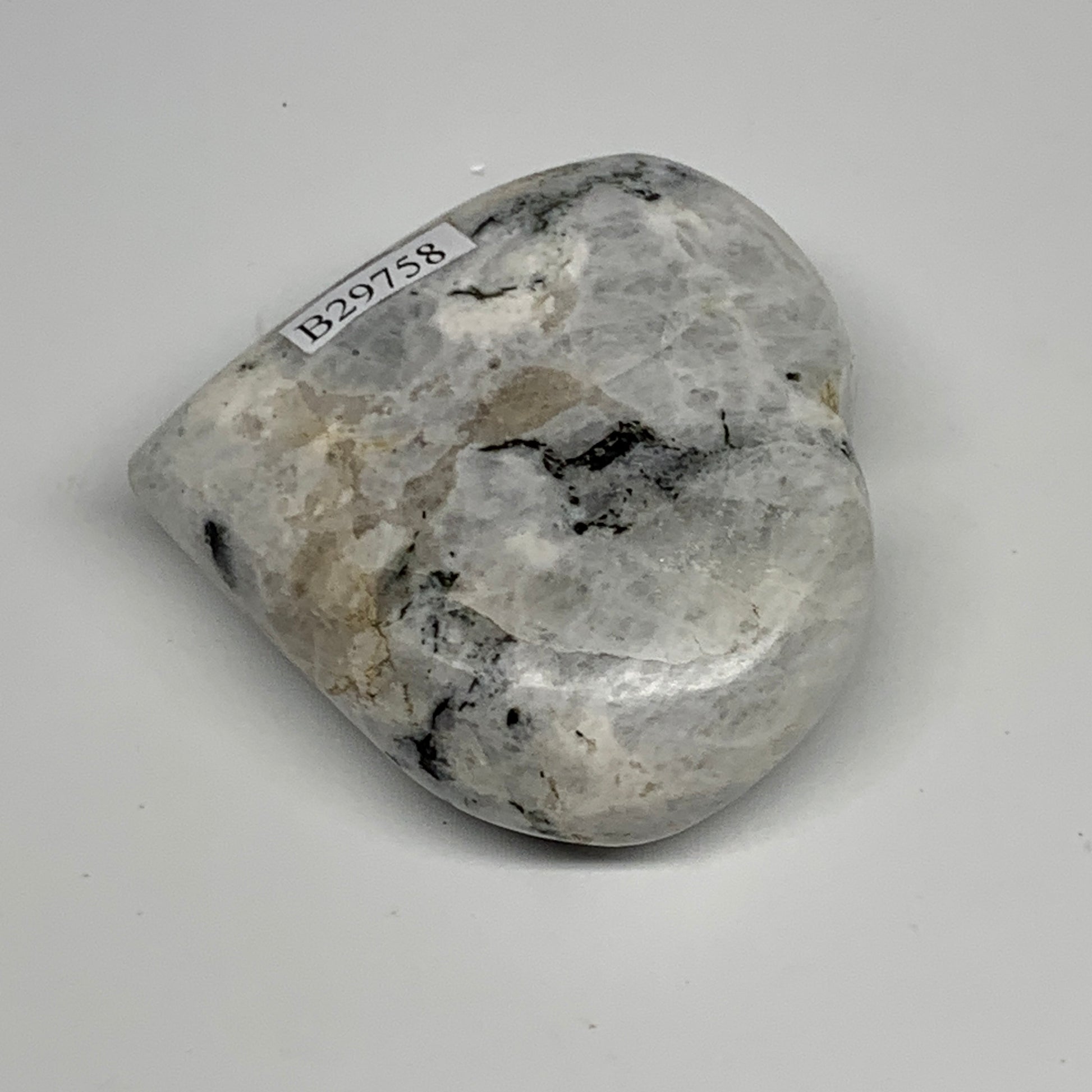 115.7g, 2.3"x2.4"x0.9", Rainbow Moonstone Heart Crystal Gemstone @India, B29758