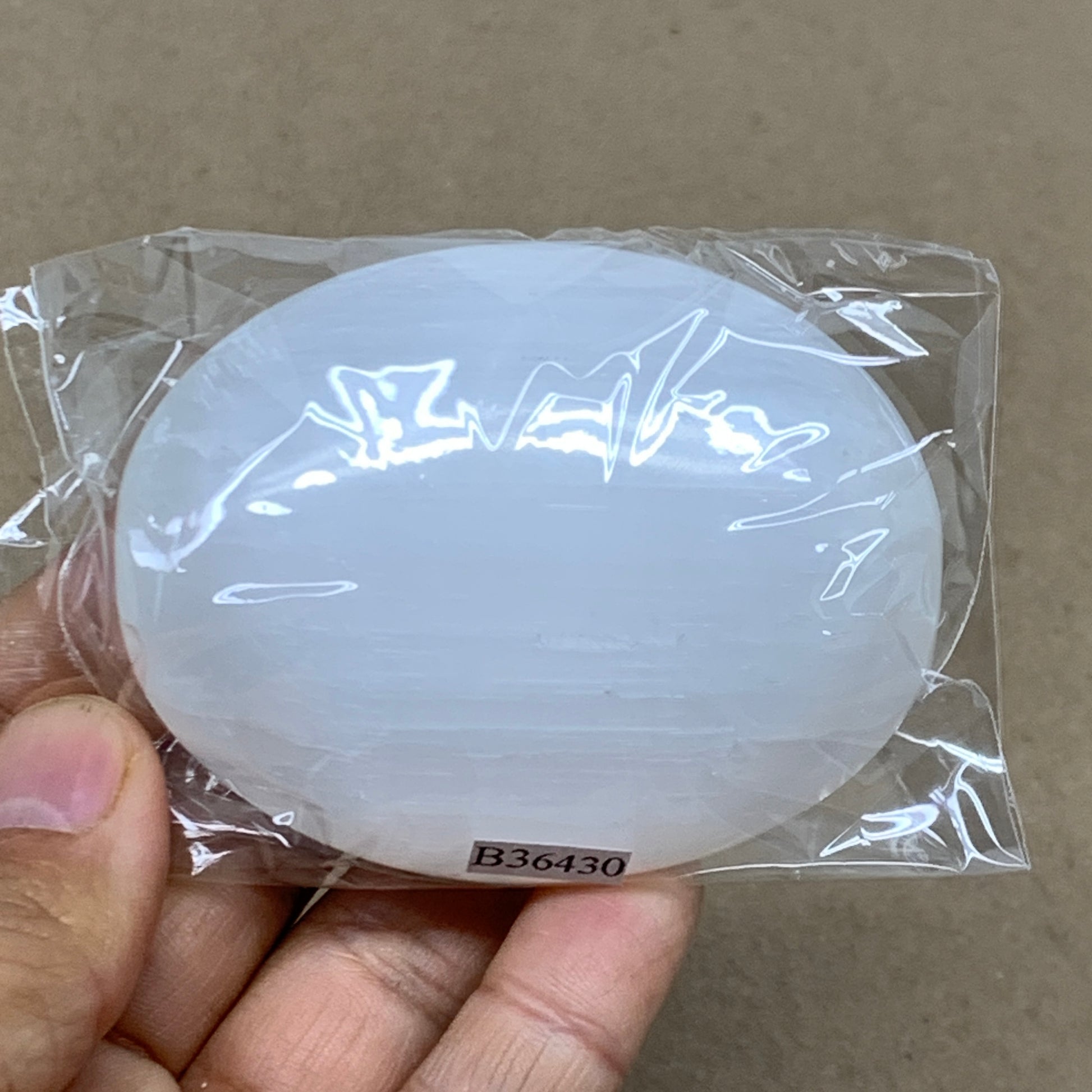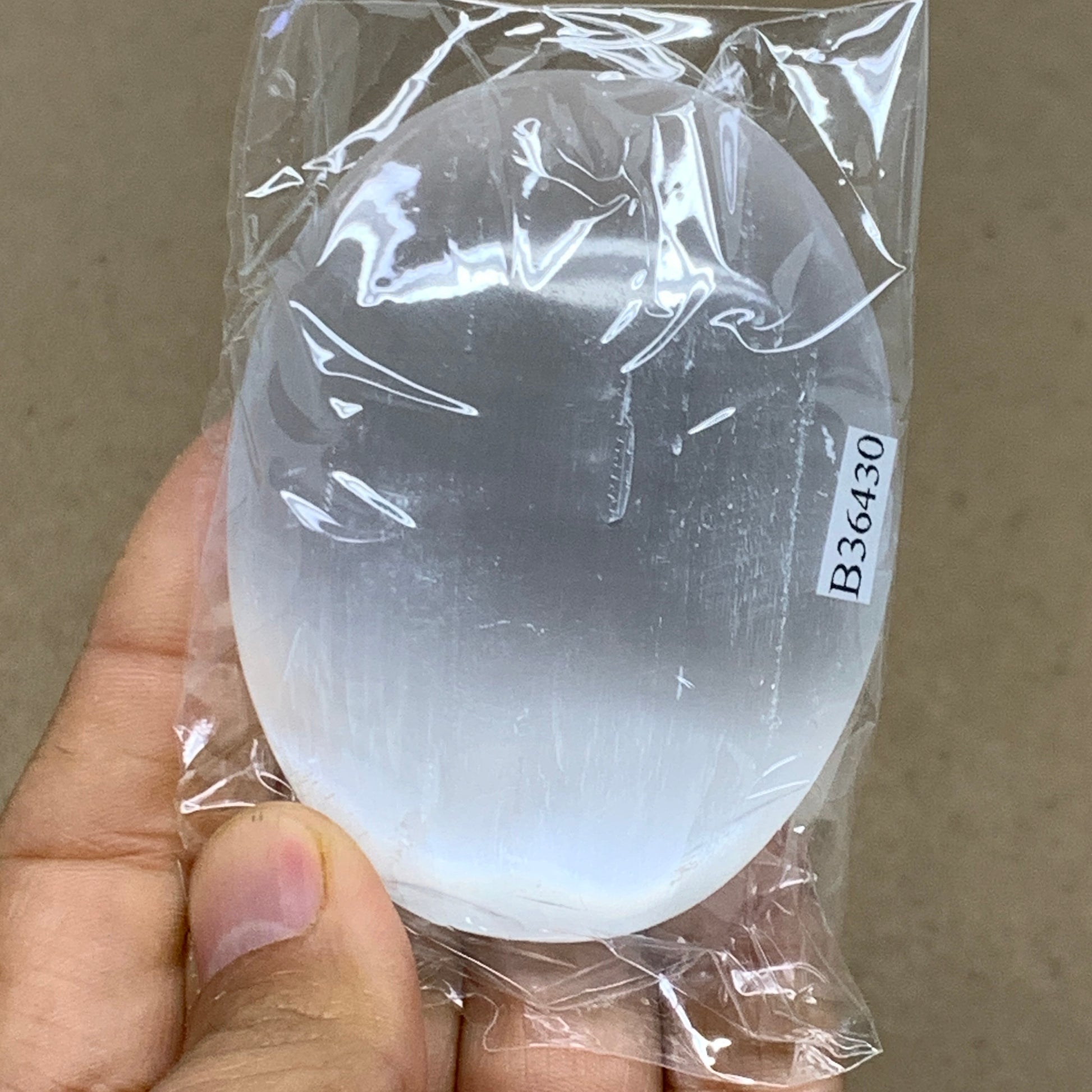 115g, 2.7"x2.1"x1", White Selenite Palmstone Crystal Pillow Reiki, B36430