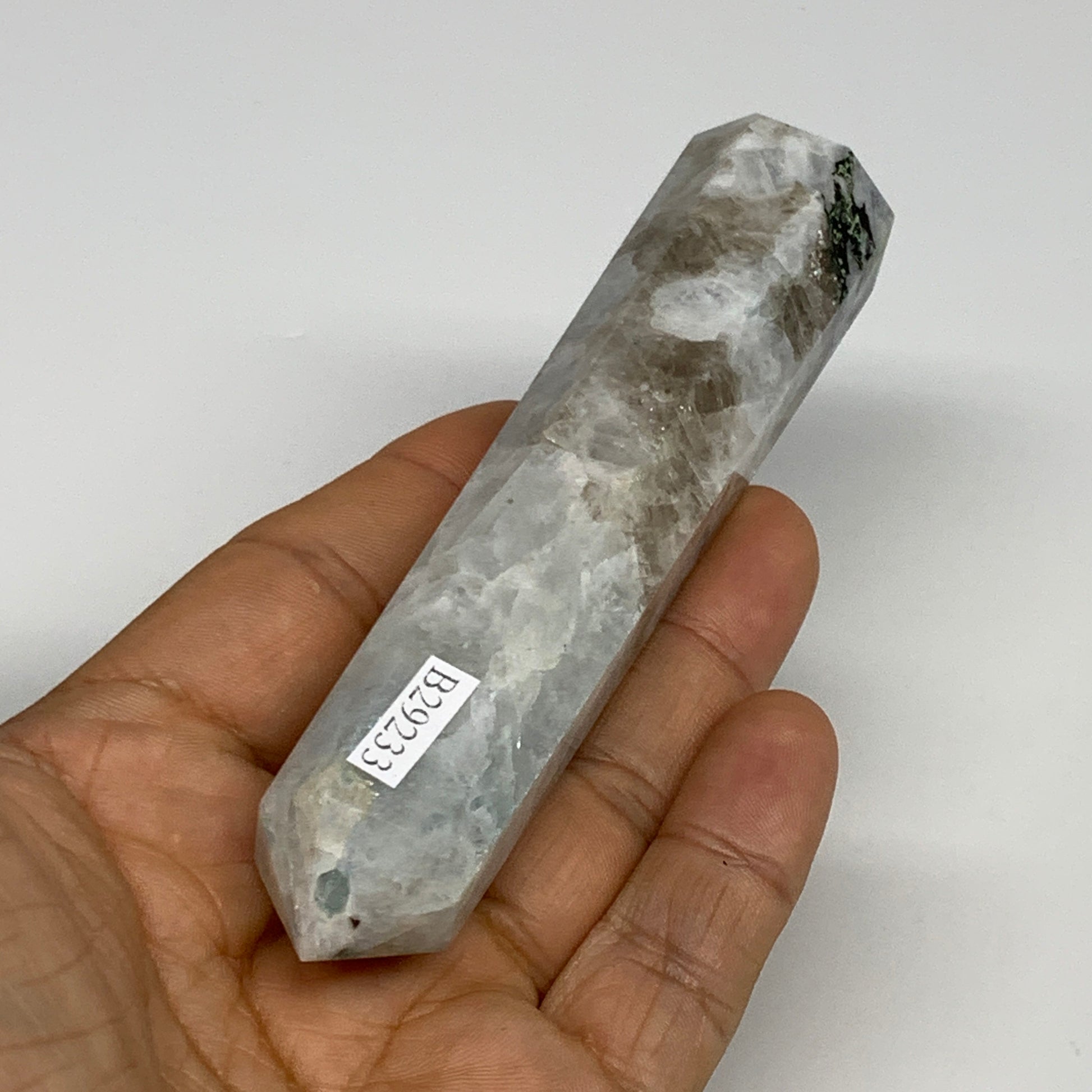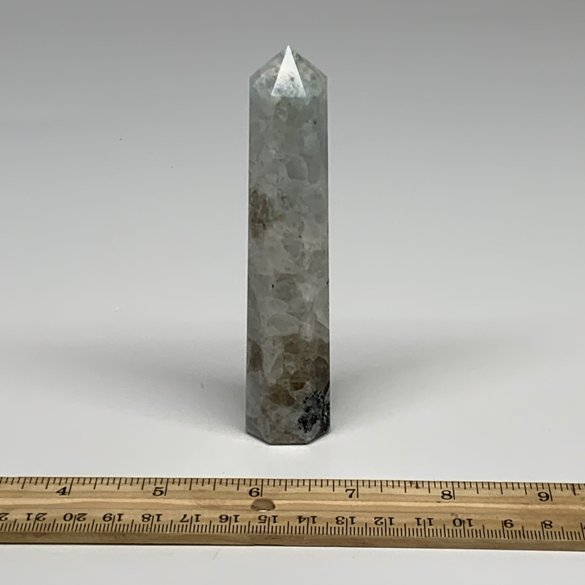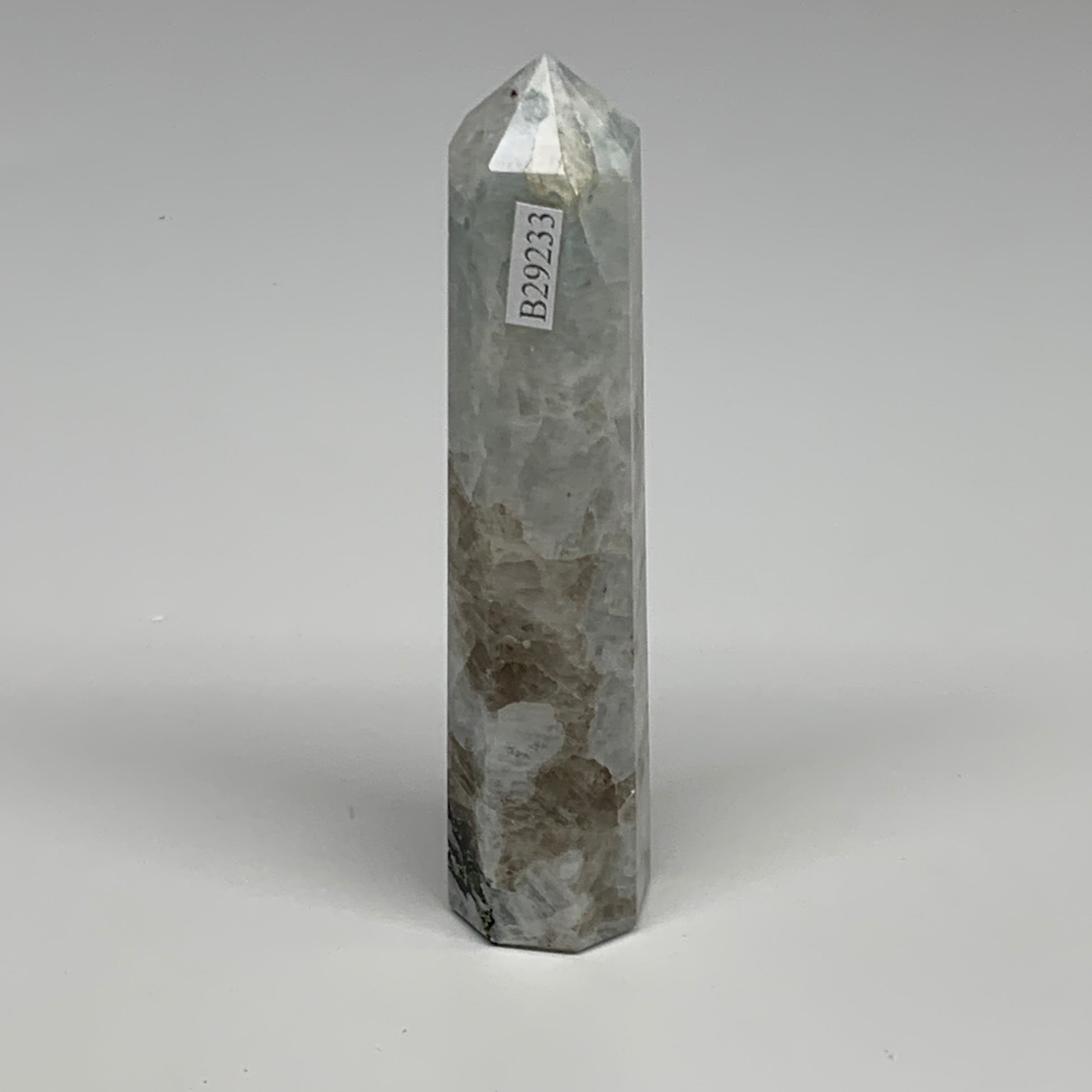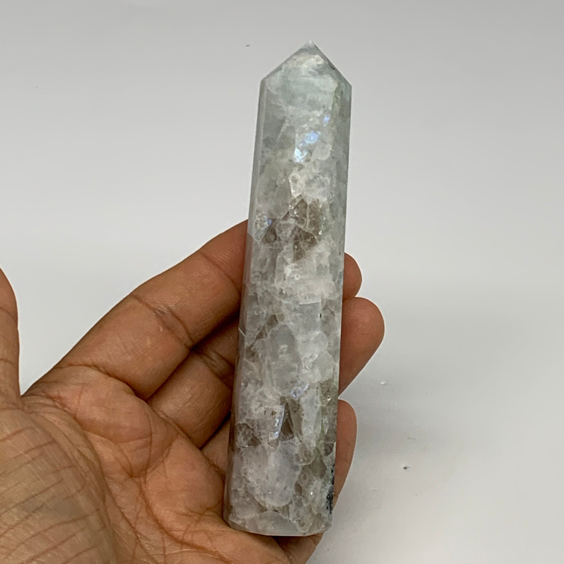 116.8g, 4.5"x0.9", Rainbow Moonstone Tower Obelisk Point Crystal @India, B29233