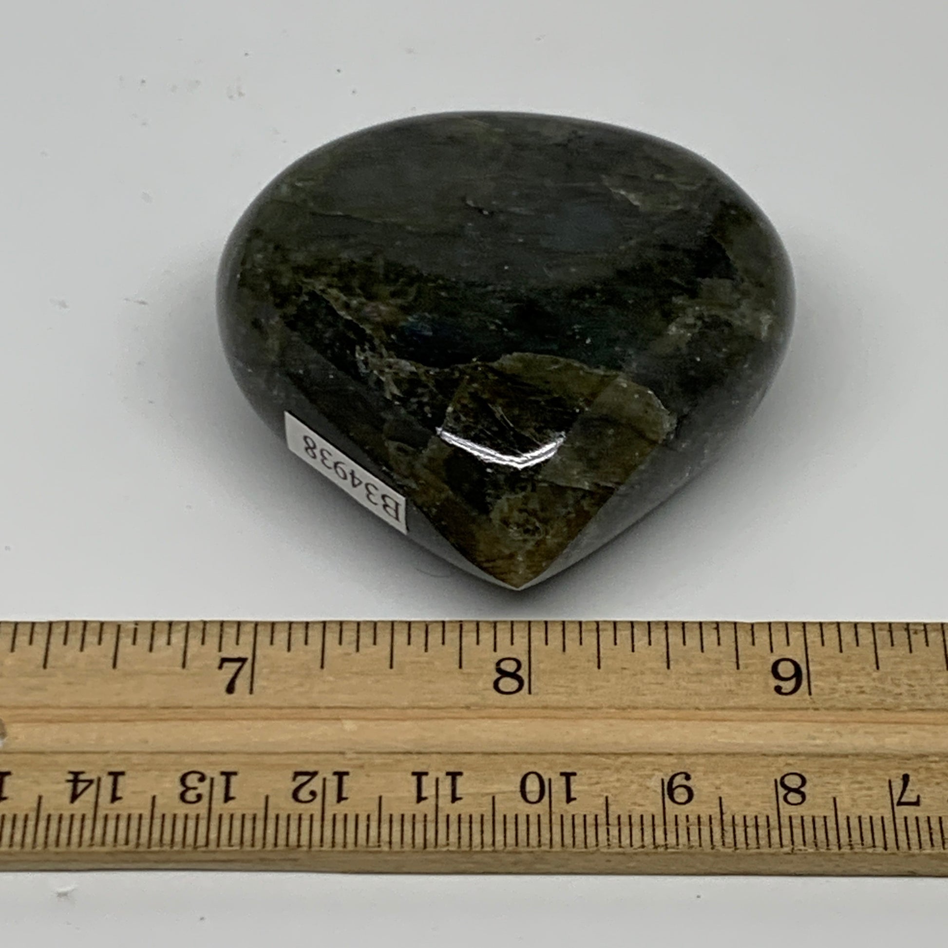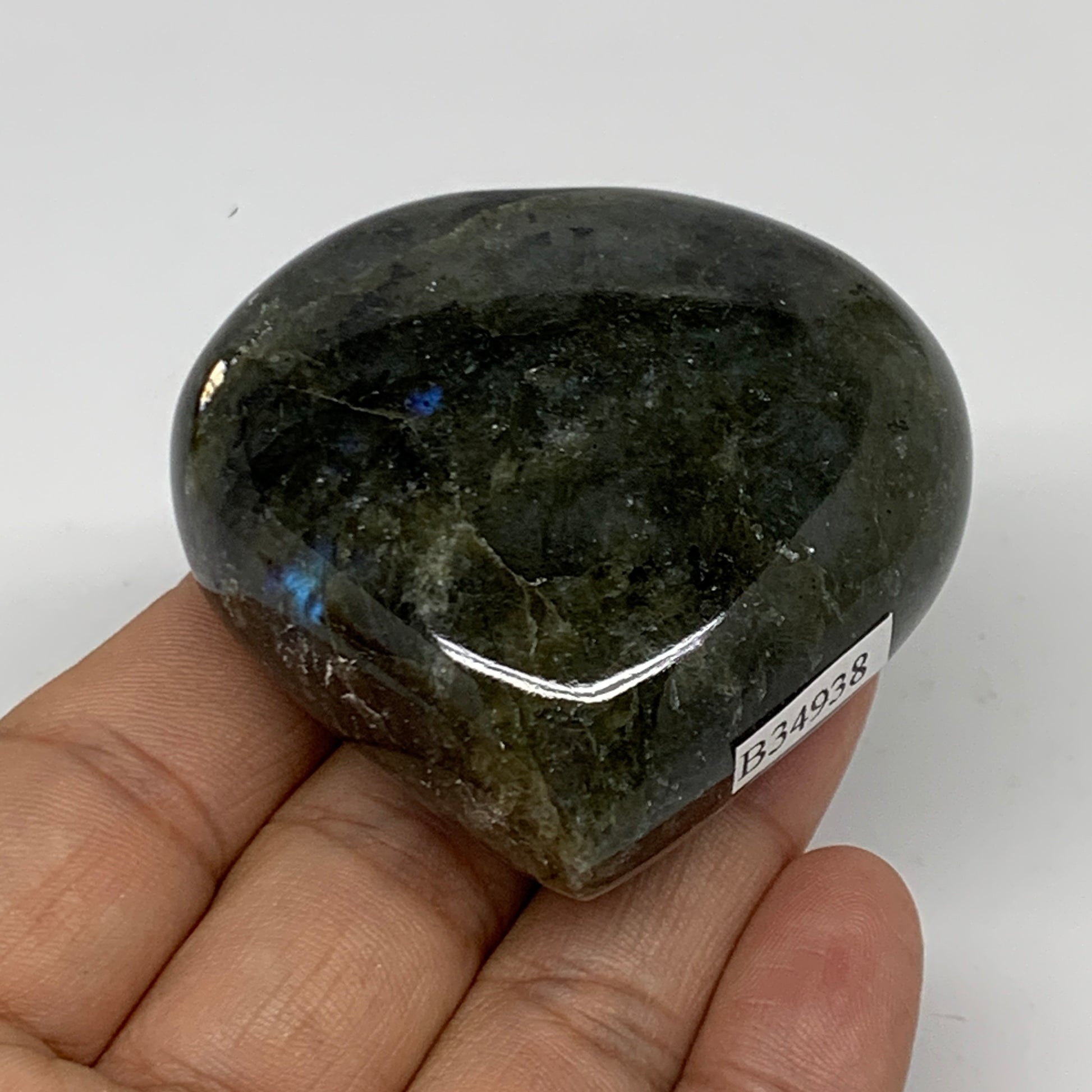116g, 2.2"x2.2"x1", Natural Labradorite Heart Polished Crystal, B34938
