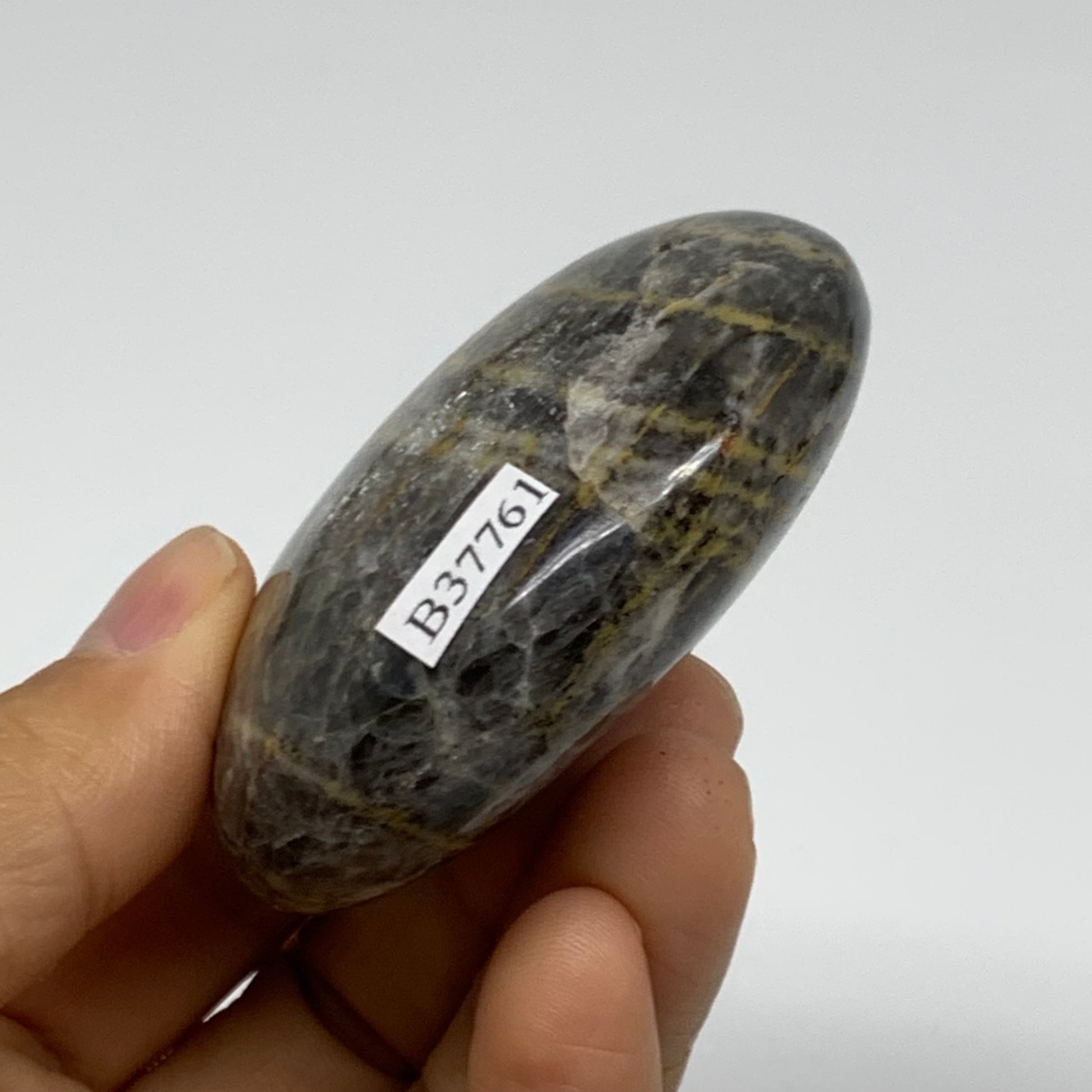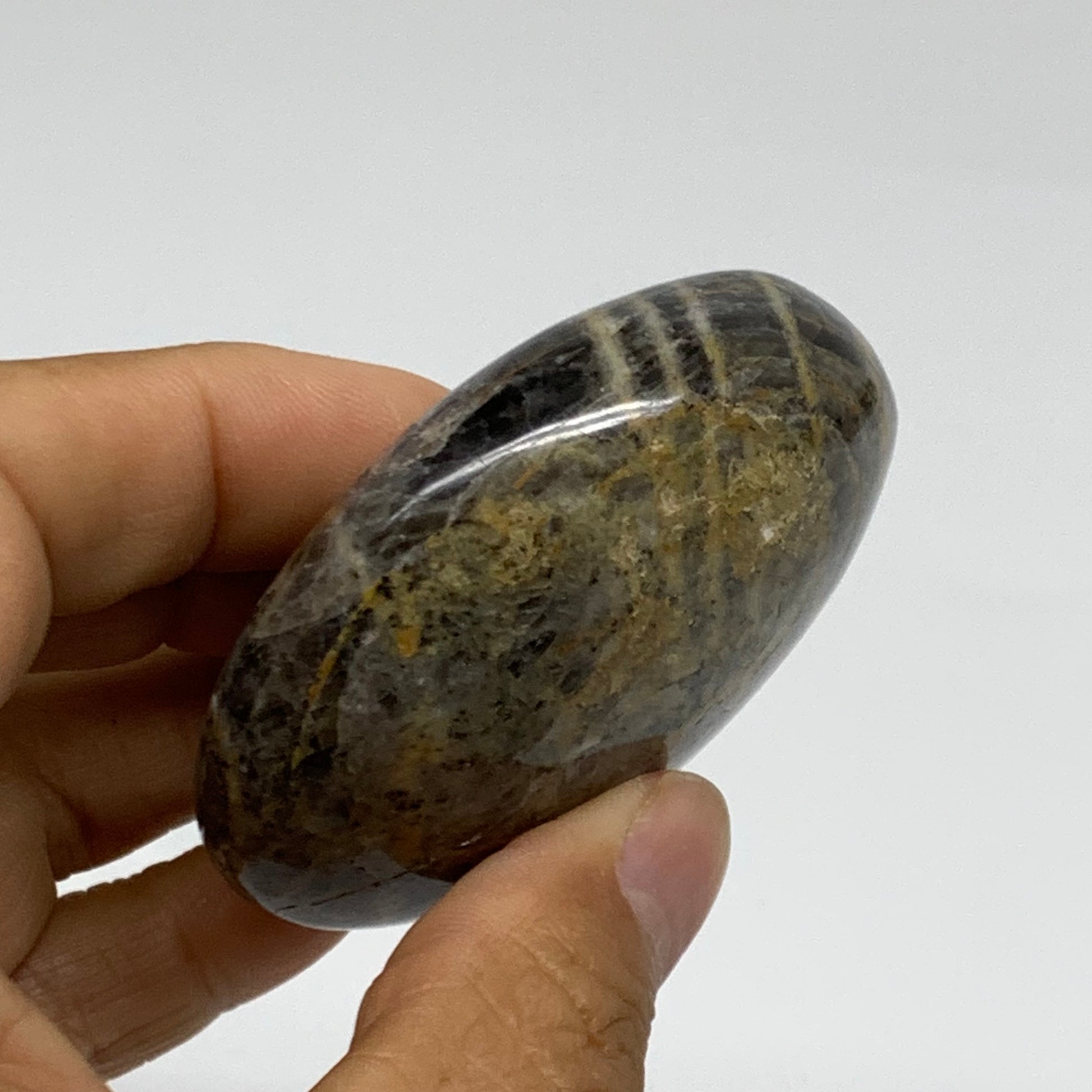 116g, 2.4"x2.2"x1", Black Moonstone Crystal Palm-Stone Polished, B37761