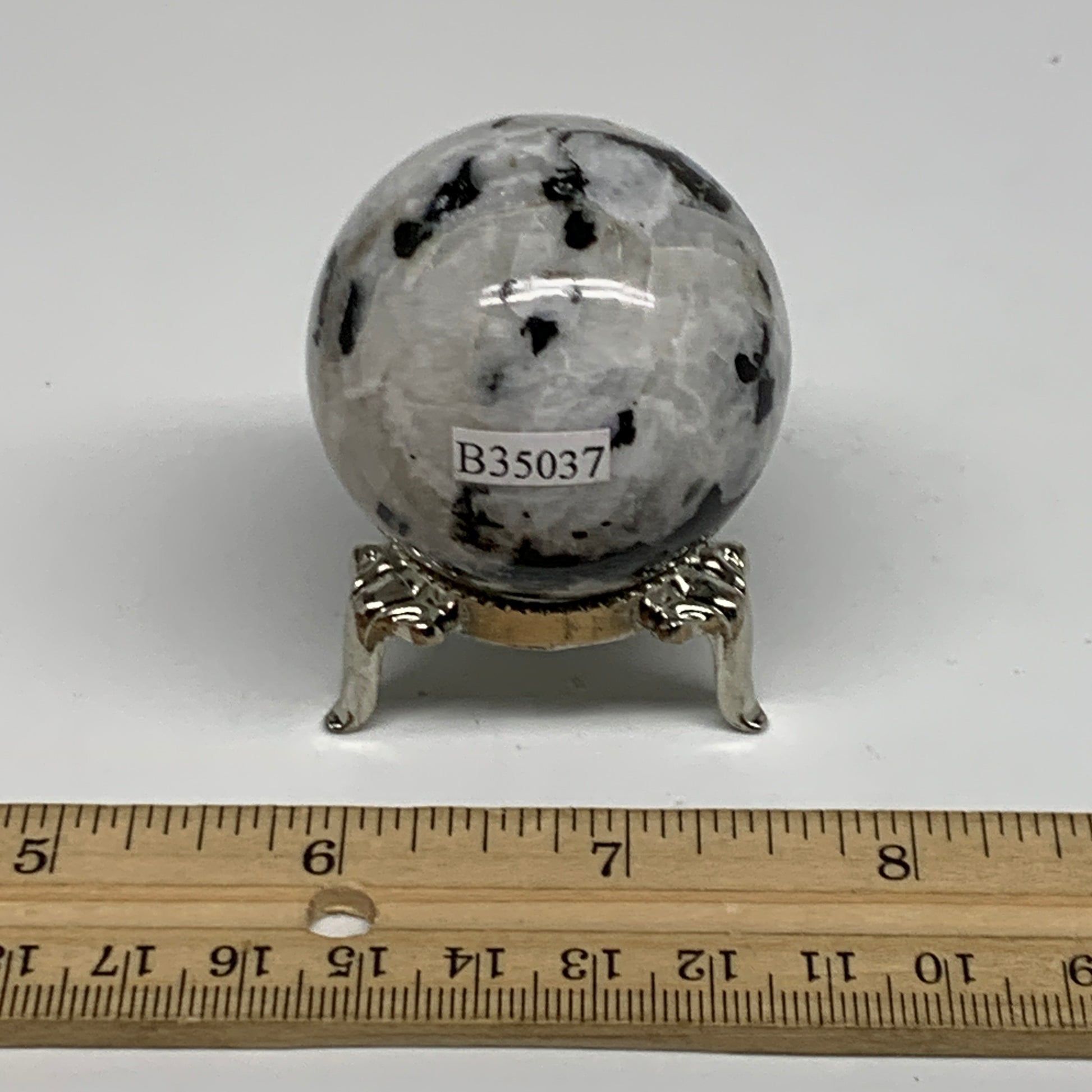 117.4g, 1.7"(43mm), Natural Rainbow Moonstone Sphere Ball Gemstone, B35037