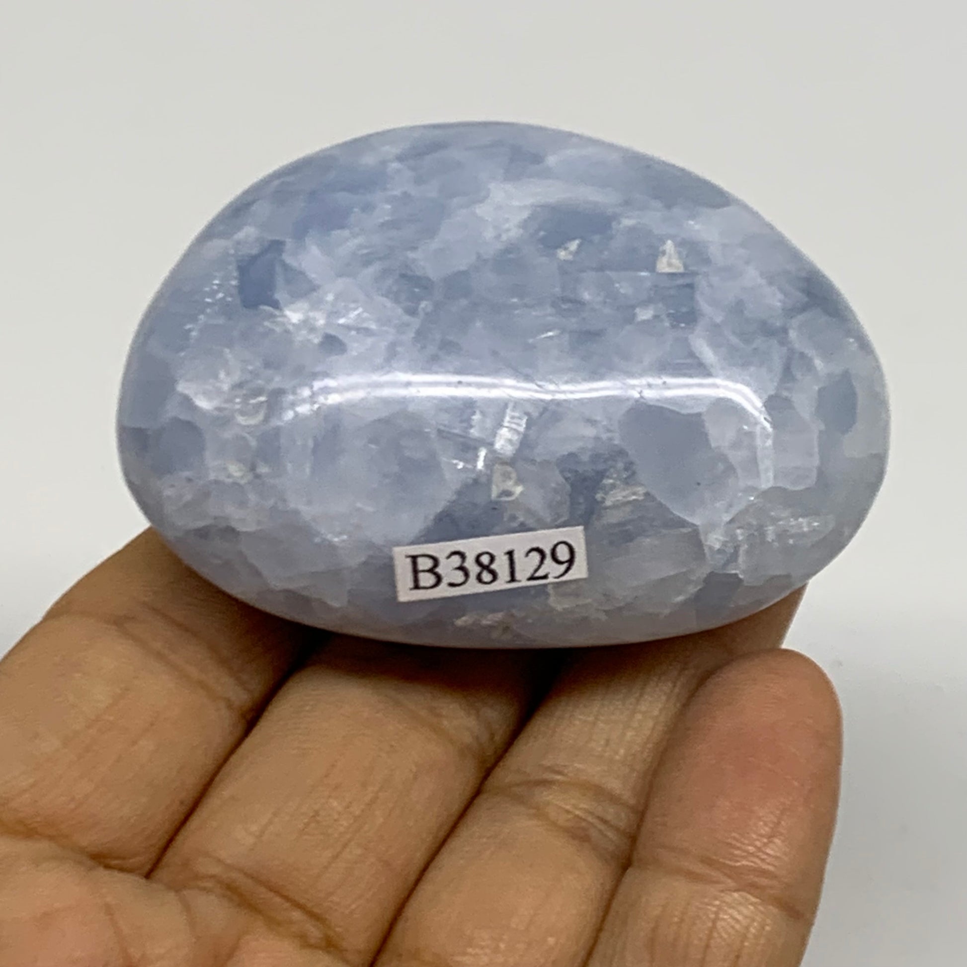 118g, 2.4"x1.8"x1.1" Blue Calcite Palm-Stone Polished Tumbled, B38129