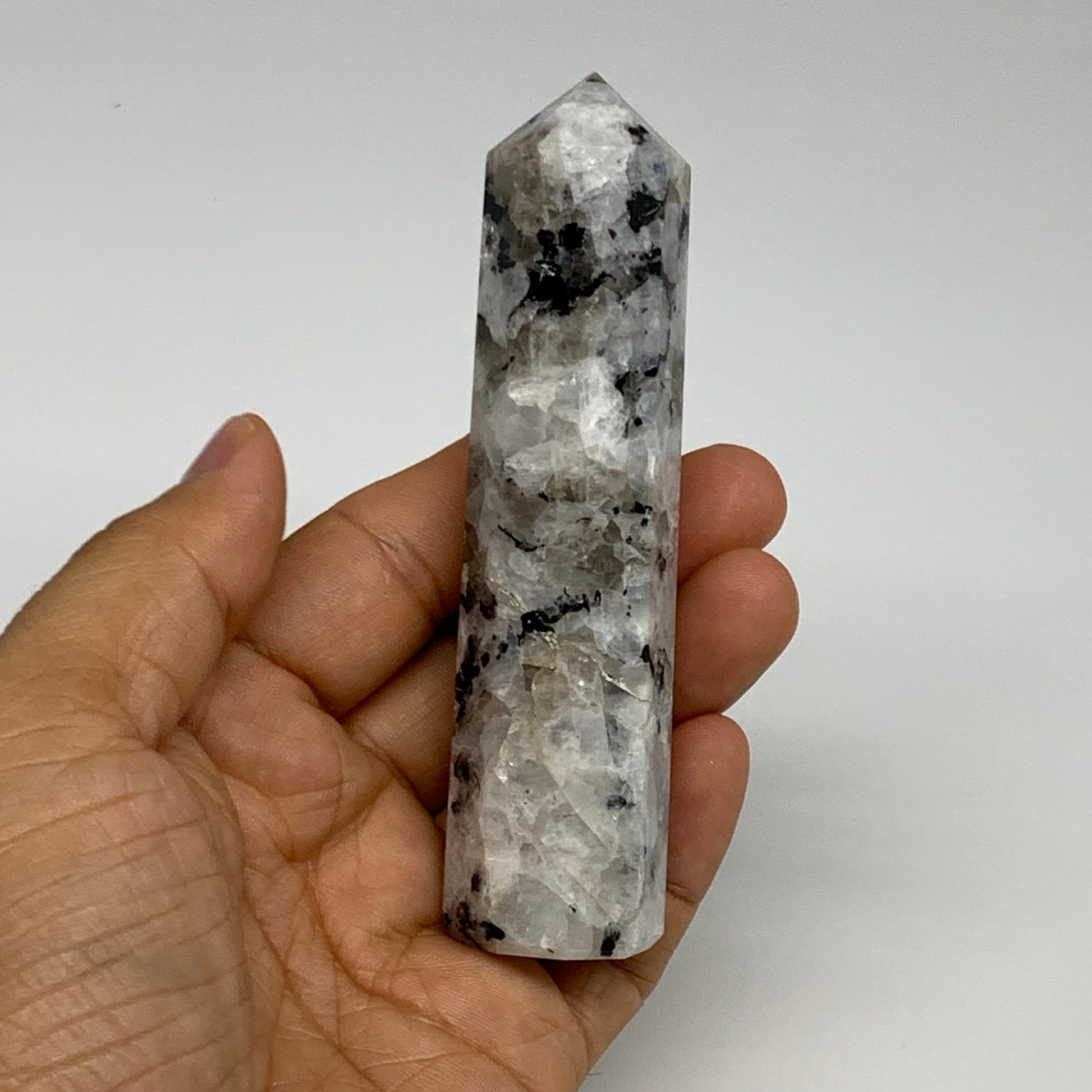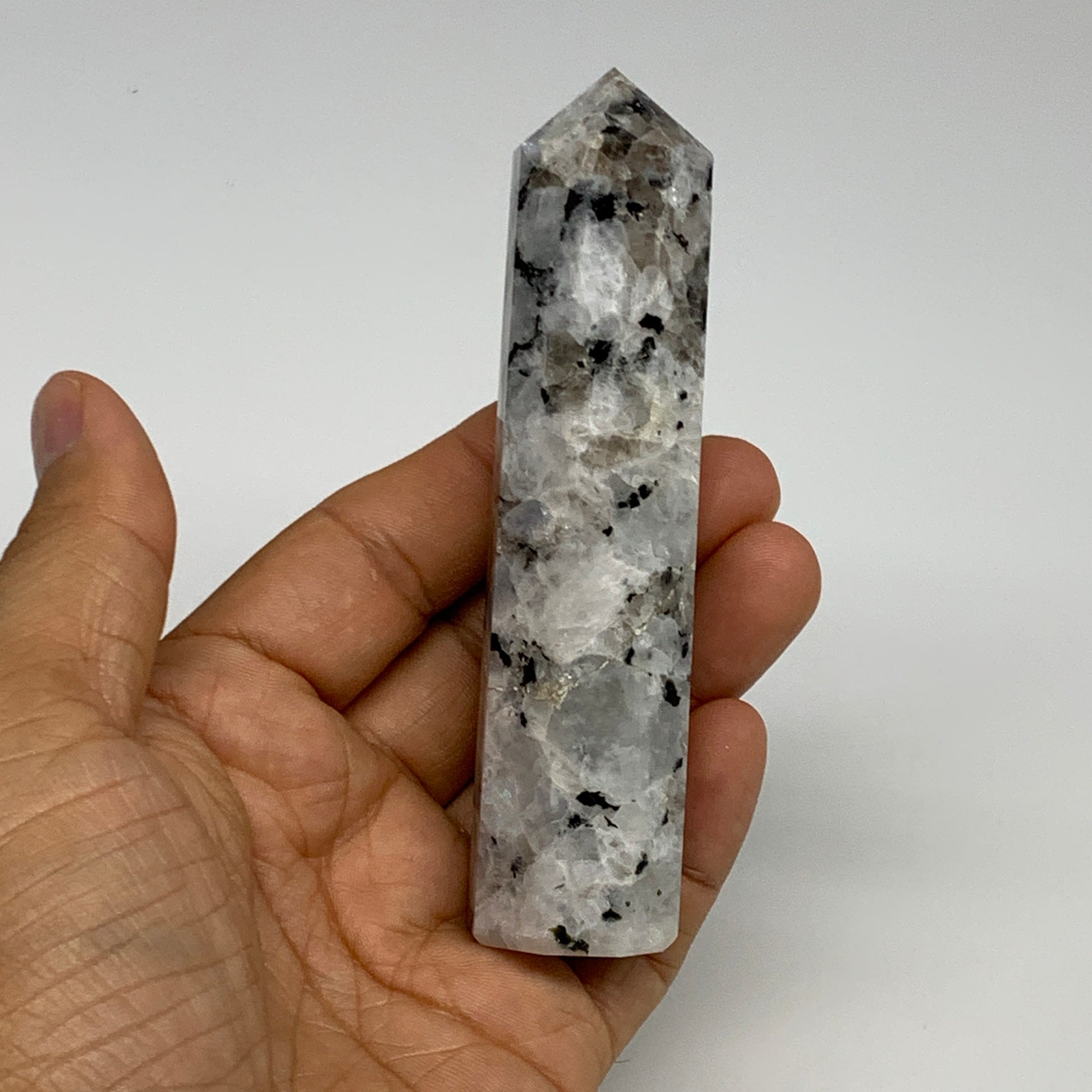119.7g, 4.1"x0.9", Rainbow Moonstone Tower Obelisk Point Crystal @India, B29236