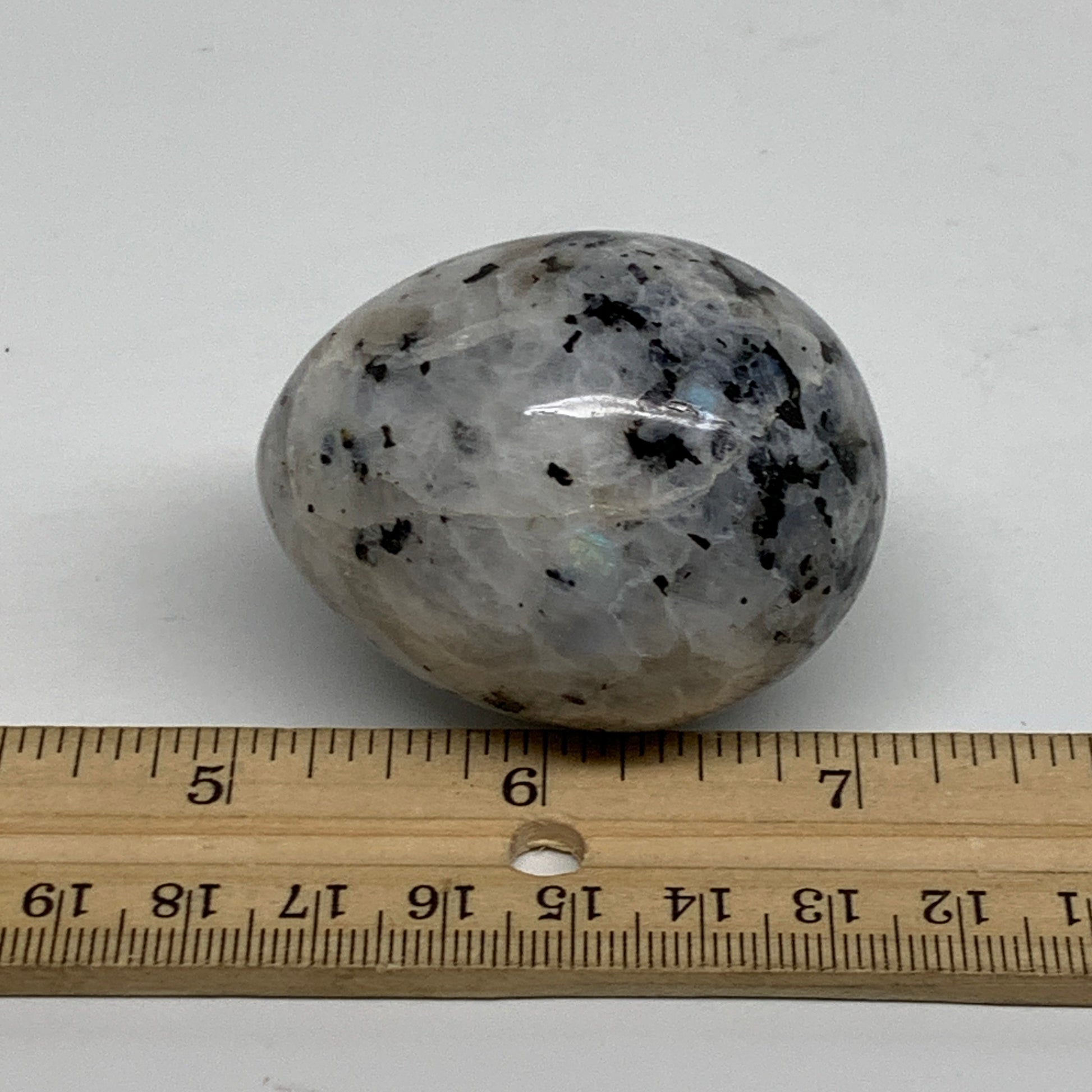 119.9g, 2.1"x1.6", Natural Gemstone White Rainbow Moonstone Egg, B34439