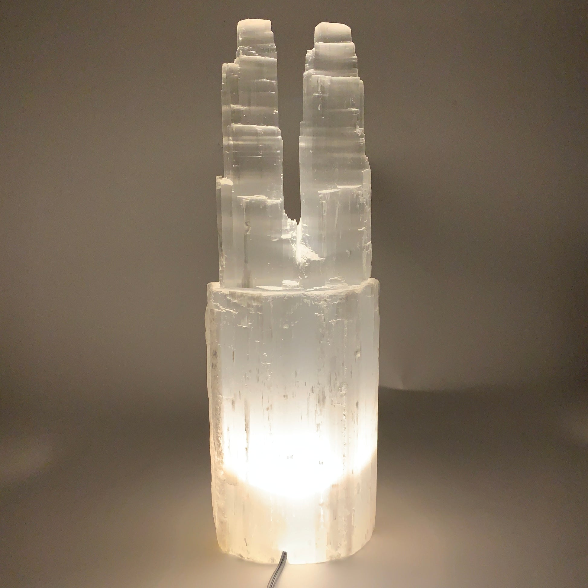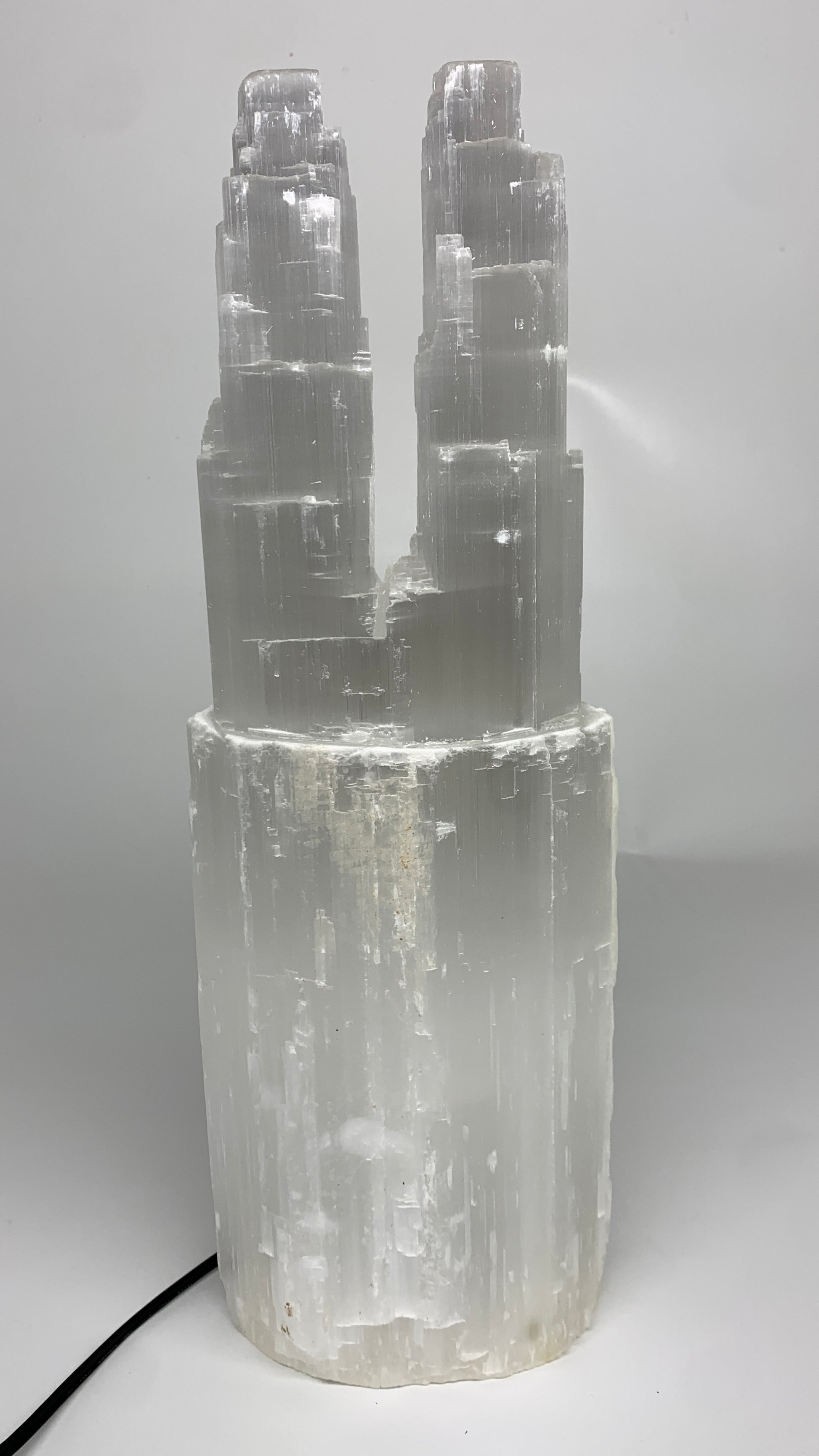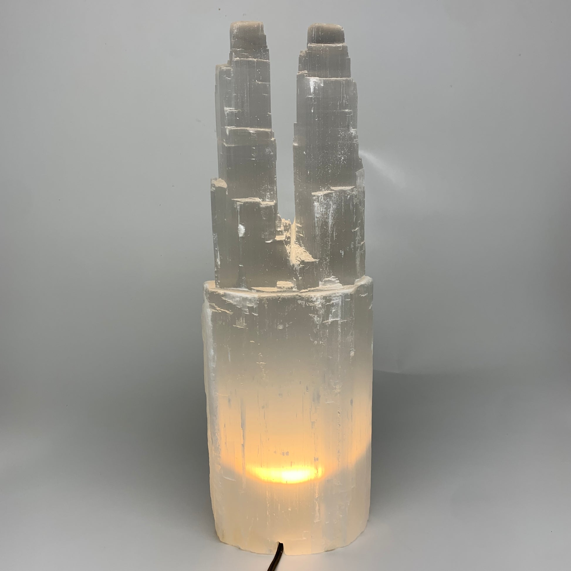 12.6 lbs, 15.8"x5.3"x3.5" Rough Selenite (Satin Spar) Lamp Tower W/Chord, B35750