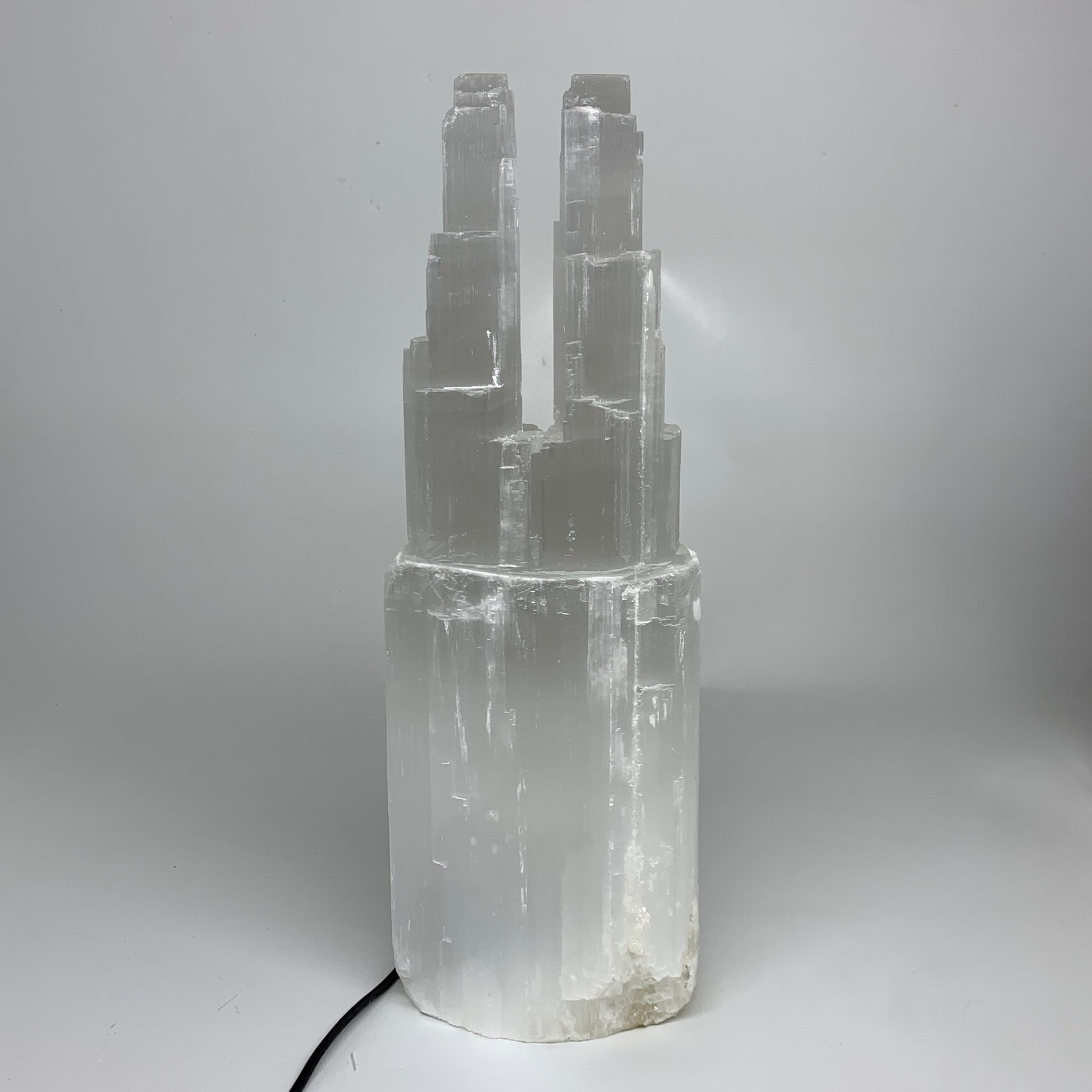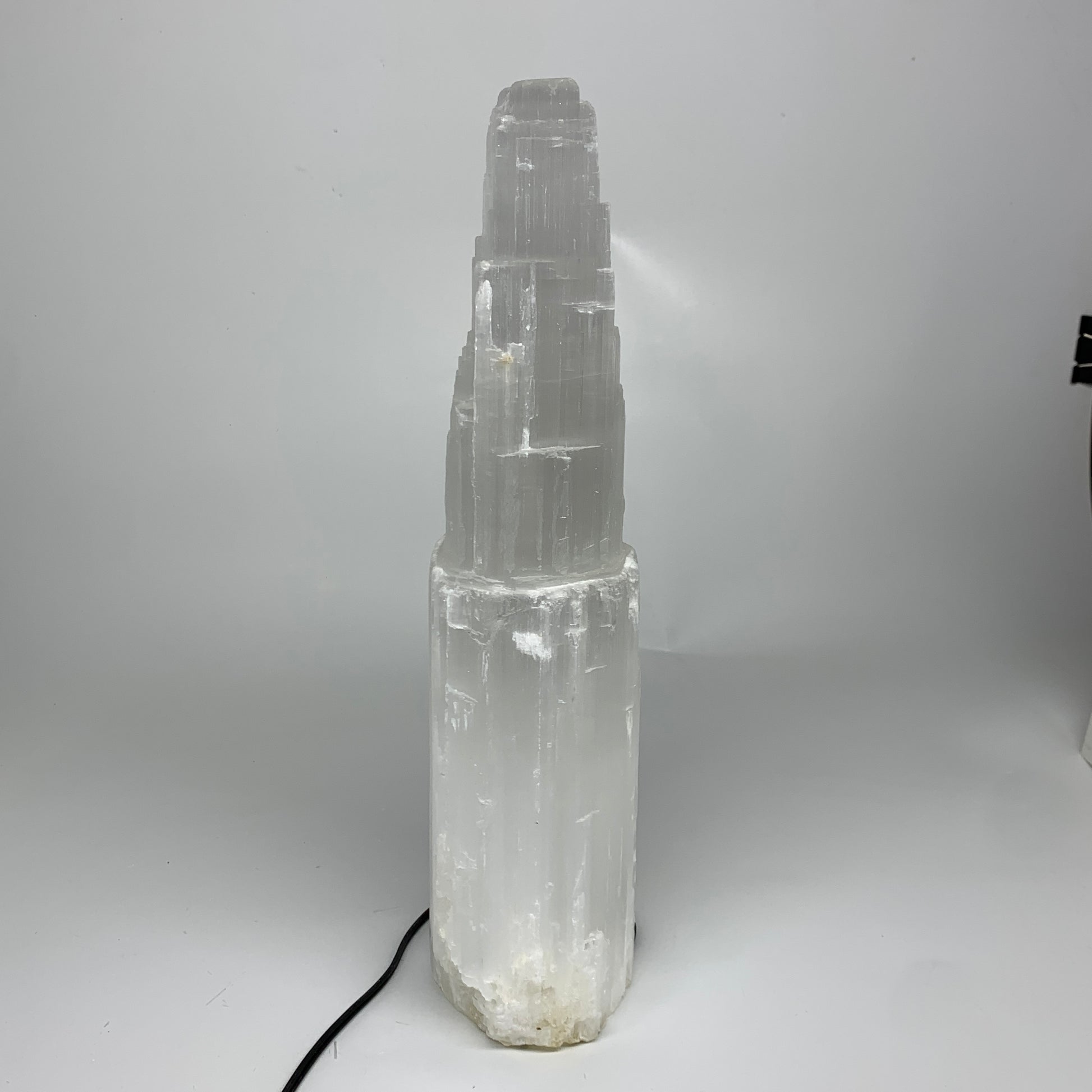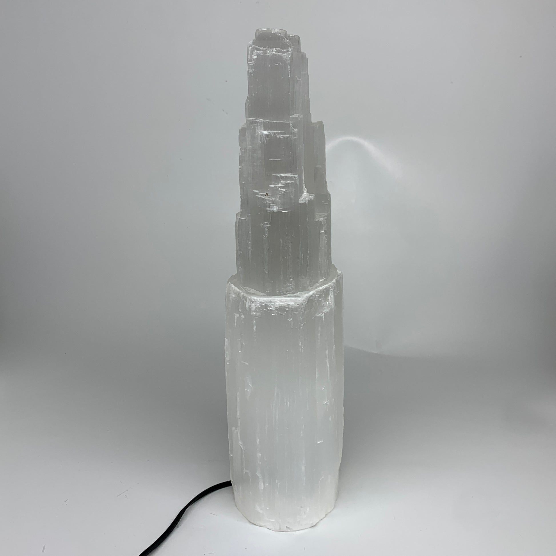 12.8 lbs, 15.5"x5.2"x3.7" Rough Selenite (Satin Spar) Lamp Tower W/Chord, B35777
