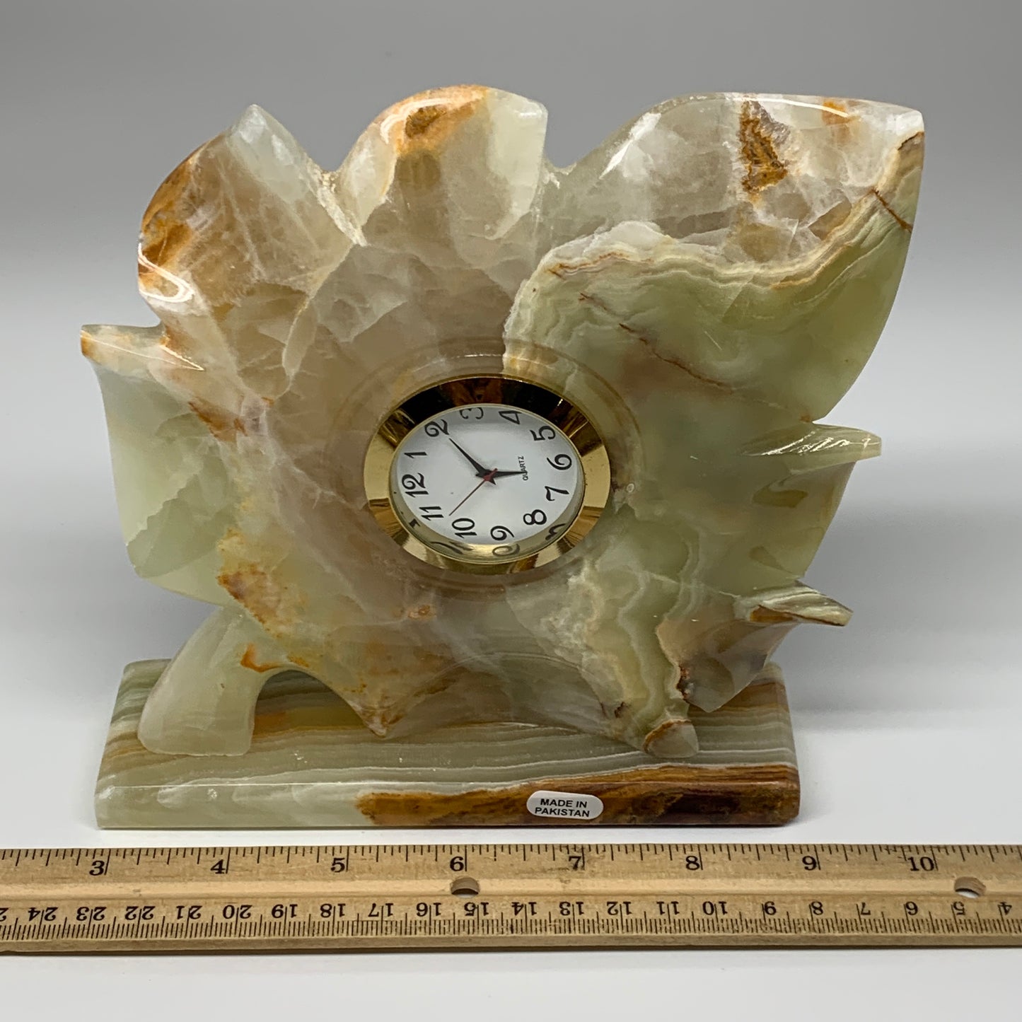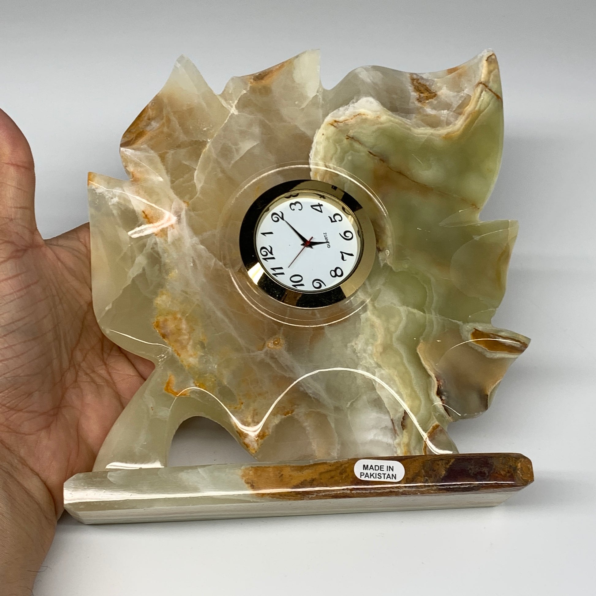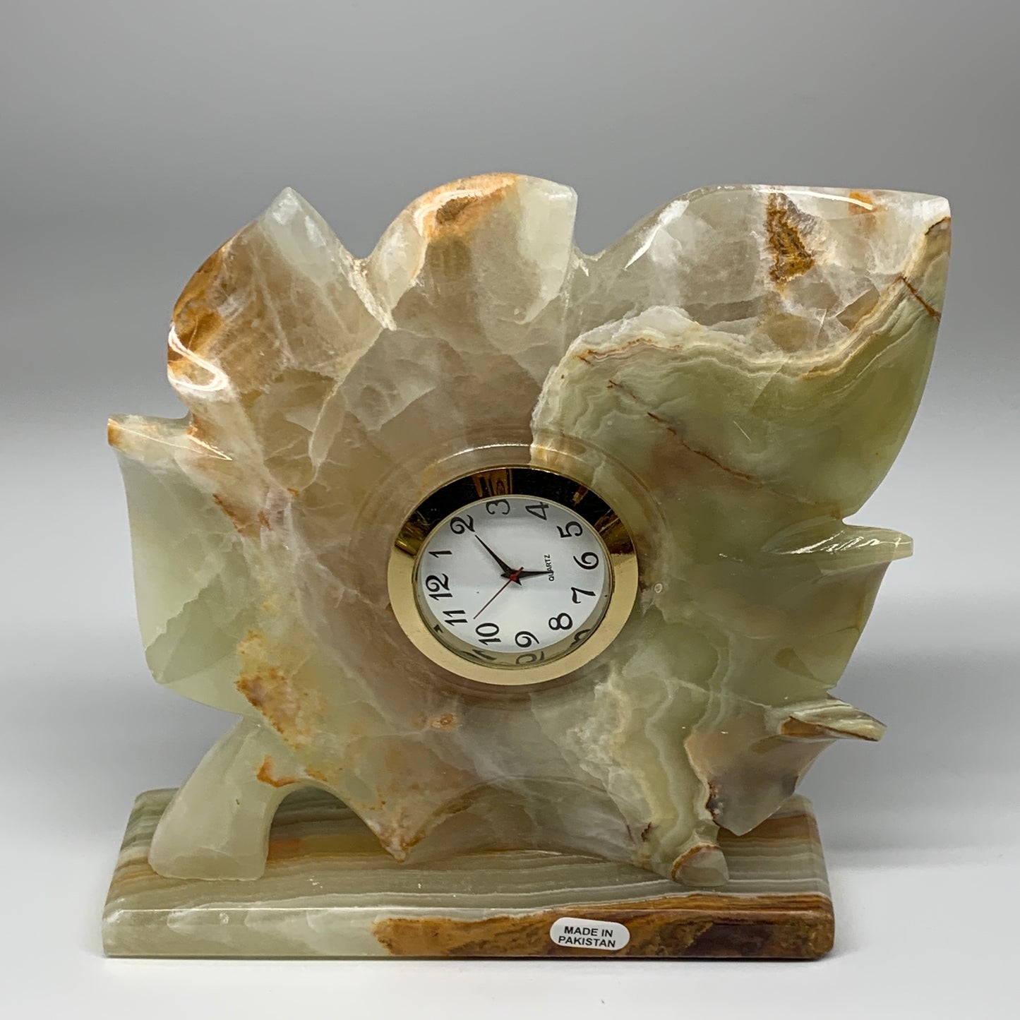 1200g, 6.5"x6.25" Green Onyx Leaf Clock Gemstone from Pakistan, B7815