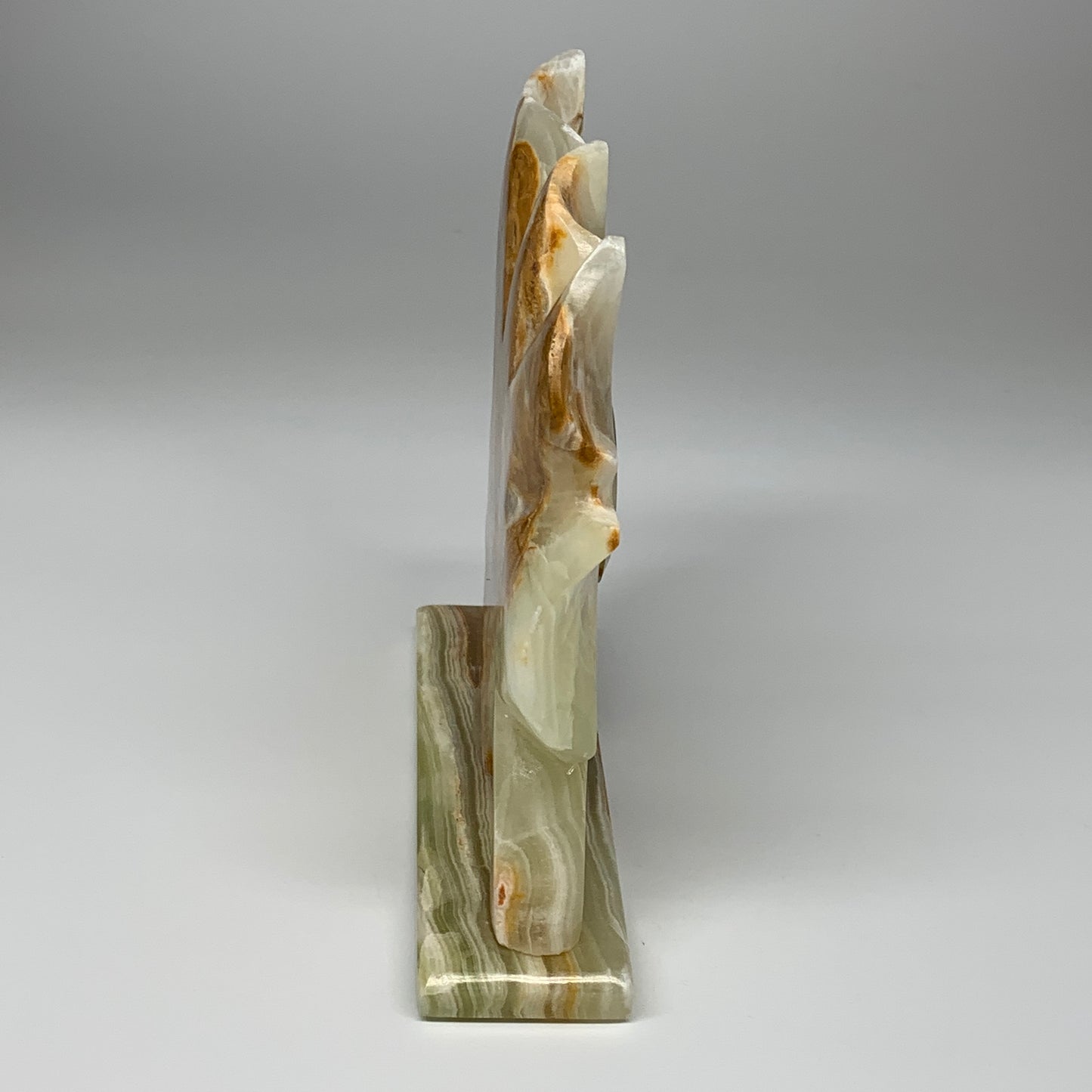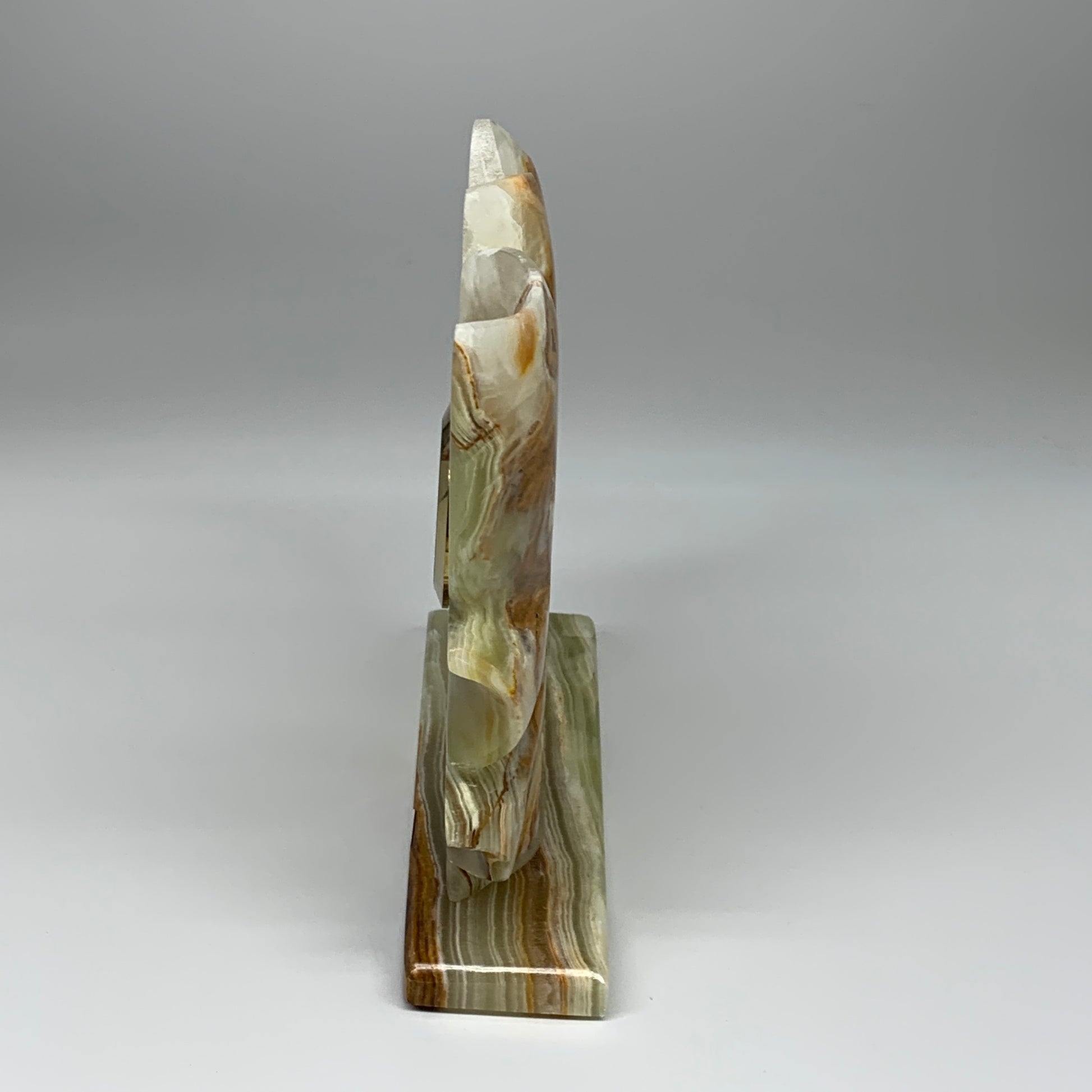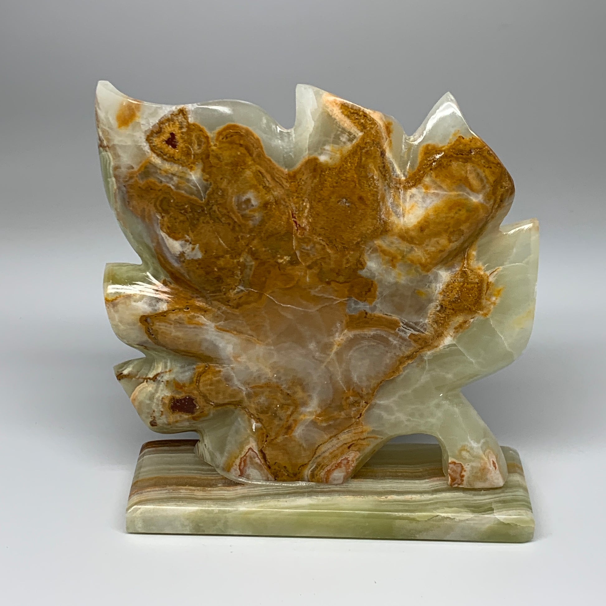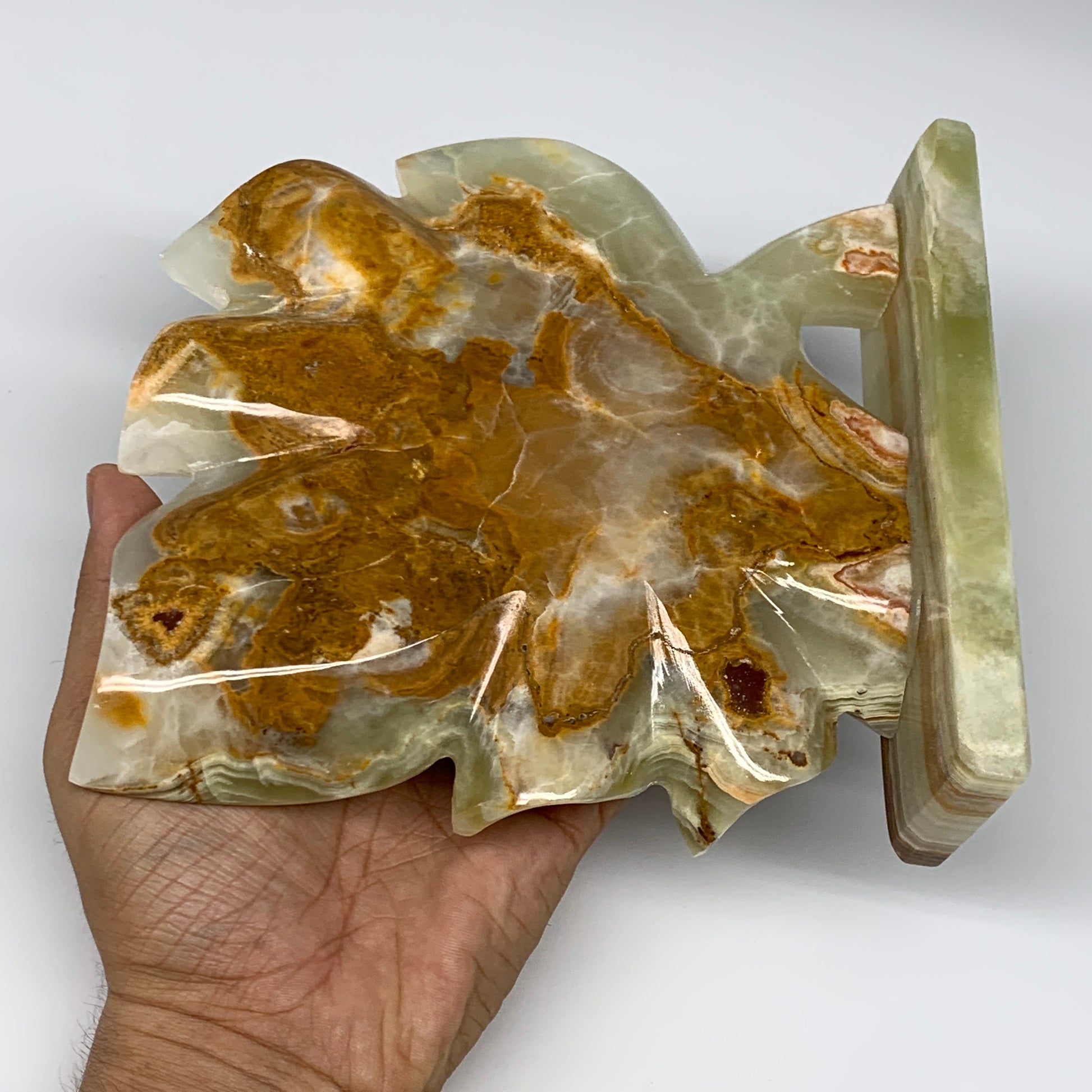 1200g, 6.5"x6.25" Green Onyx Leaf Clock Gemstone from Pakistan, B7815