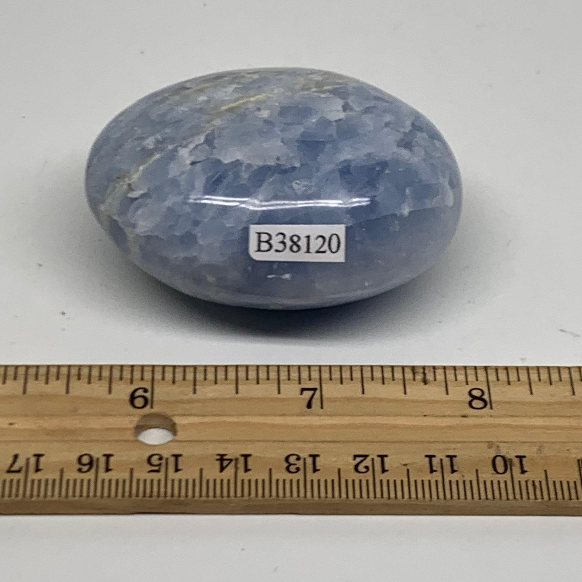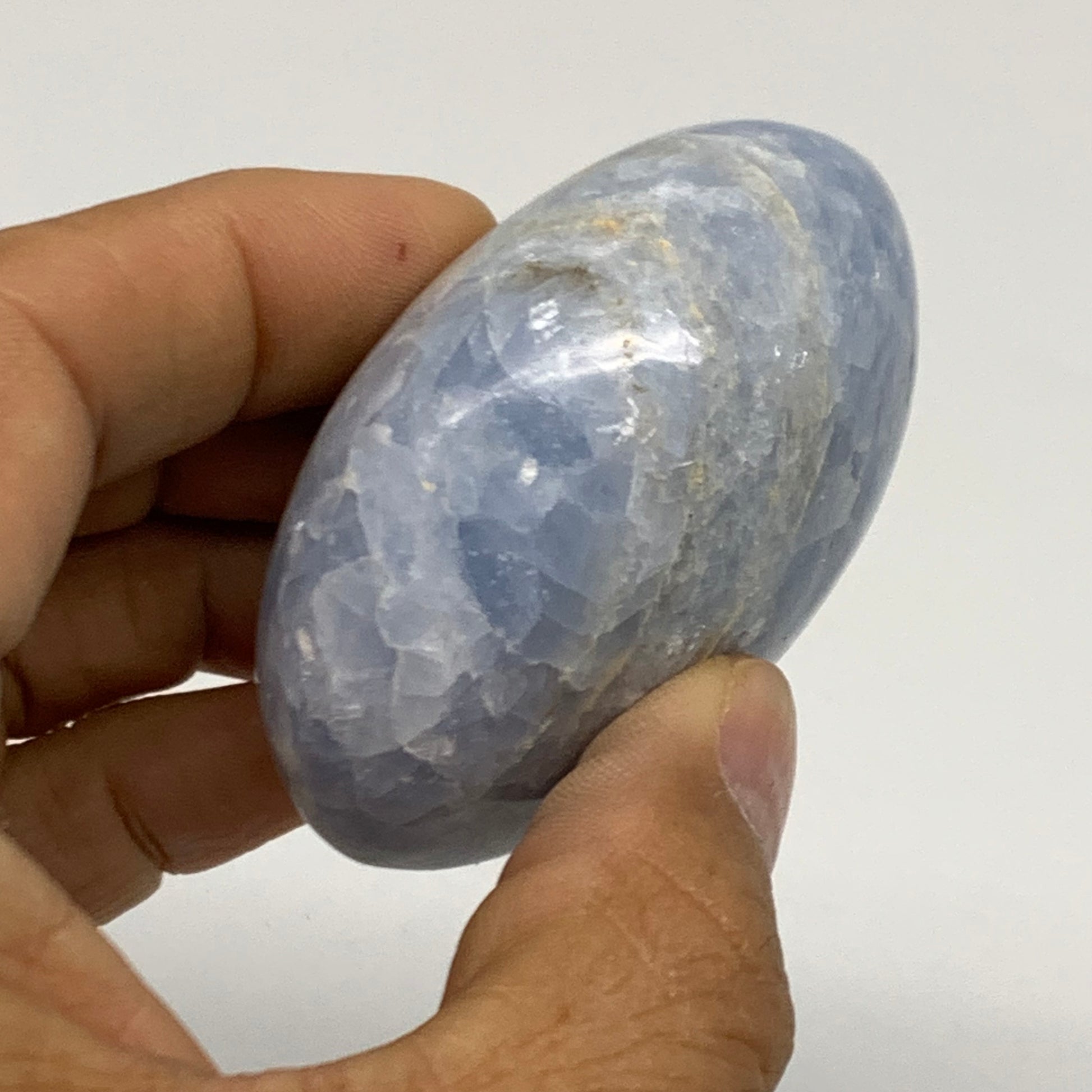 120g, 2.4"x1.8"x1.2" Blue Calcite Palm-Stone Polished Tumbled, B38120