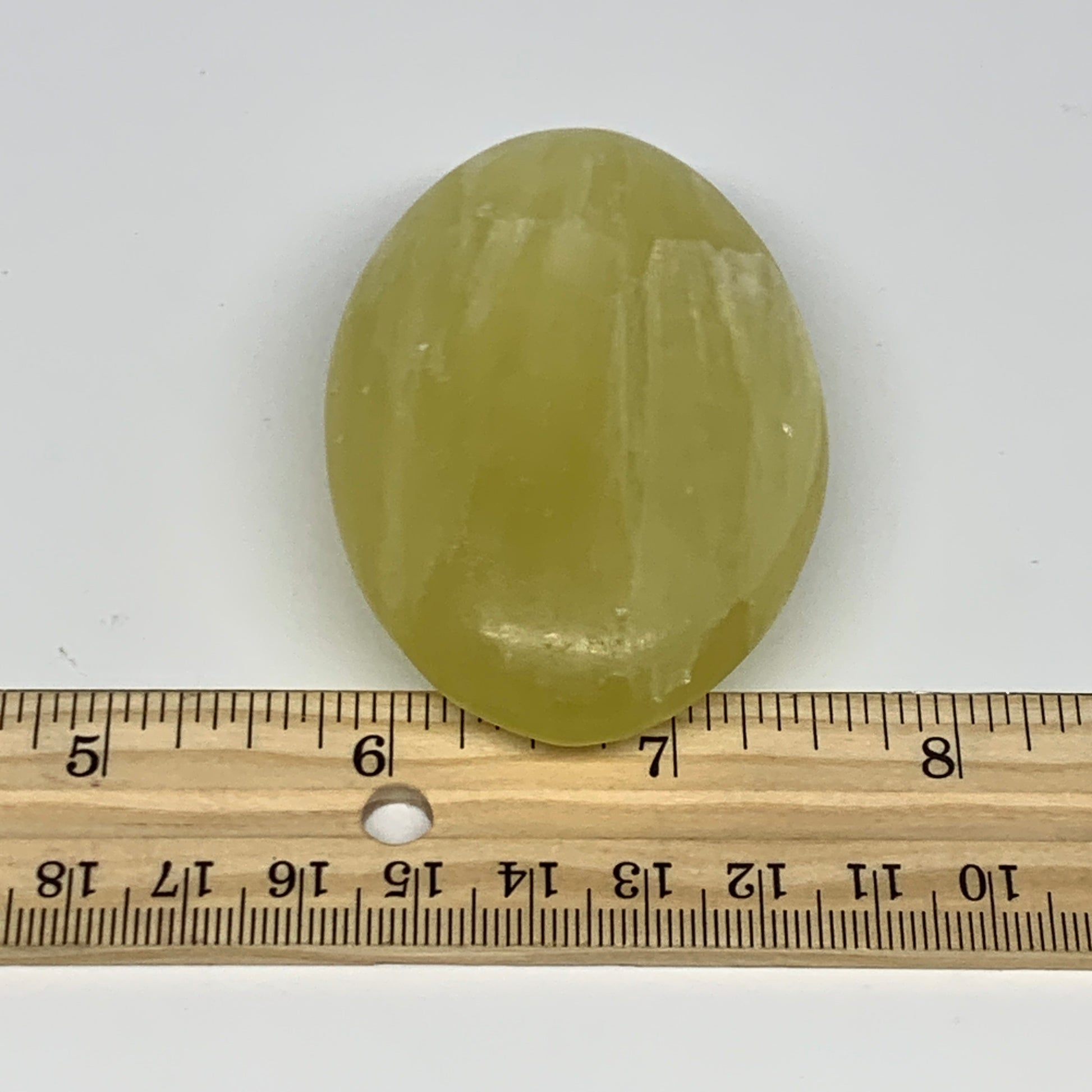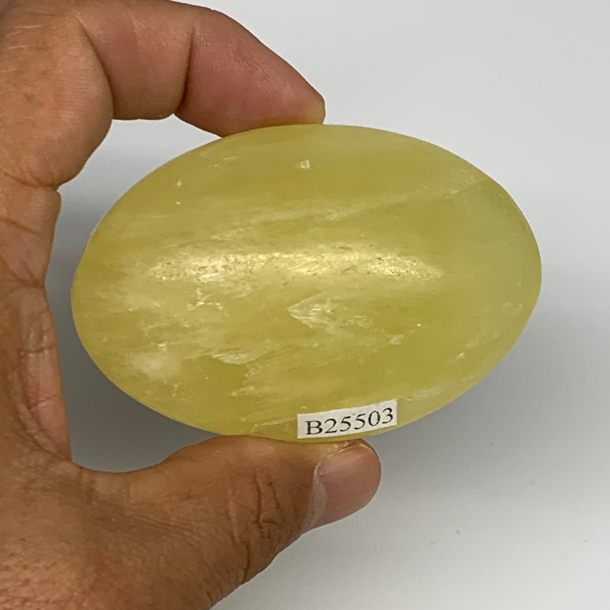 121.7g, 2.7"x1.9"x1", Lemon Calcite Palm-Stone Crystal Polished @Pakistan,B26403