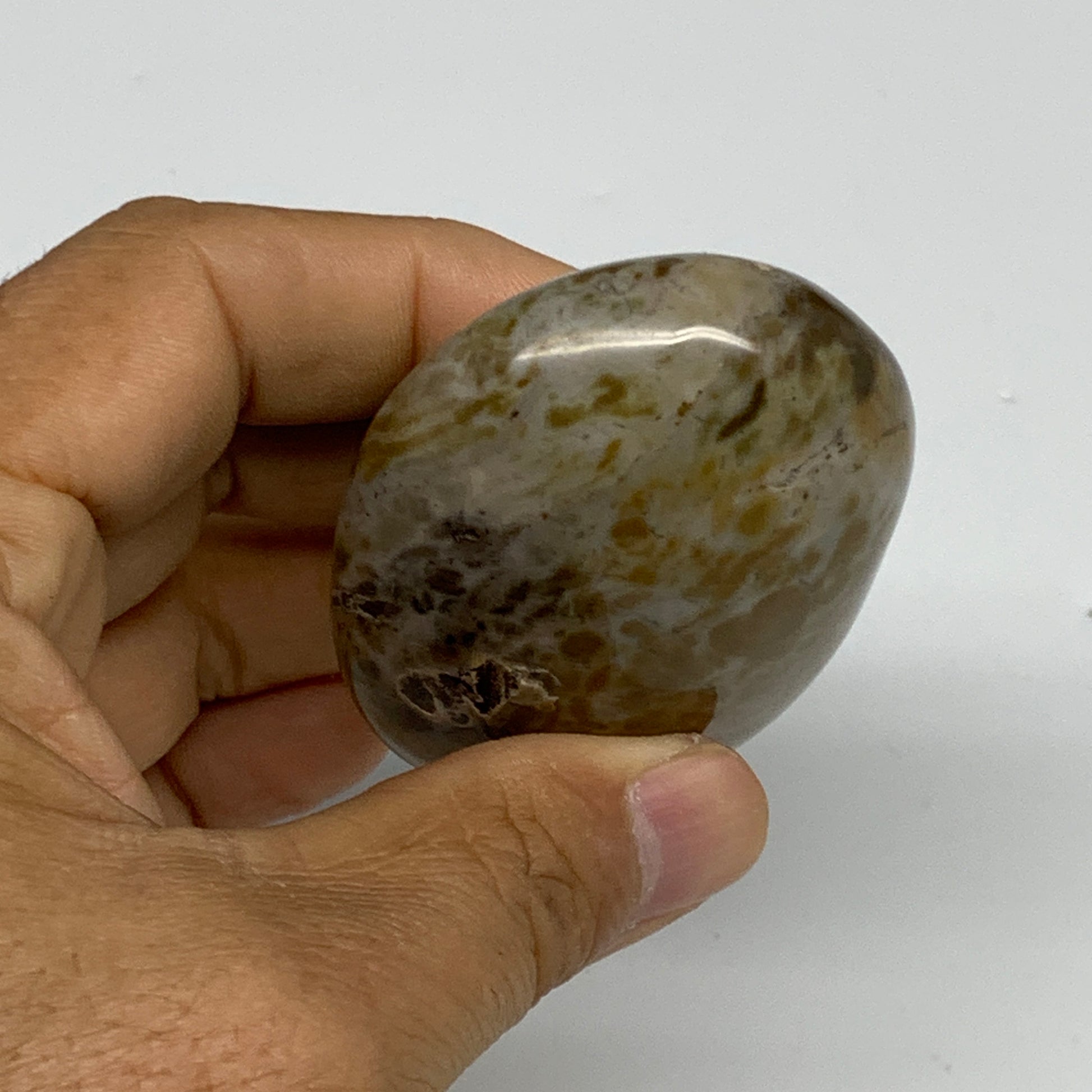 121.9g, 2.6"x1.9"x1" Natural Ocean Jasper Palm-Stone Orbicular Jasper, B30746
