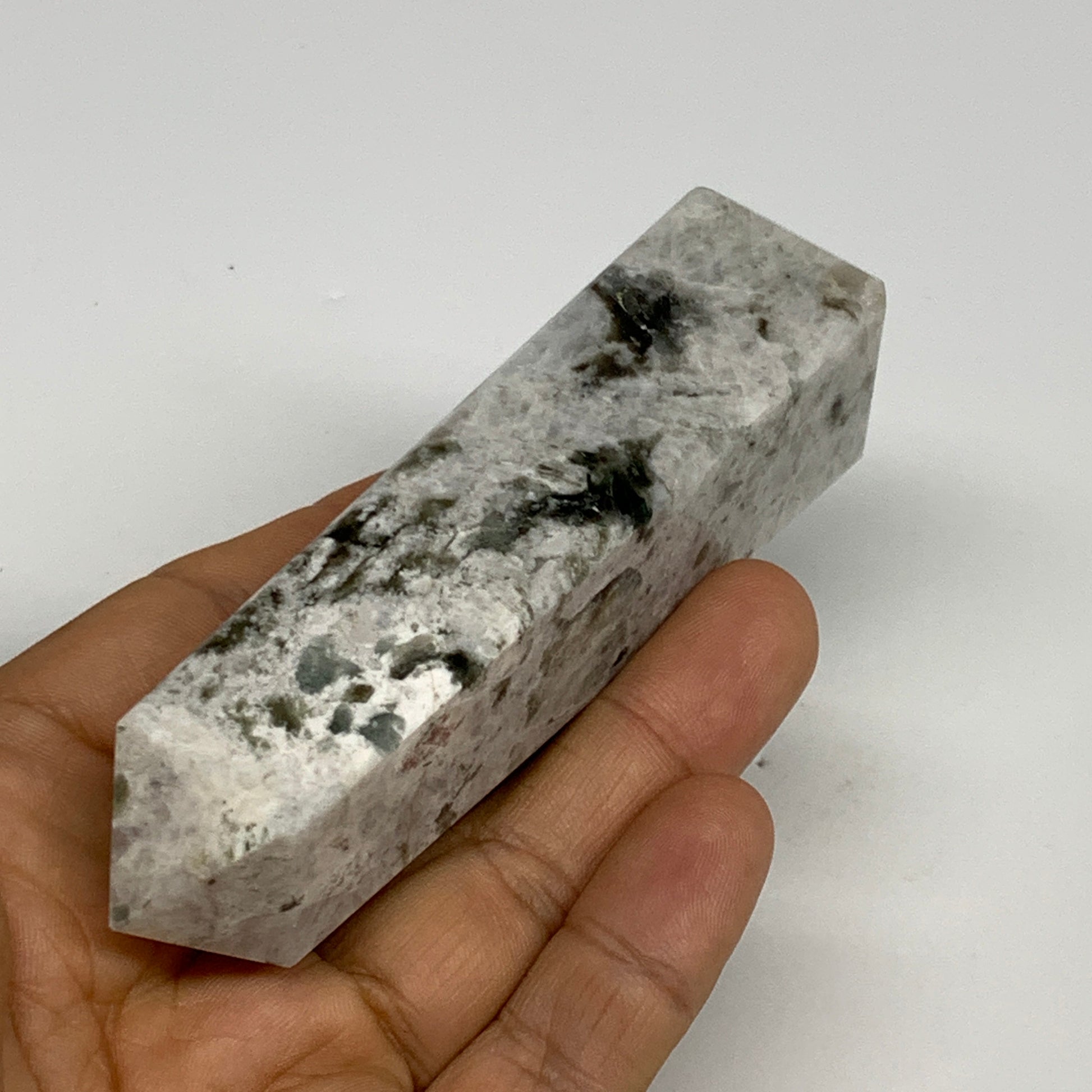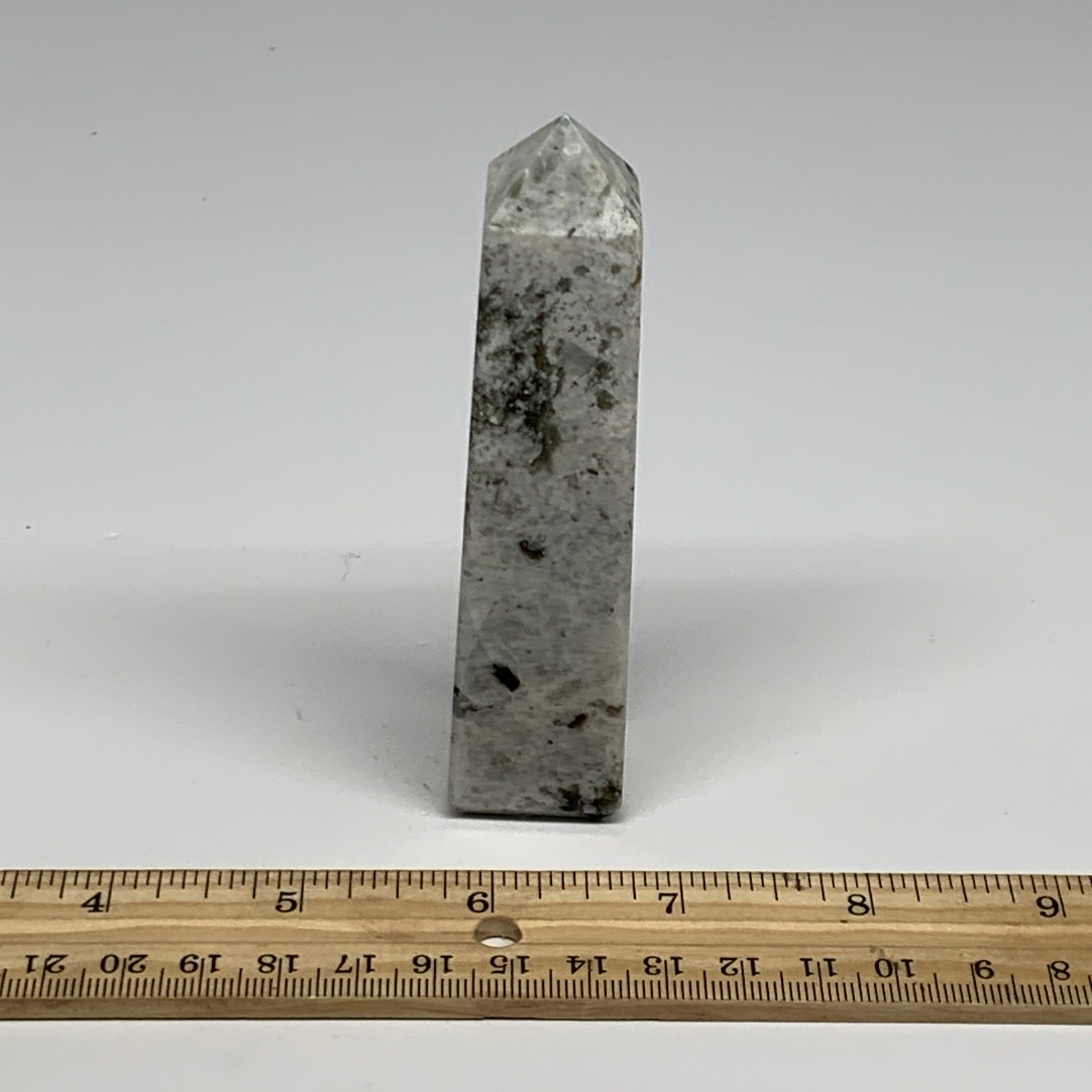 122.1g, 4"x0.9"x0.9" Rainbow Moonstone Tower Obelisk Point Crystal @India,B29290