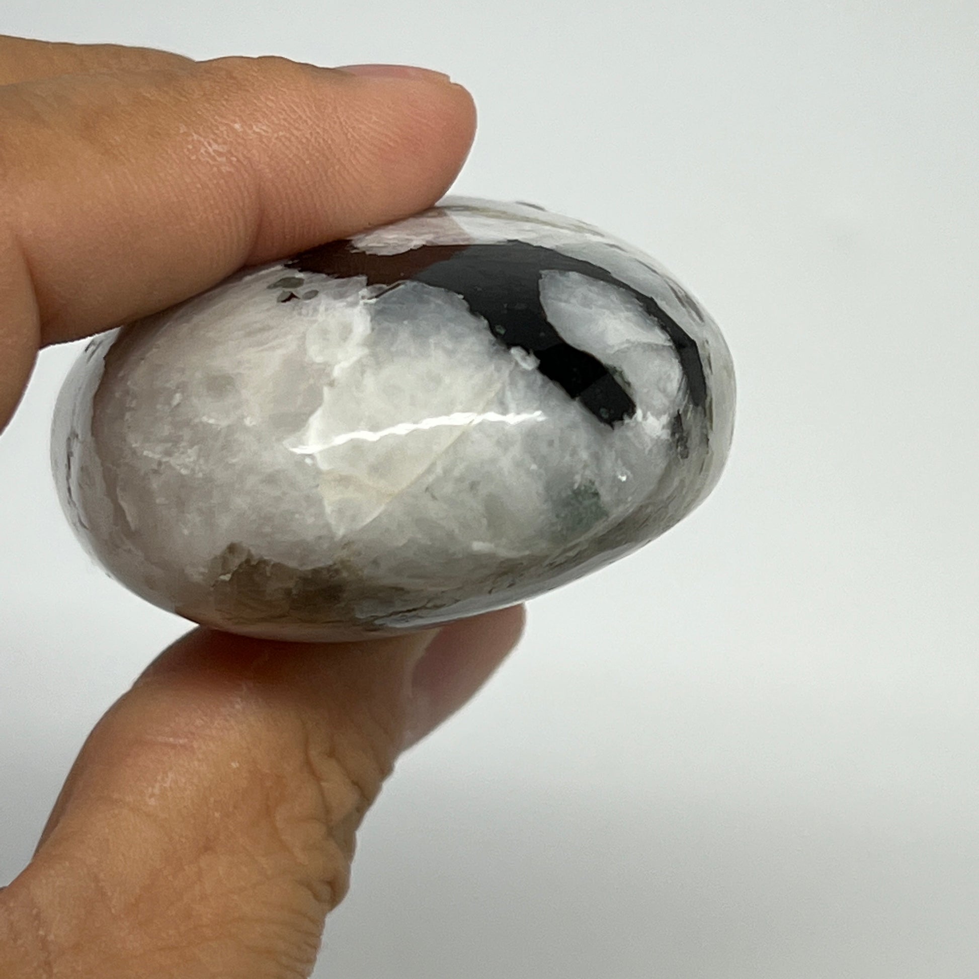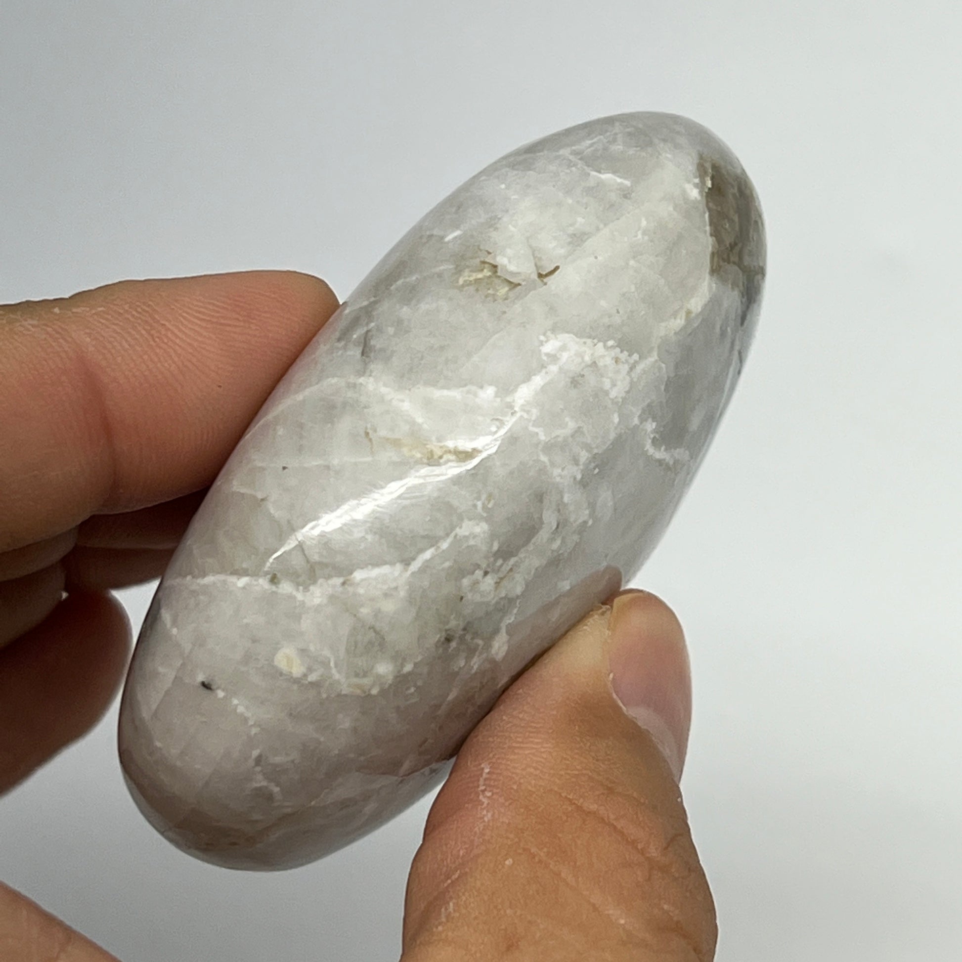 122.5g,2.6"x1.8"x1.1", Rainbow Moonstone Palm-Stone Polished from India, B21257