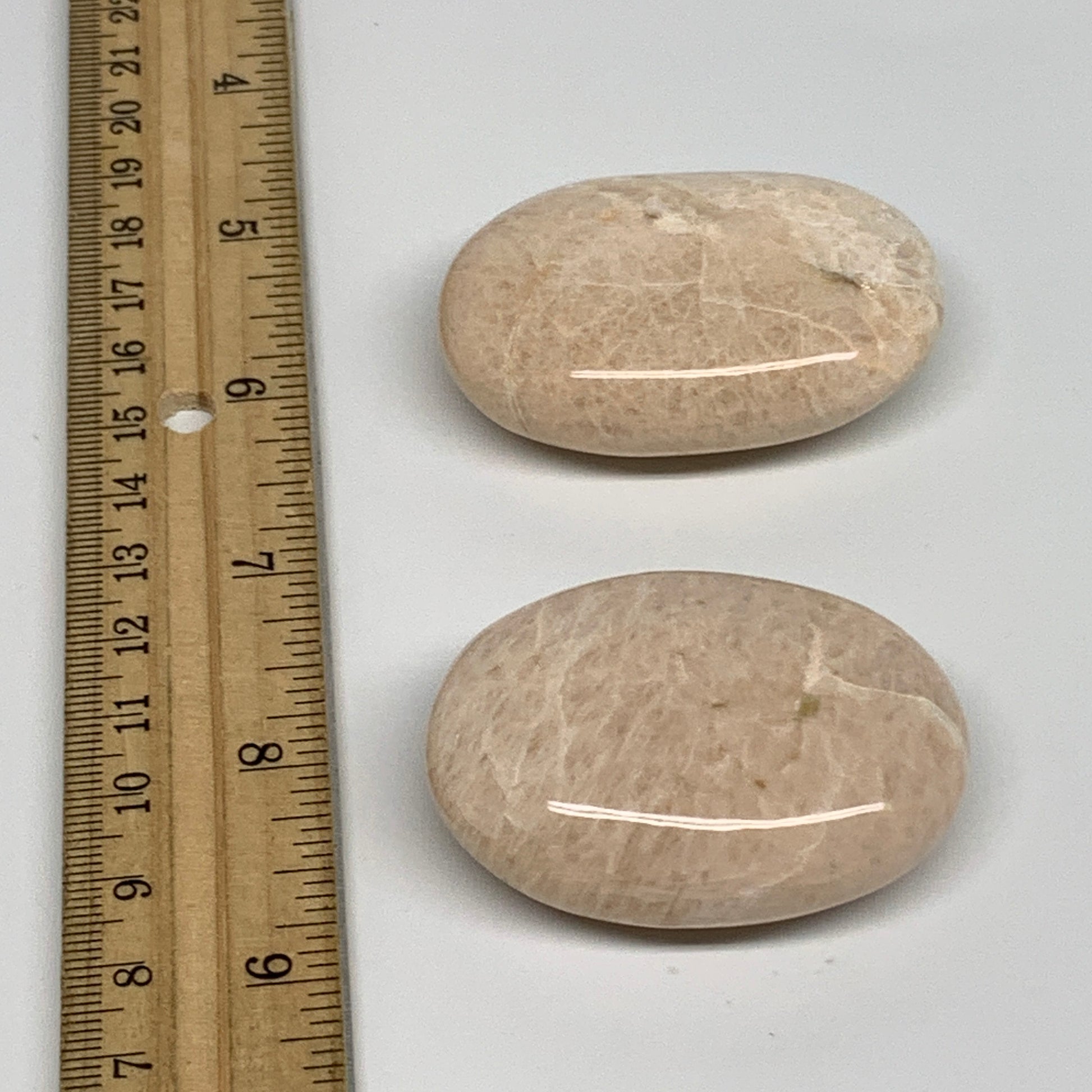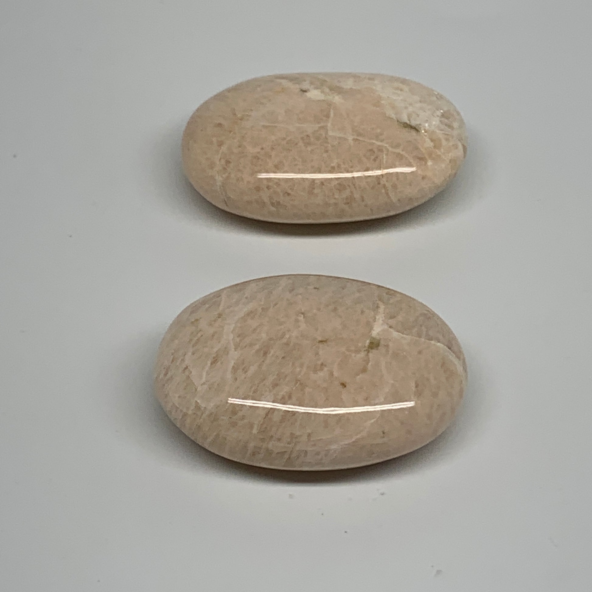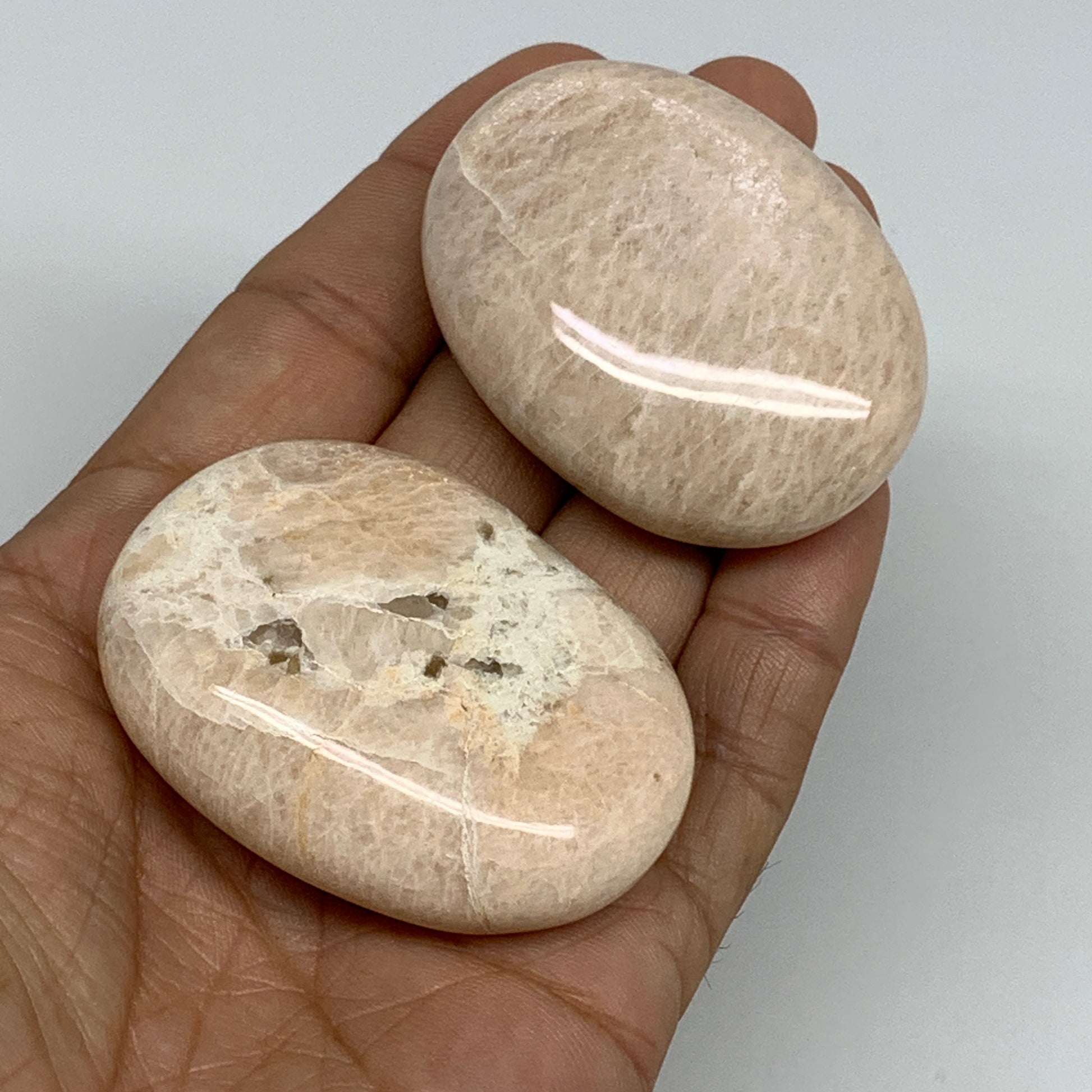 122.6g,2.1"-2.2", 2pcs, Peach Moonstone Polished Palm-Stone Gemstone, B34770