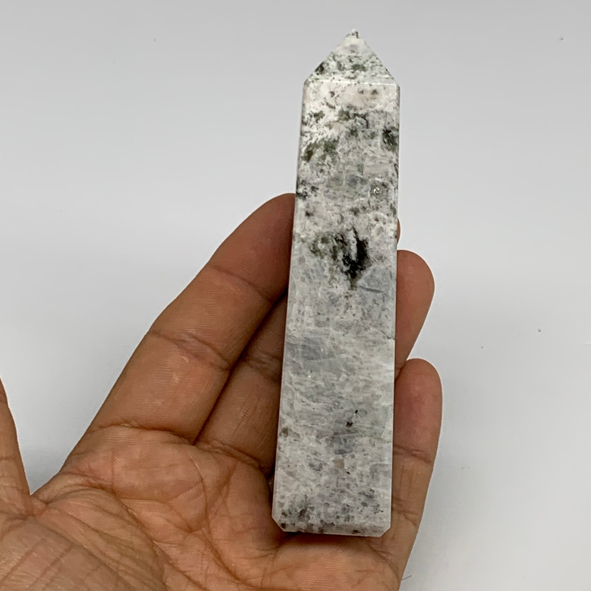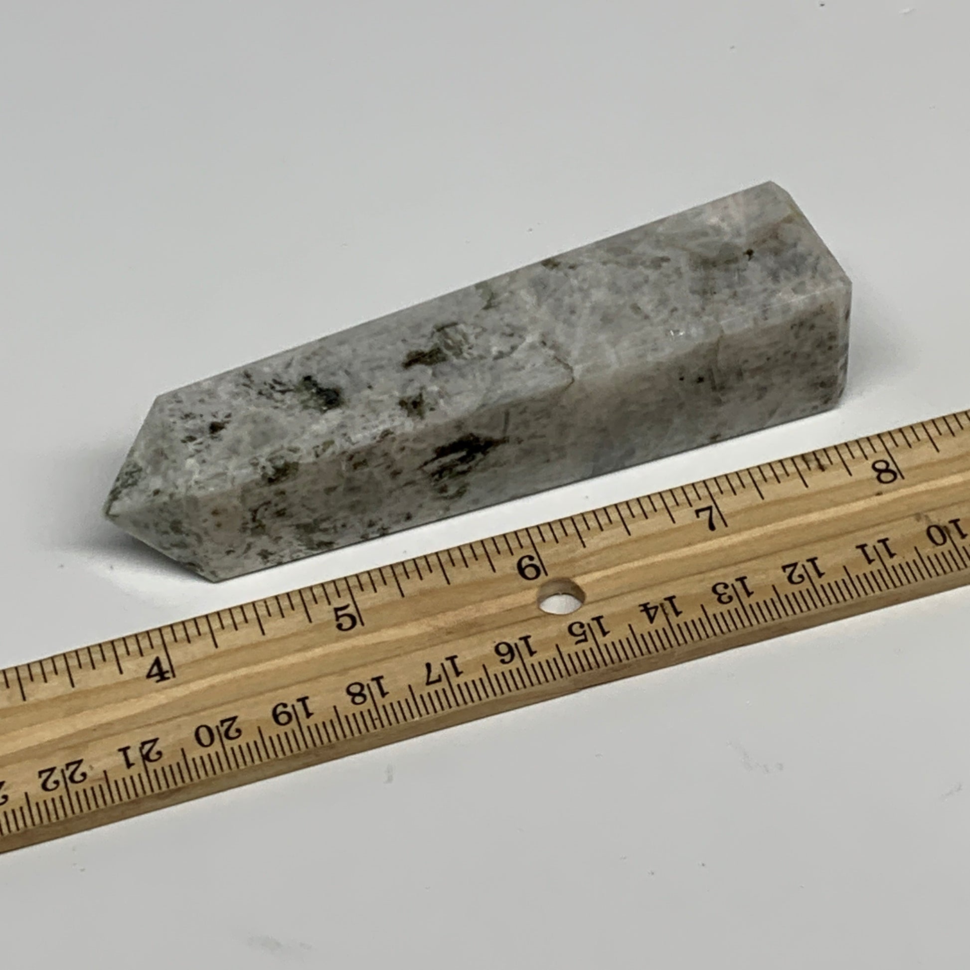 122.9g, 4.1"x1"x1" Rainbow Moonstone Tower Obelisk Point Crystal @India,B29298