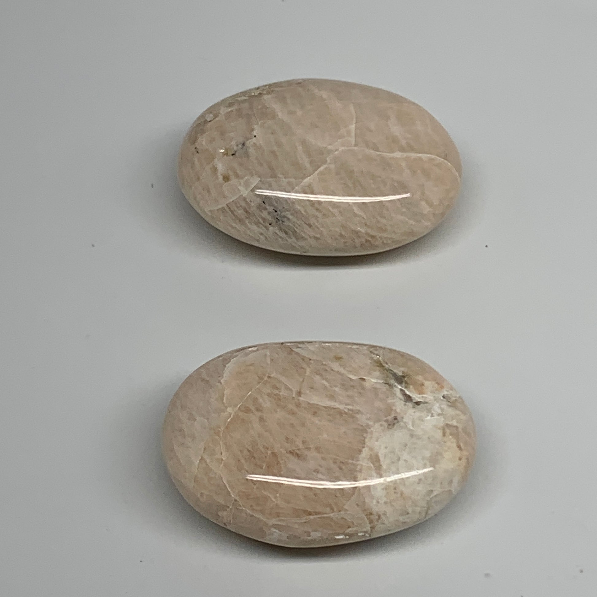 122g,2"-2.1", 2pcs, Peach Moonstone Polished Palm-Stone Gemstone, B34774