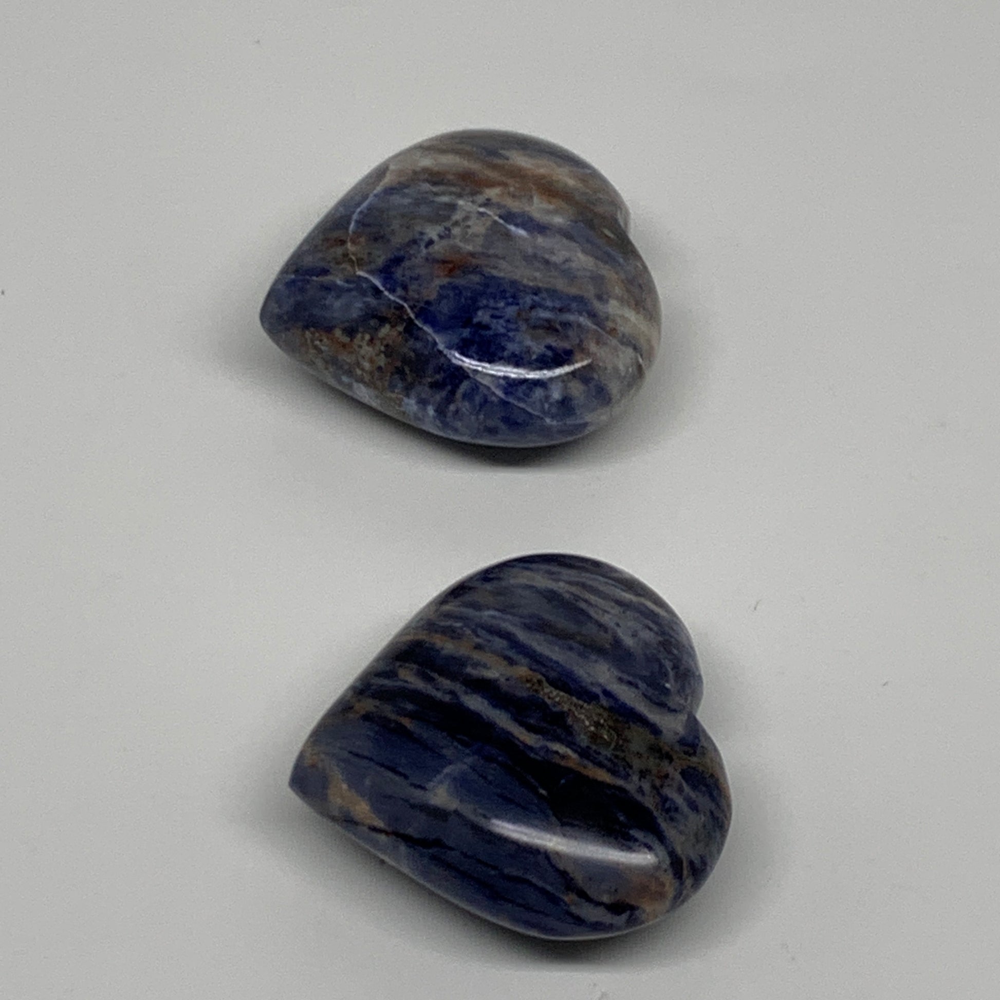 123.1g, 1.8"-1.8", 2pcs, Natural Sodalite Heart Polished Gemstone, B34876
