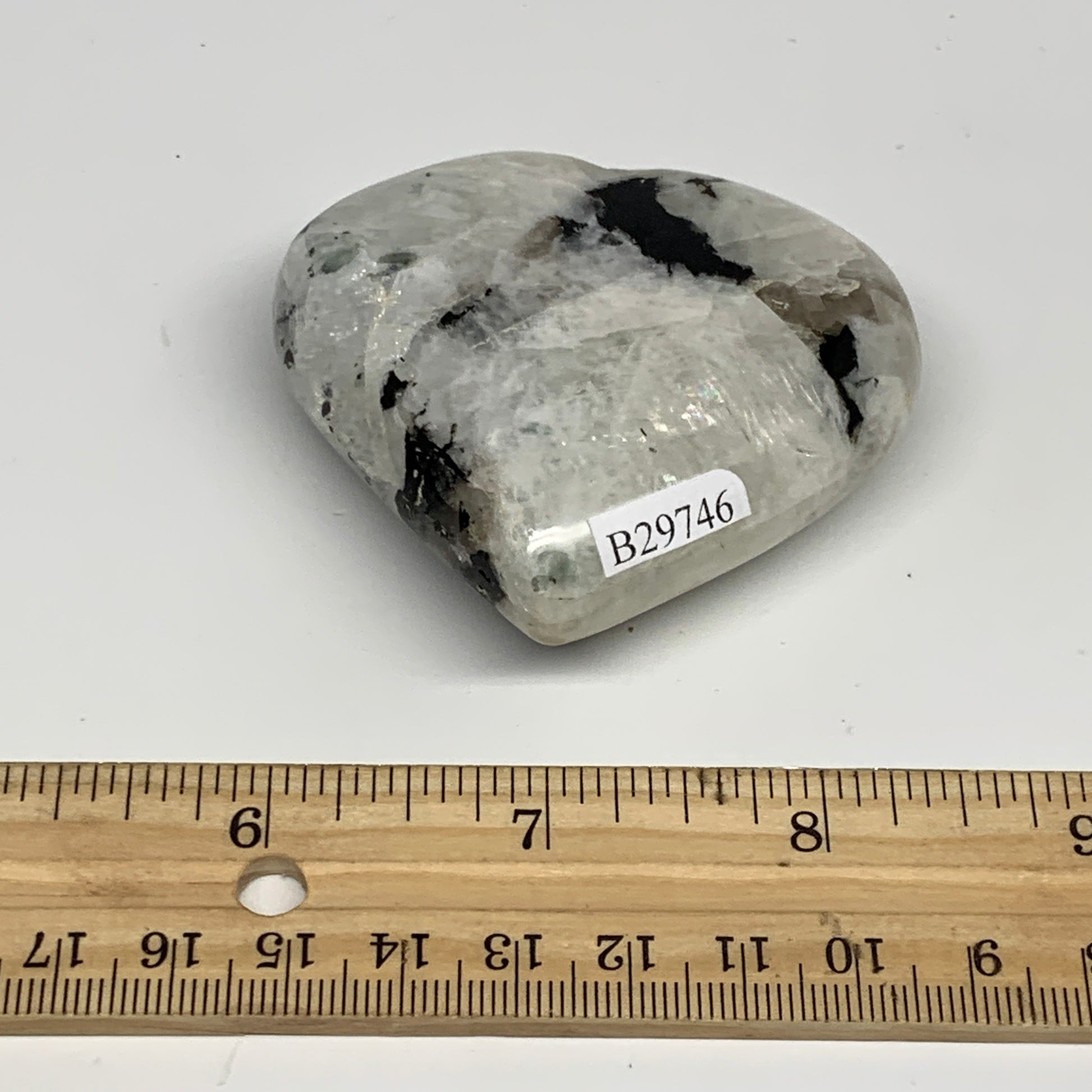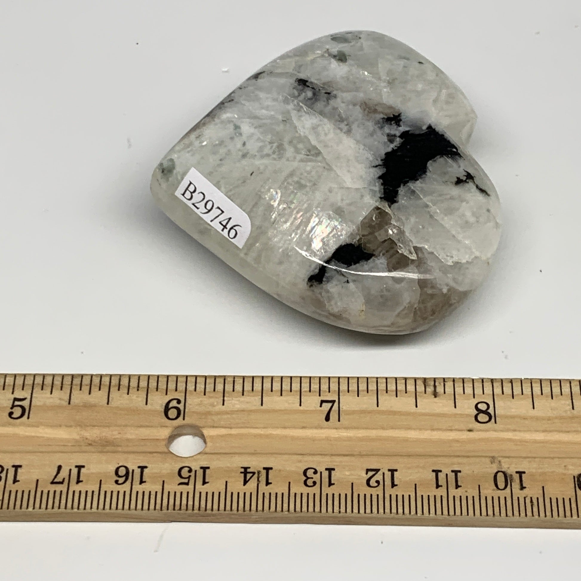 123.7g, 2.3"x2.6"x0.9", Rainbow Moonstone Heart Crystal Gemstone @India, B29746