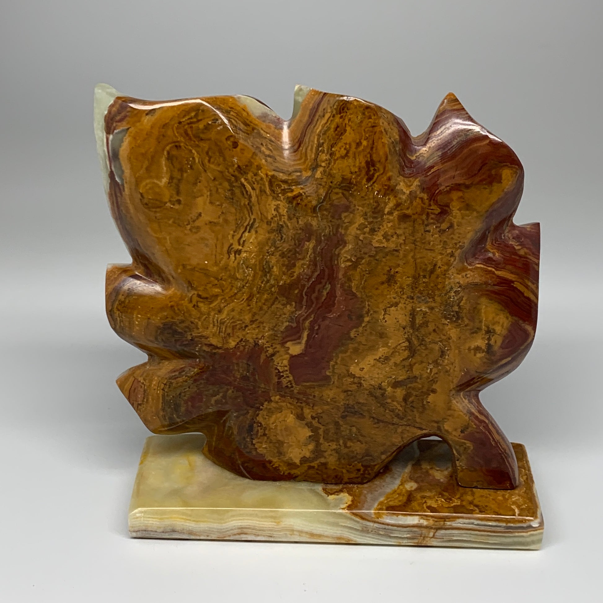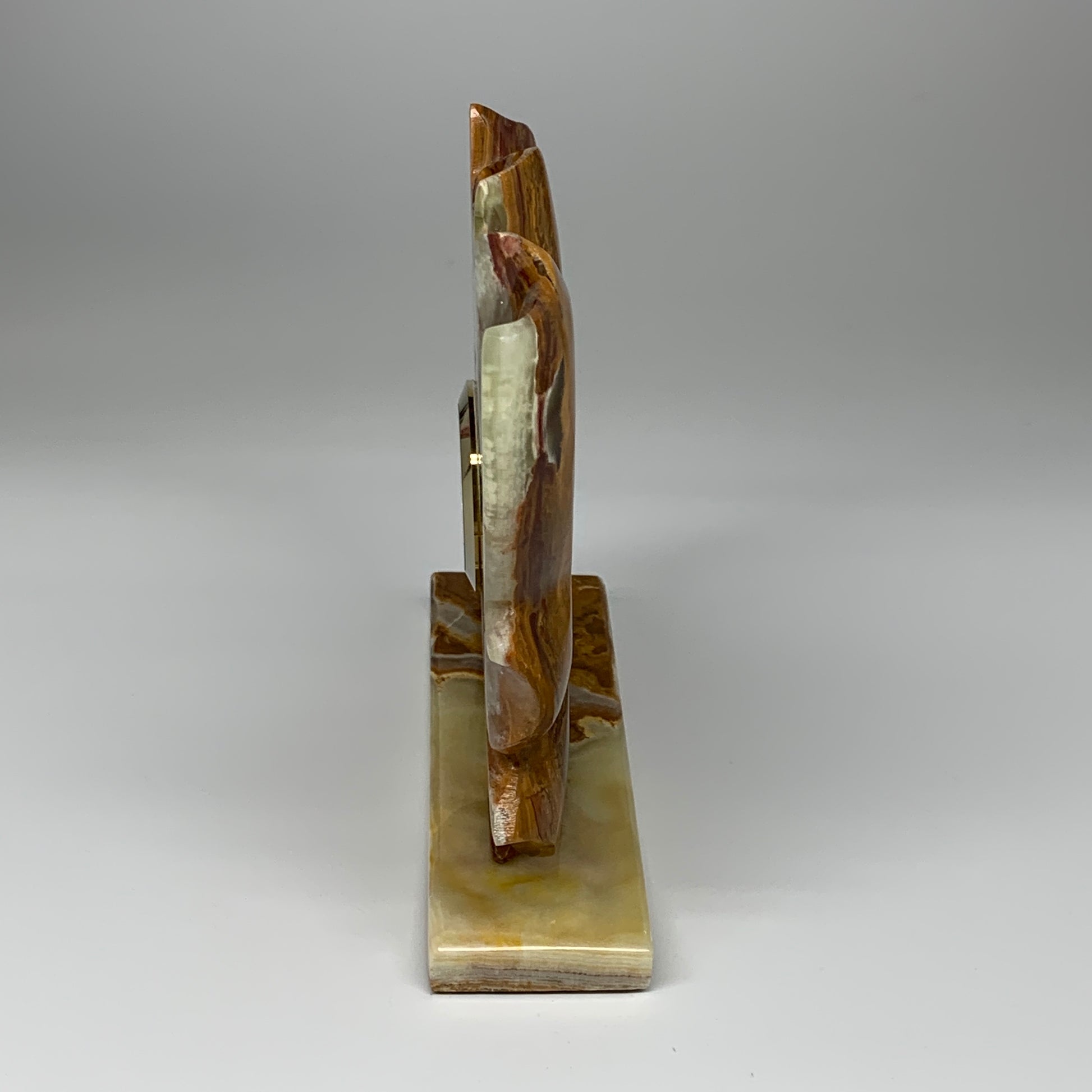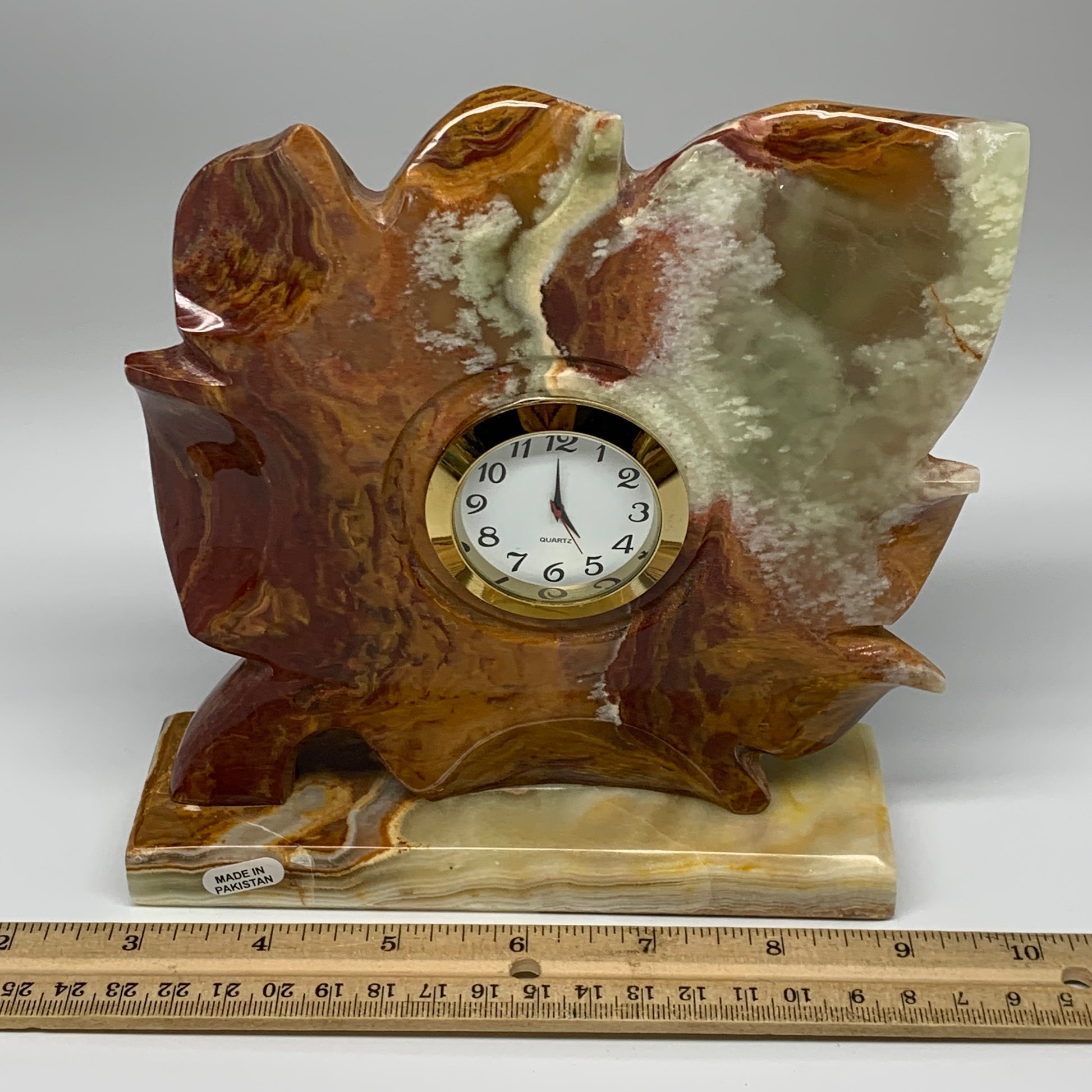 1234g, 6.5"x6.5" Green Onyx Leaf Clock Gemstone from Pakistan, B7816