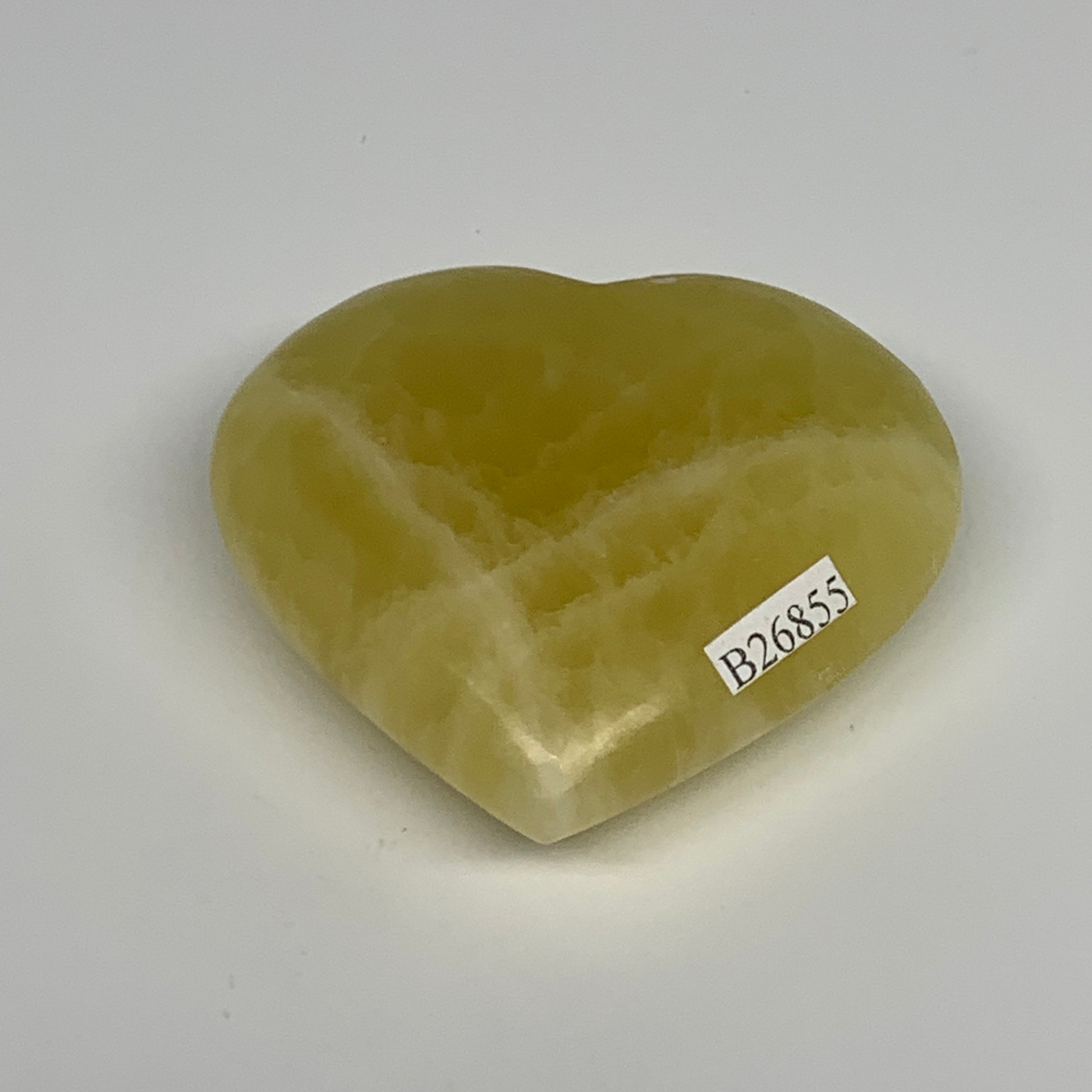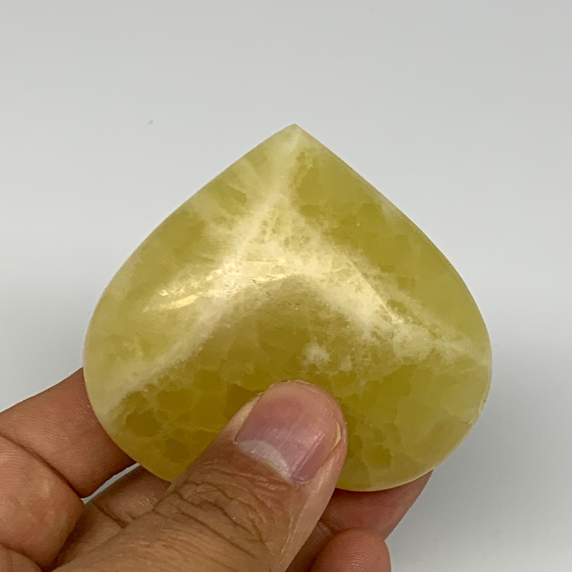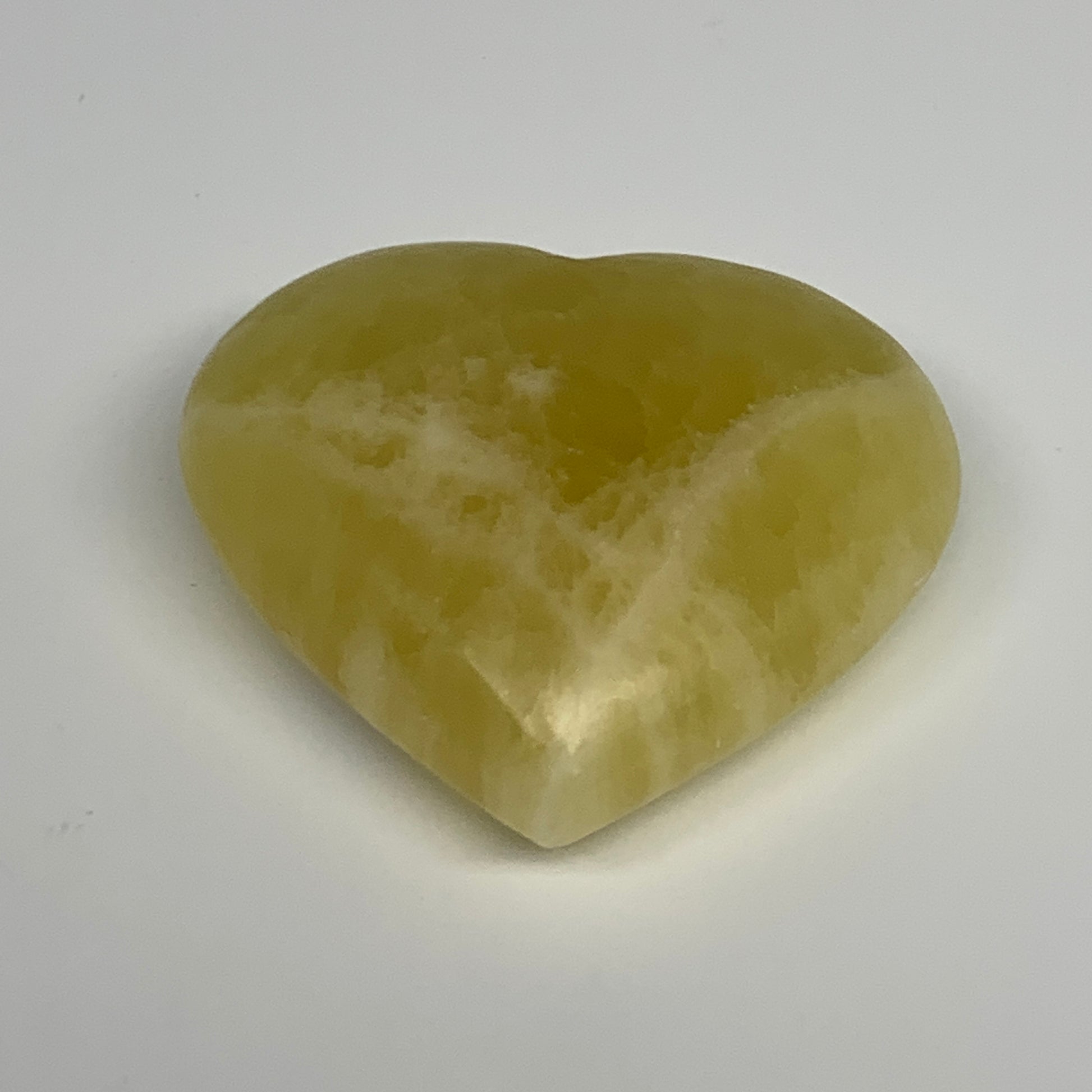 124.2g, 2.3"x2.5"x0.9" Lemon Calcite Heart Crystal Gemstones @Afghanistan, B26855