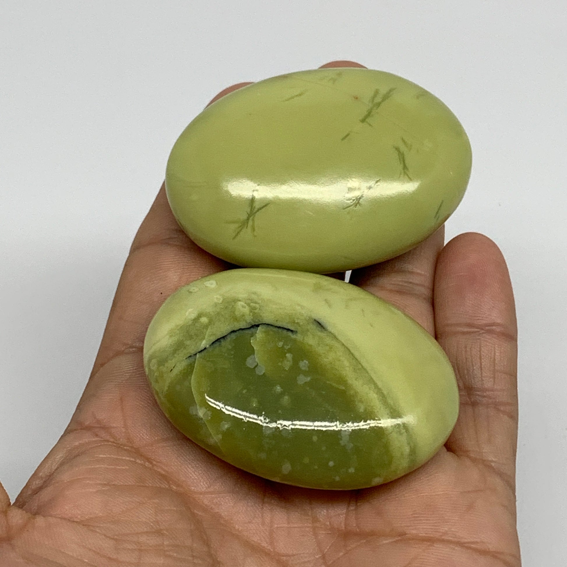 124.7g, 2.1"- 2.2", 2pcs, Natural Serpentine Palm-Stone Gemstone, B34615
