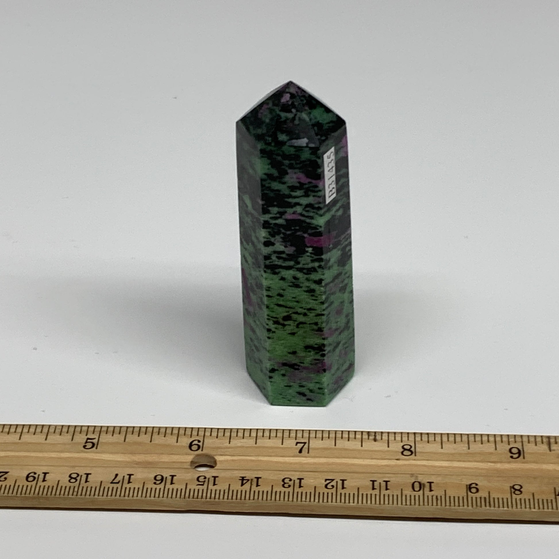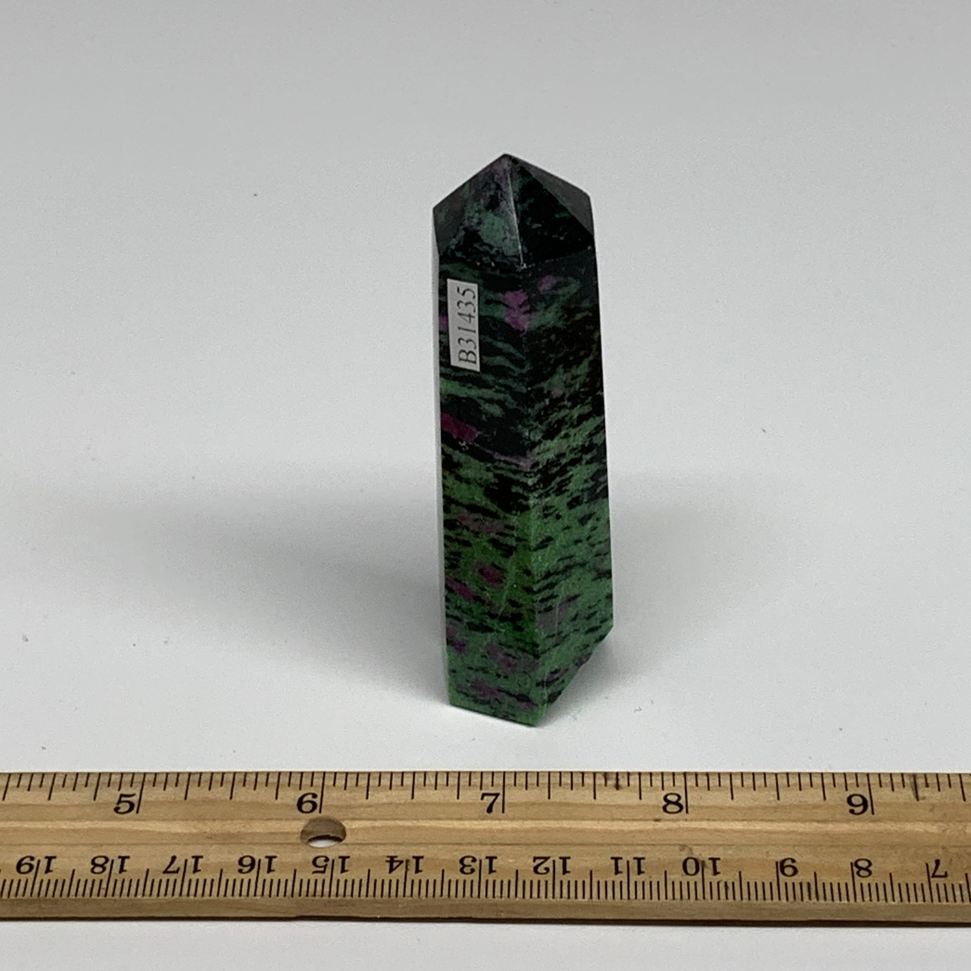 125.4g, 3.4"x0.9", Natural Ruby Zoisite Tower Point Obelisk @India, B31435