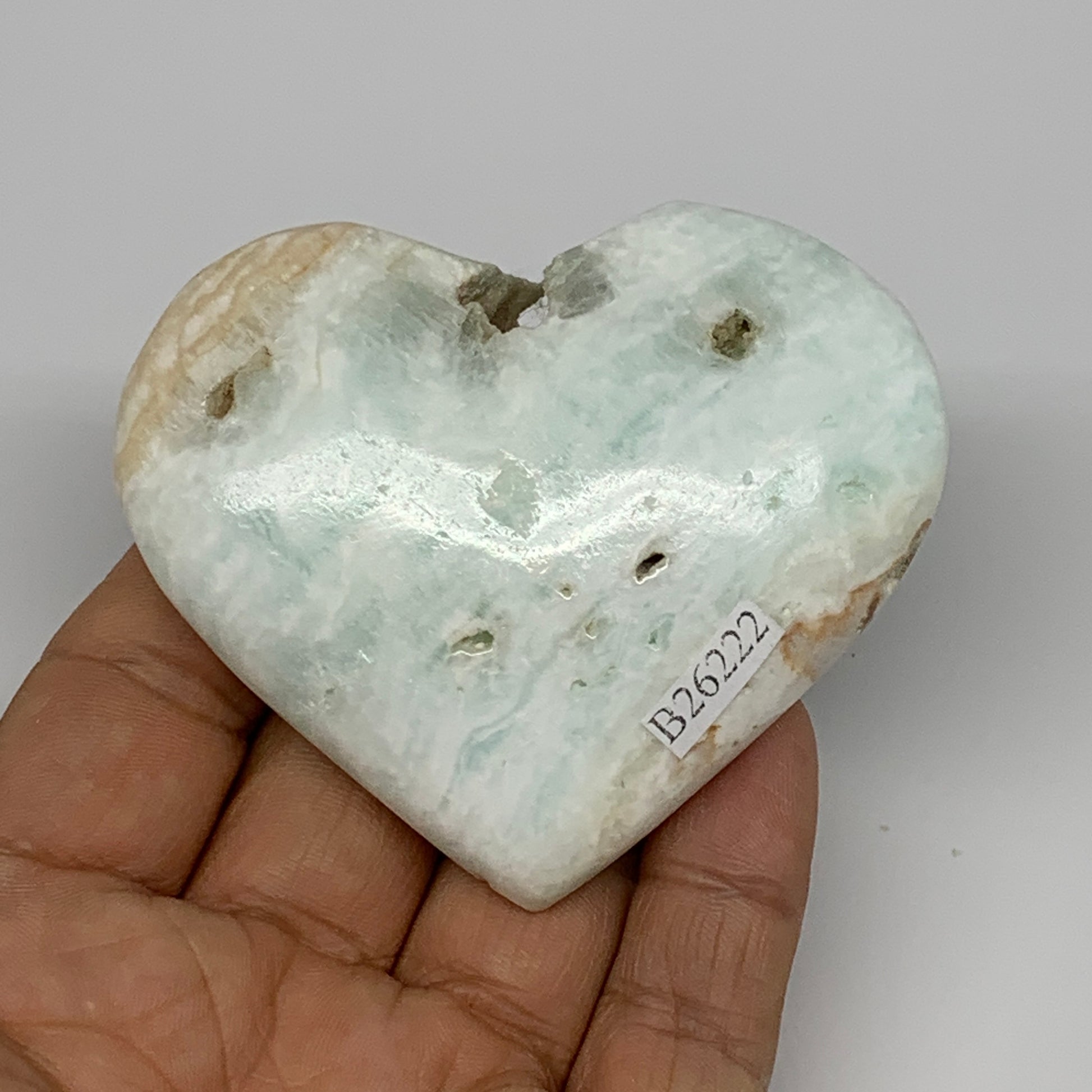 106.4g, 2.4"x2.5"x0.8" Caribbean Calcite Heart Gemstones @Afghanistan,B26223