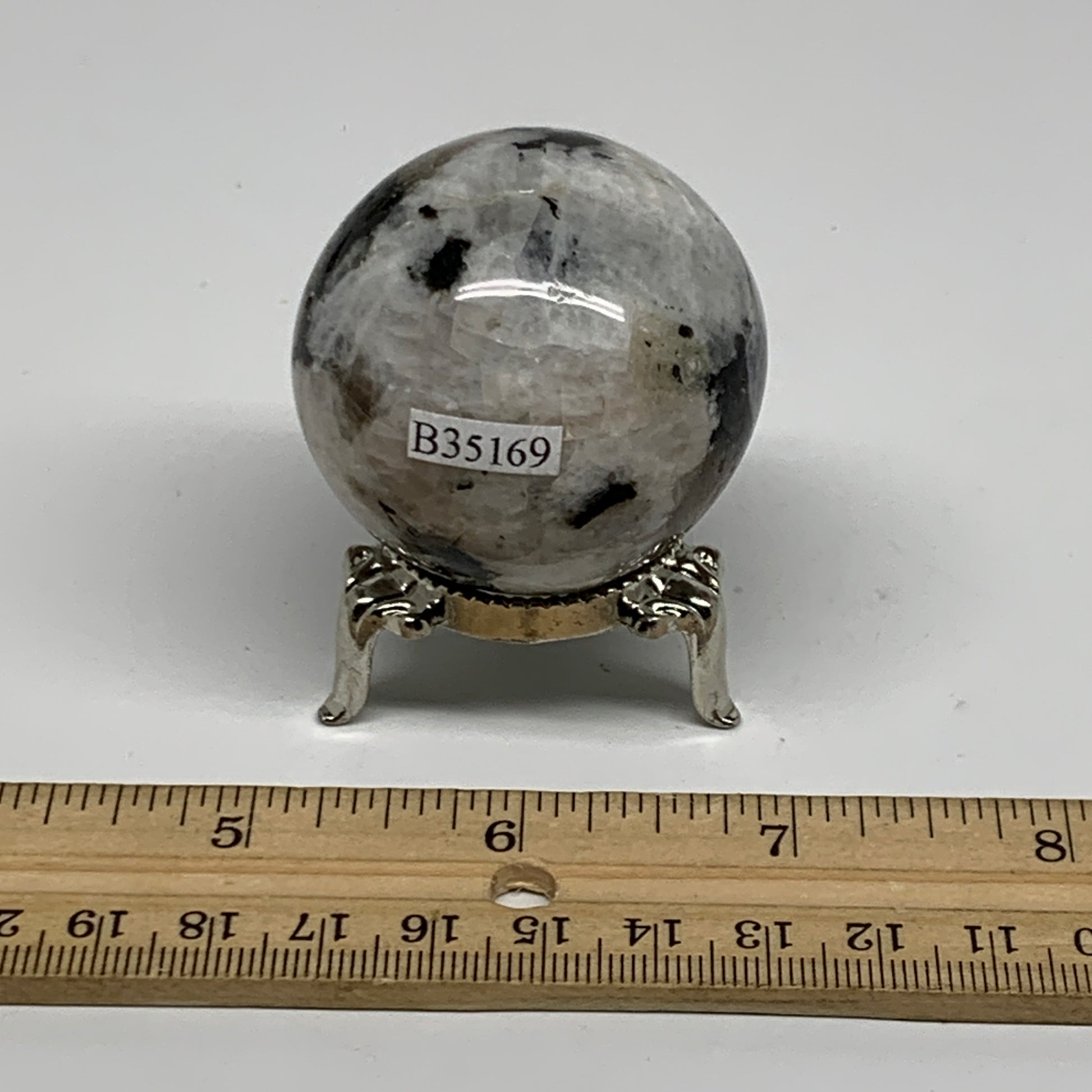 126.4g, 1.7"(44mm), Natural Rainbow Moonstone Sphere Ball Gemstone, B35169