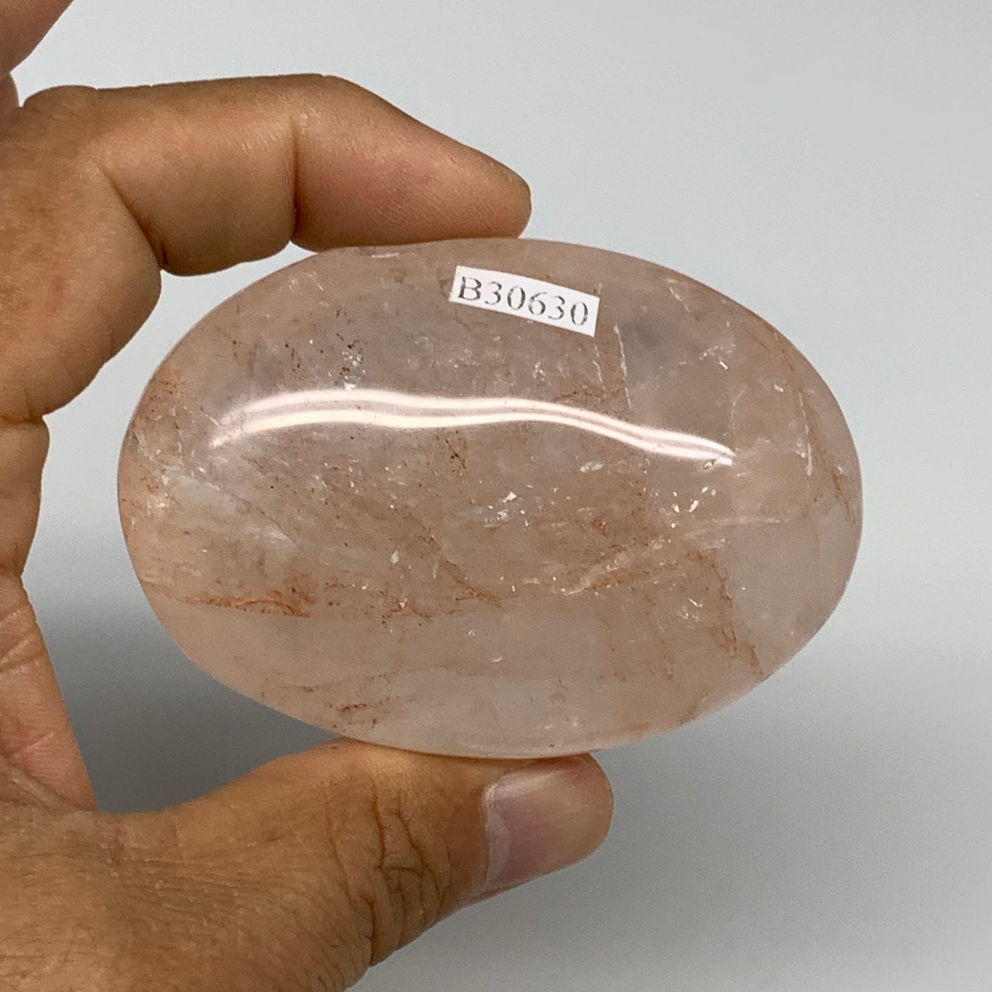 126.6g,2.7"x1.9"x1", Red Hematoid Fire Quartz Palm-Stone Crystal Polished, B30630