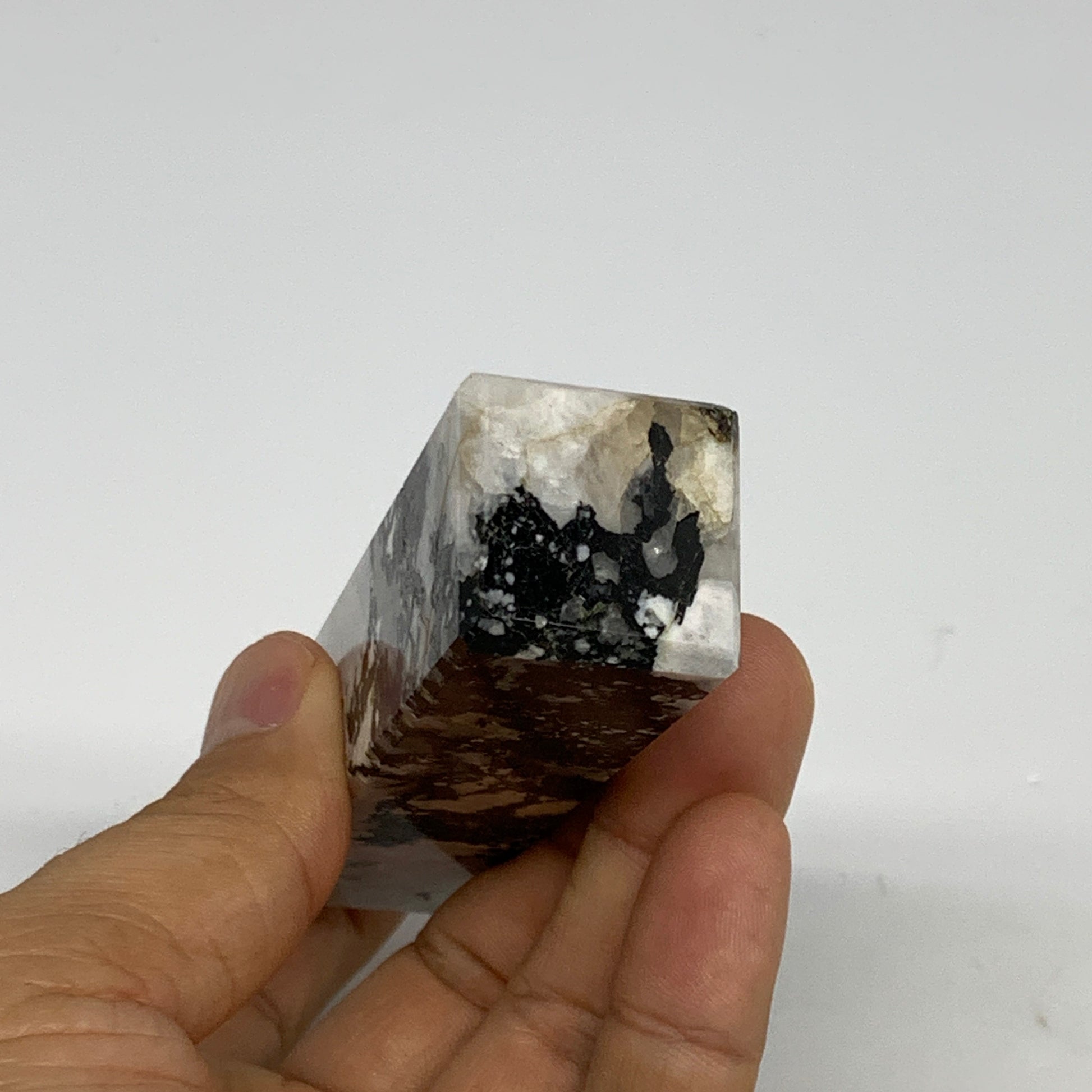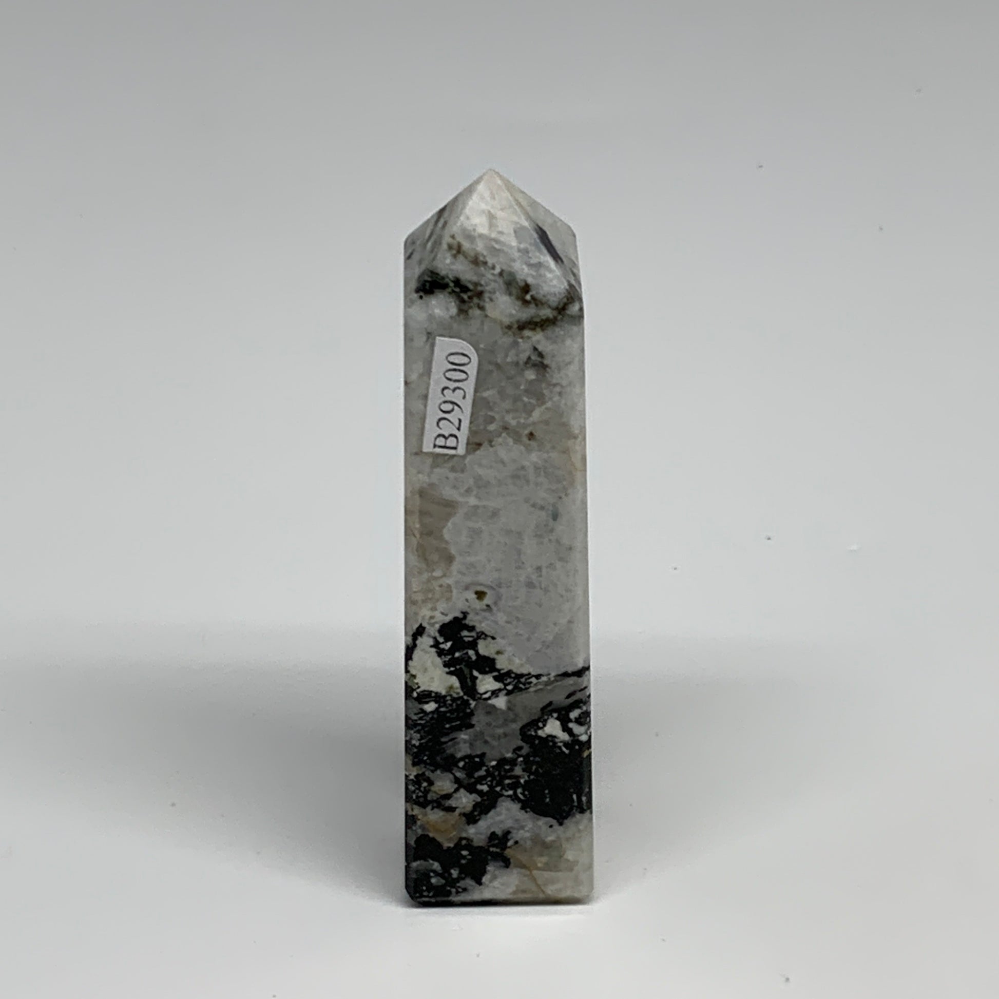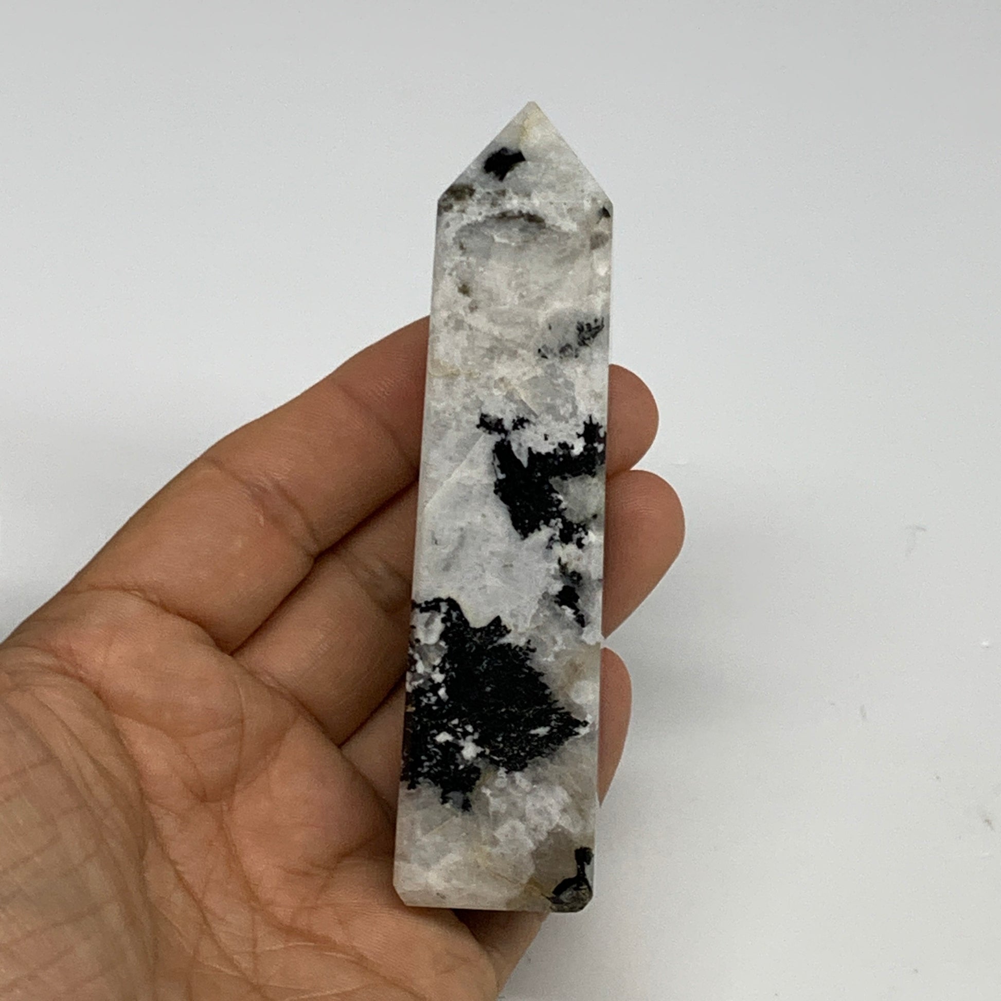 126.6g, 3.9"x1"x1" Rainbow Moonstone Tower Obelisk Point Crystal @India,B29300