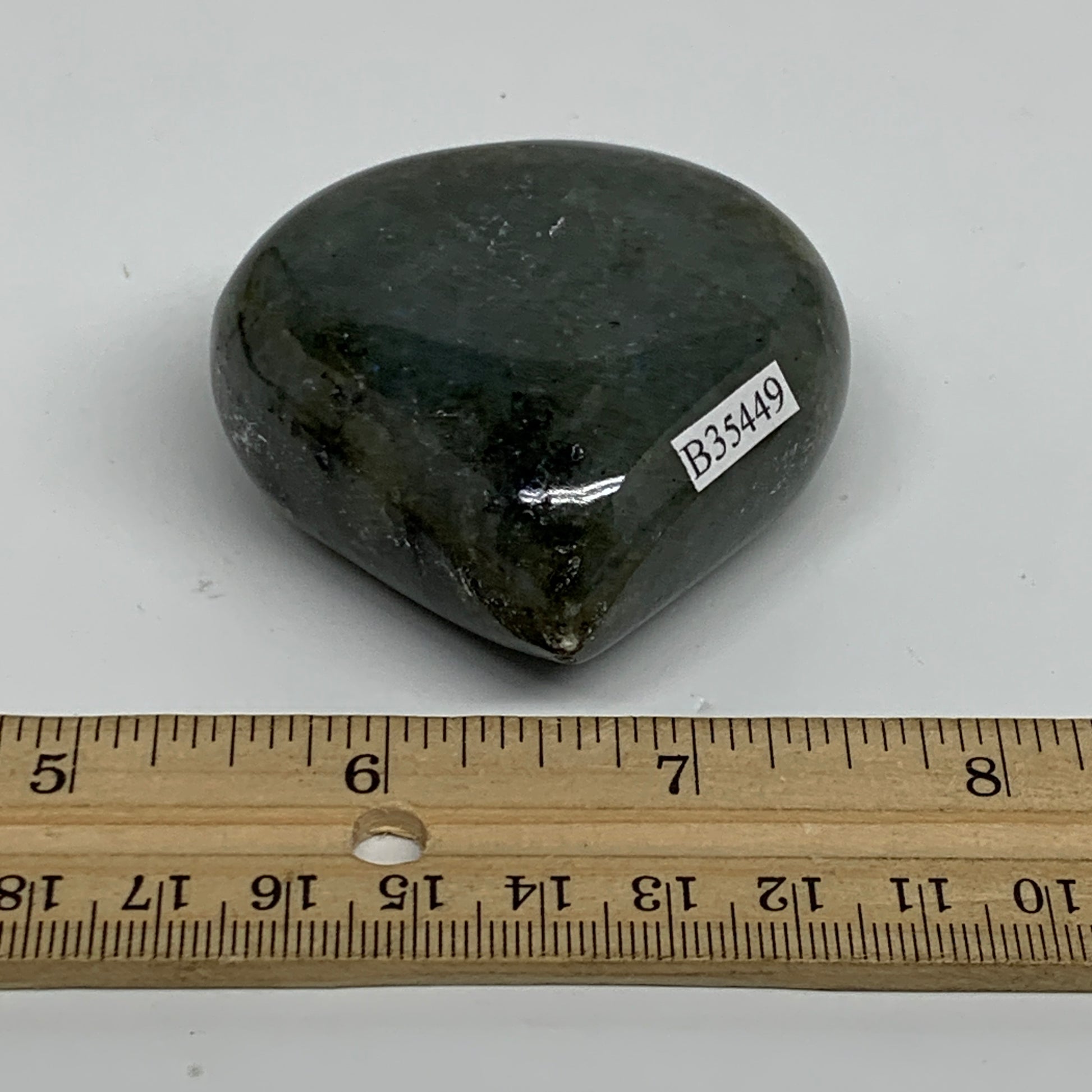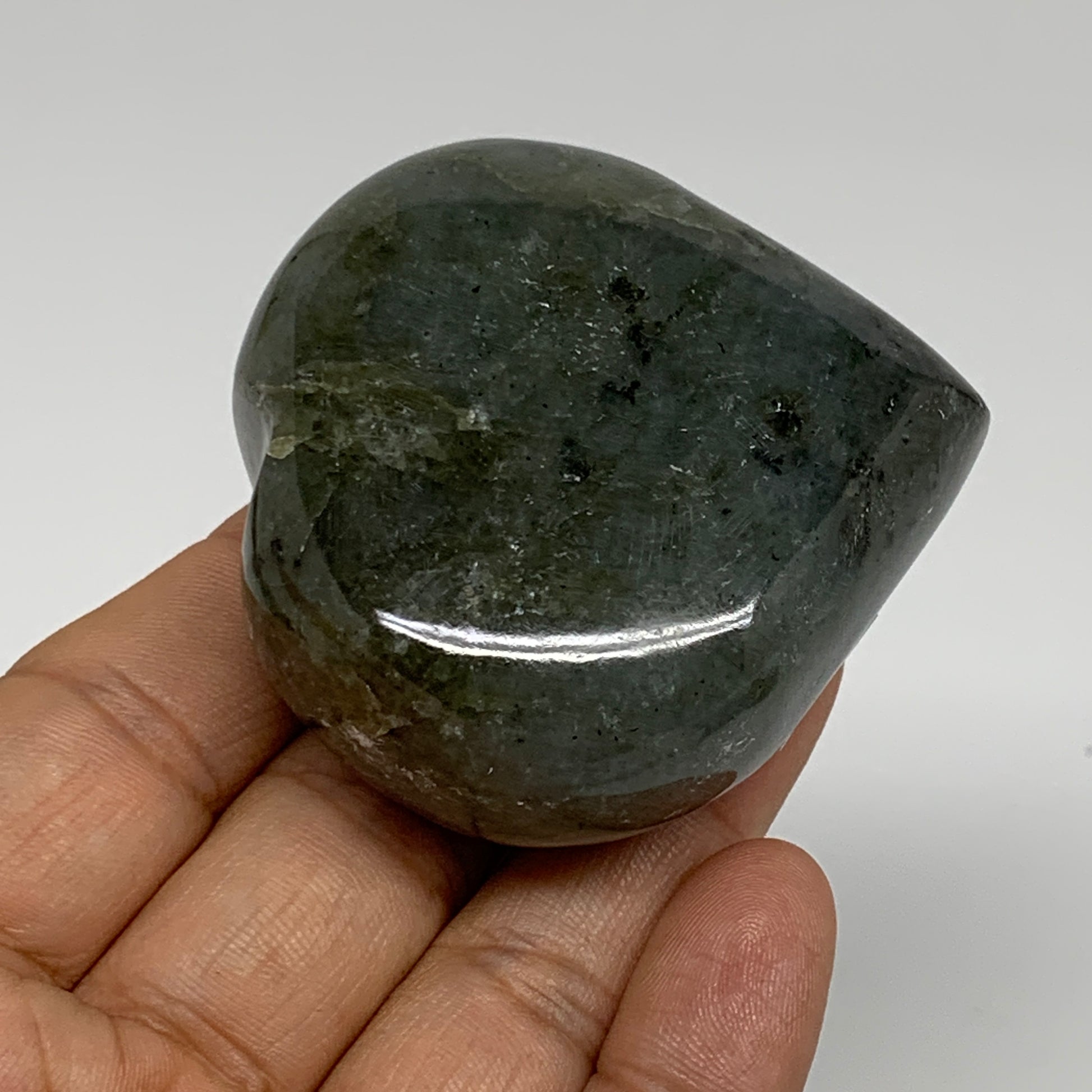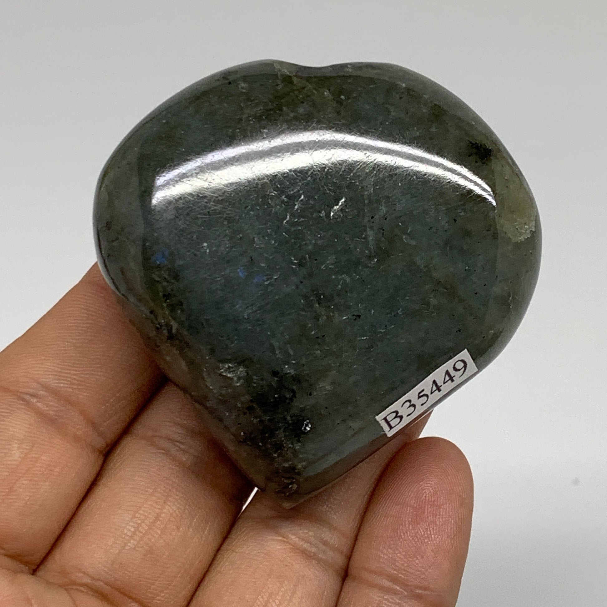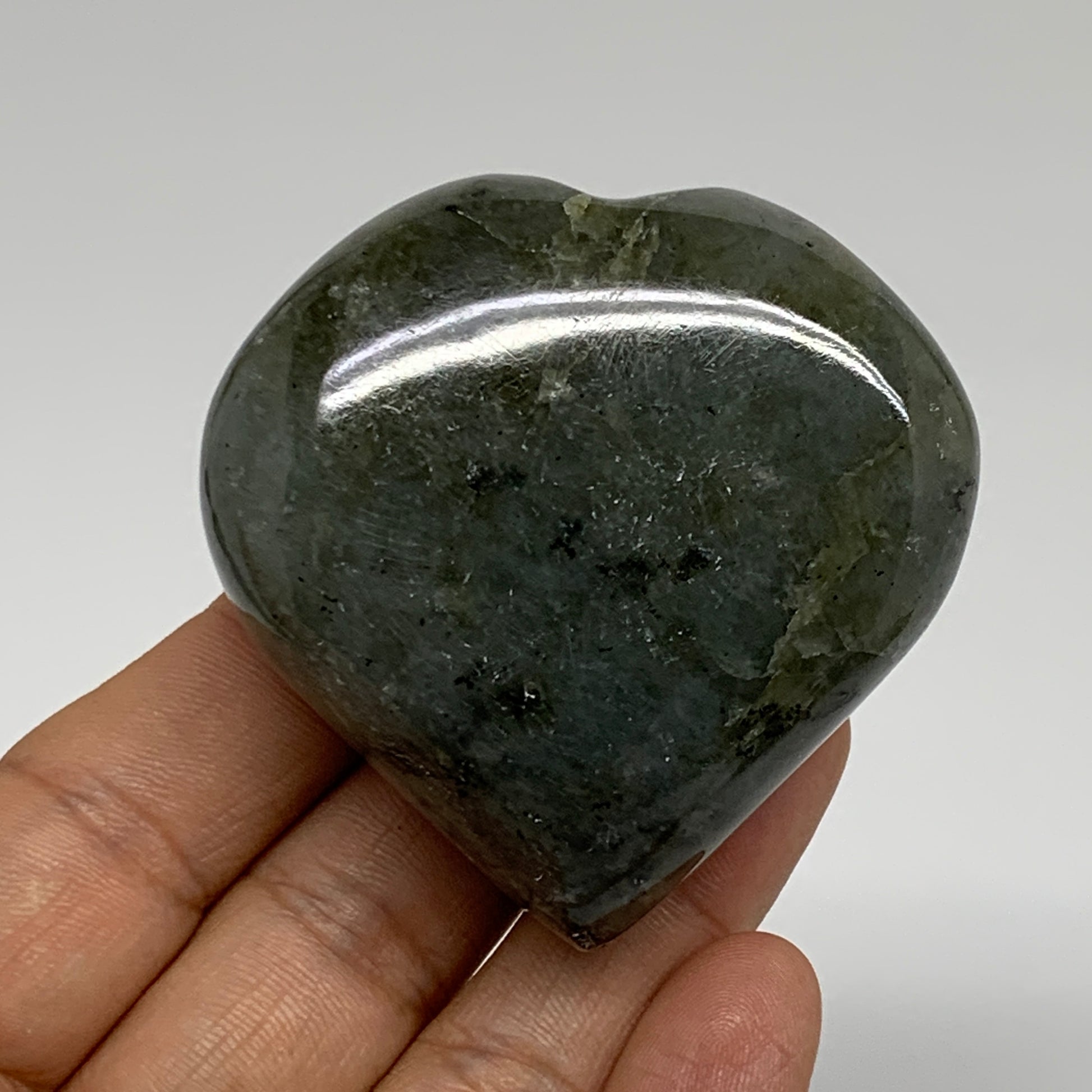 126.9g, 2.2"x2.2"x1" Natural Labradorite Heart Polished Healing Crystal, B35449