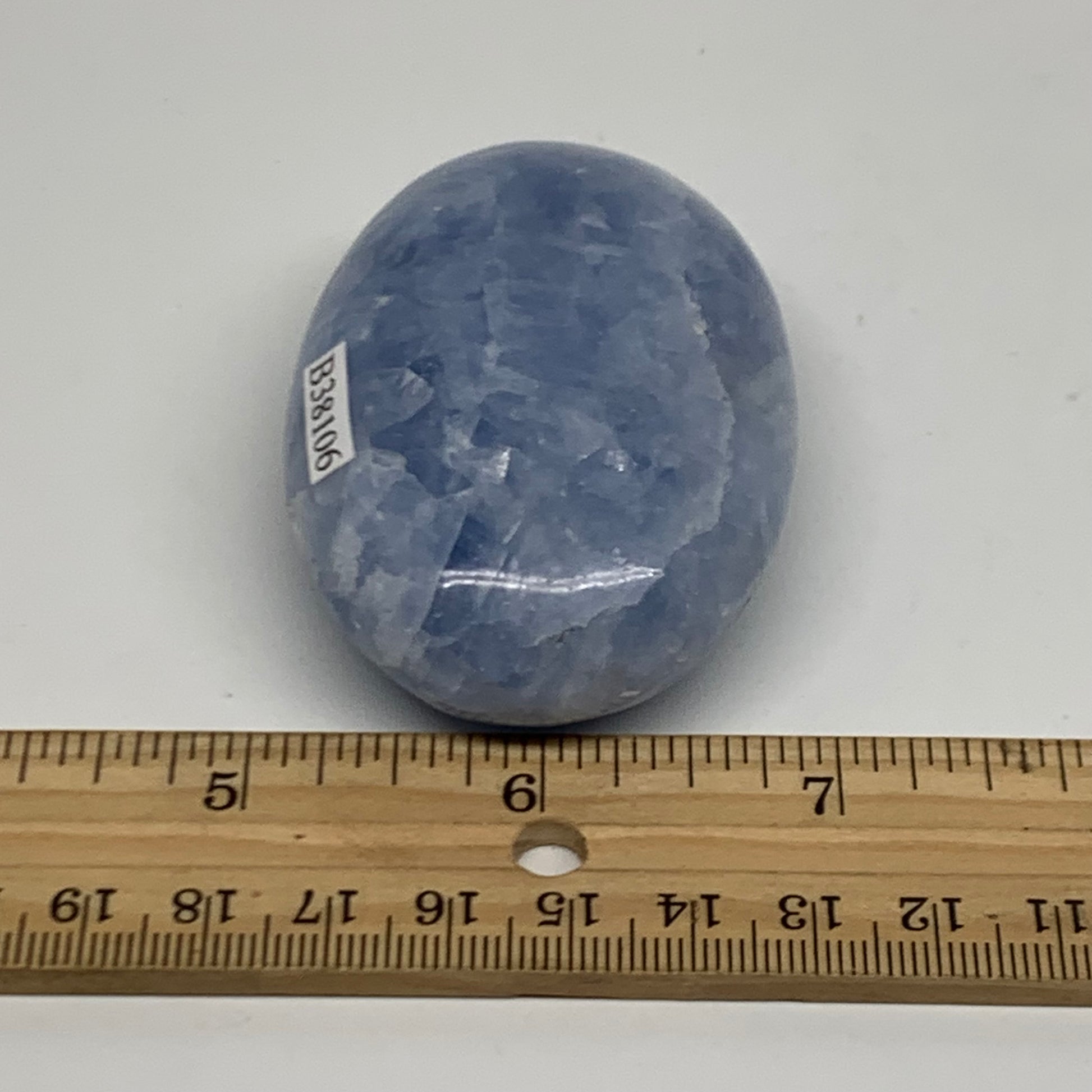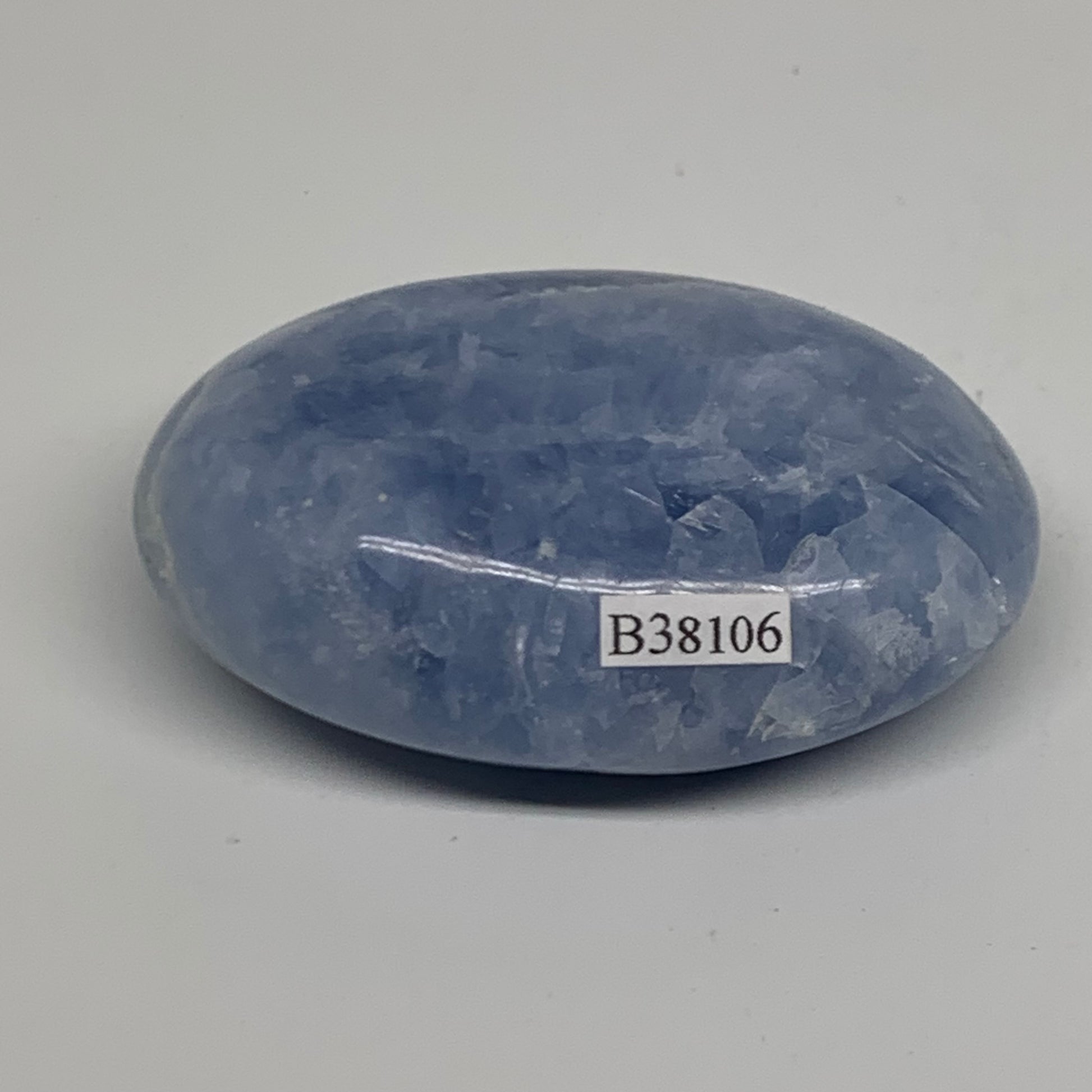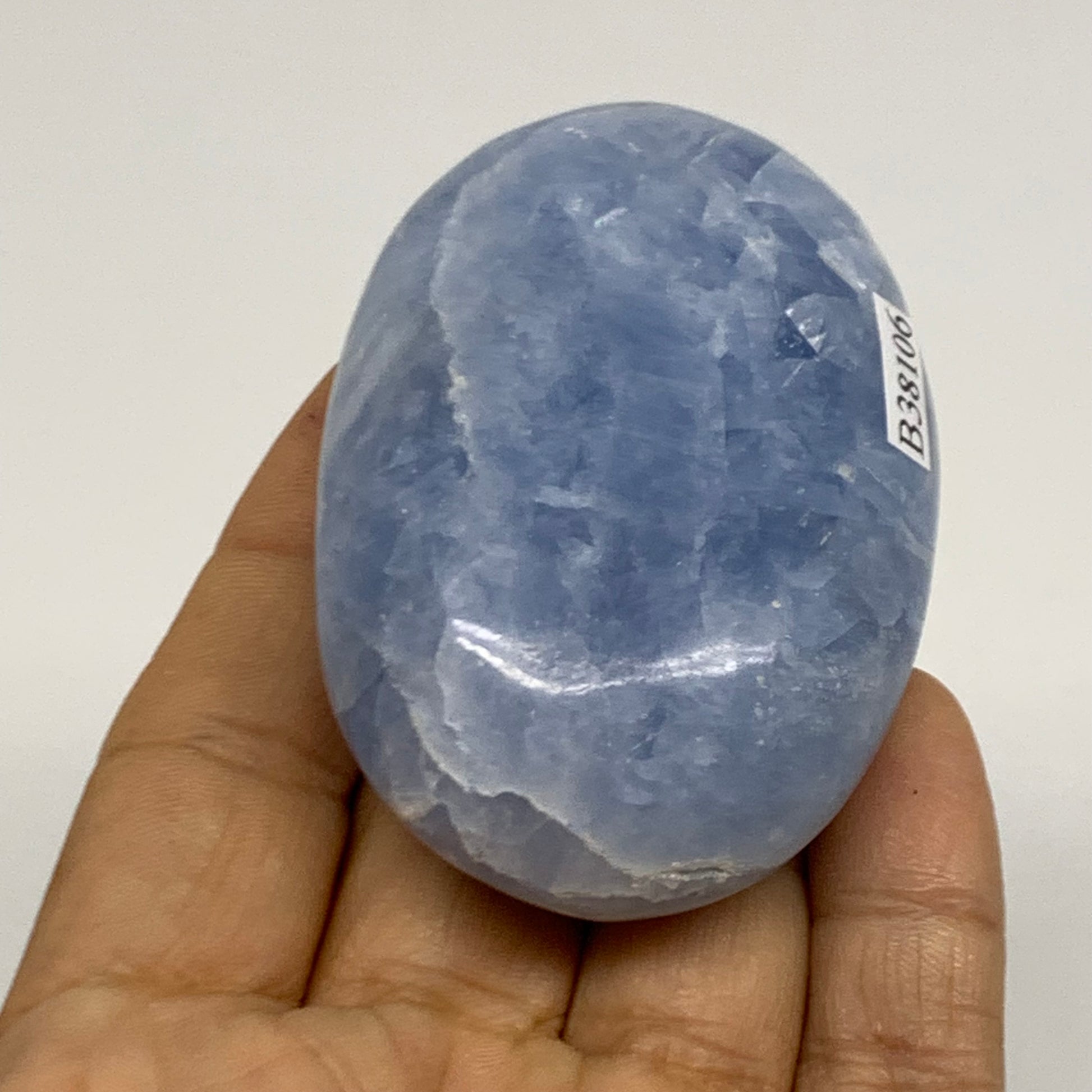 126g, 2.8"x1.8"x1" Blue Calcite Palm-Stone Polished Tumbled, B38106