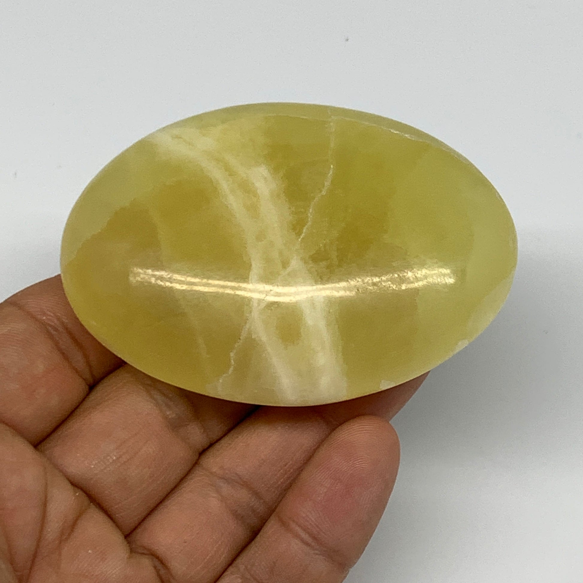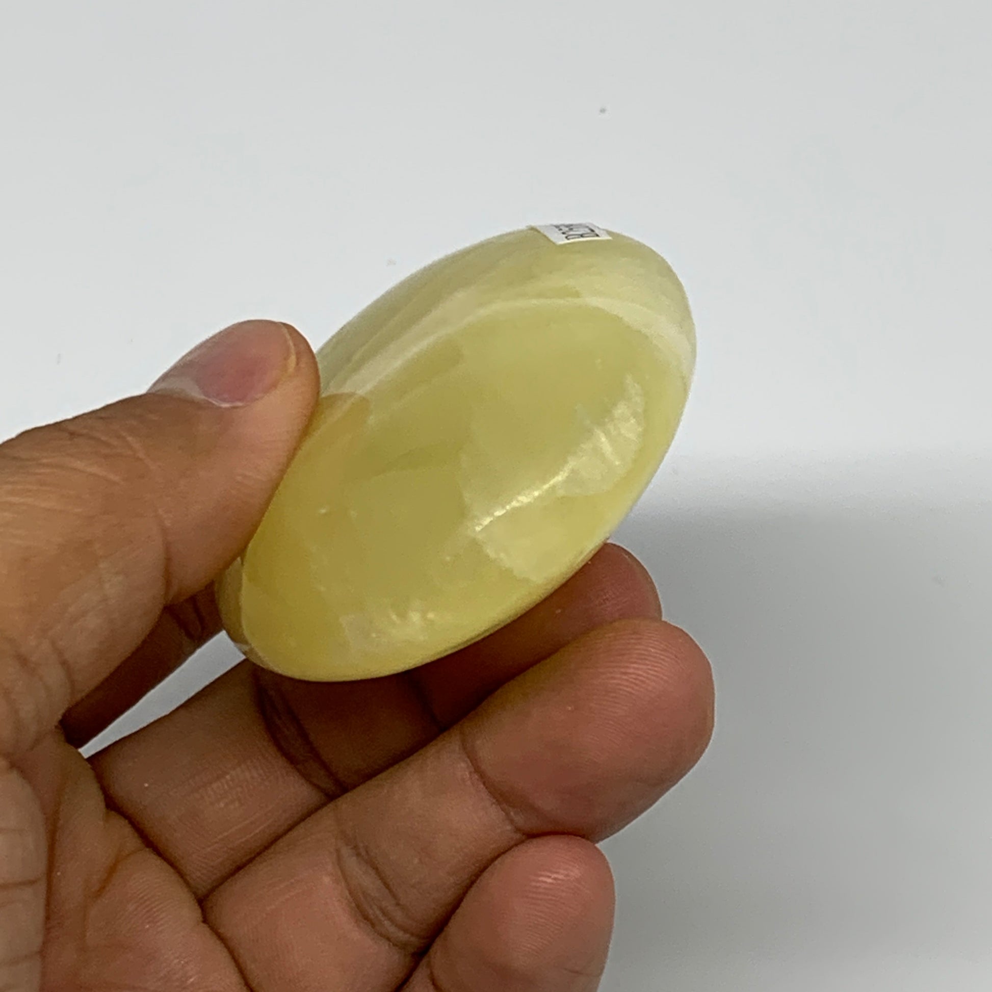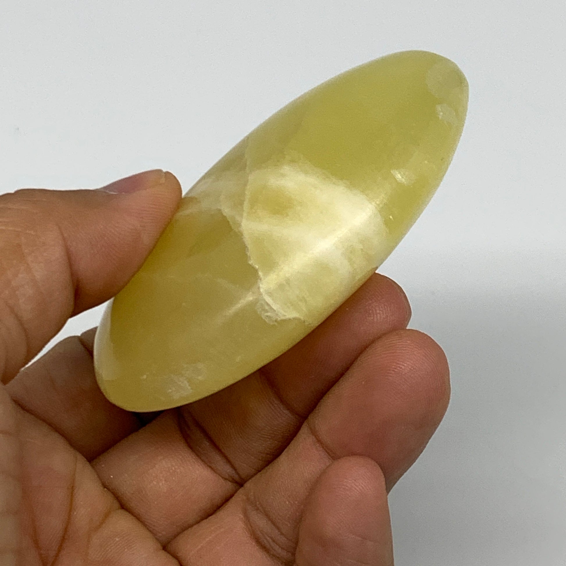 127.6g, 2.8"x2"x0.9", Lemon Calcite Palm-Stone Crystal Polished @Pakistan,B25595