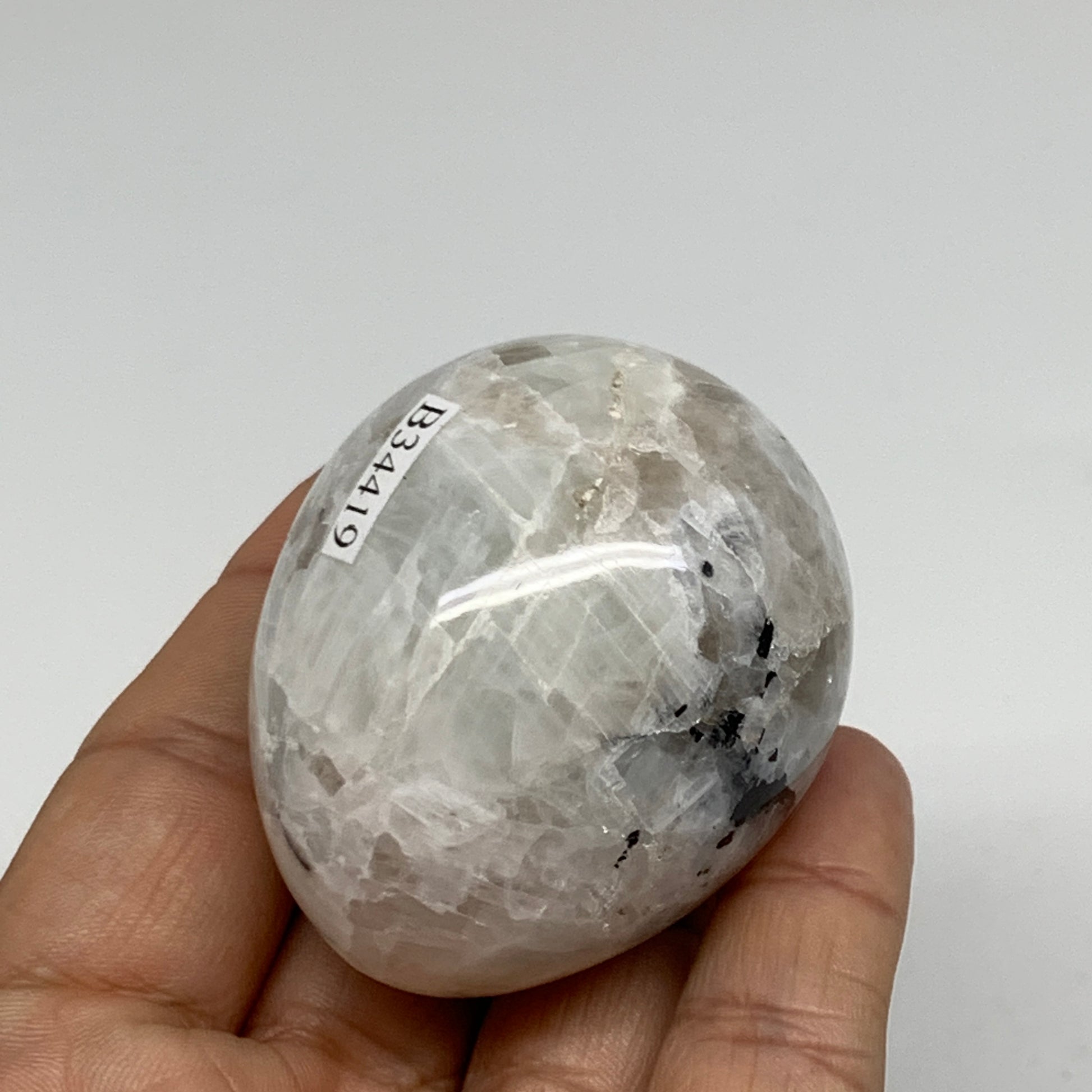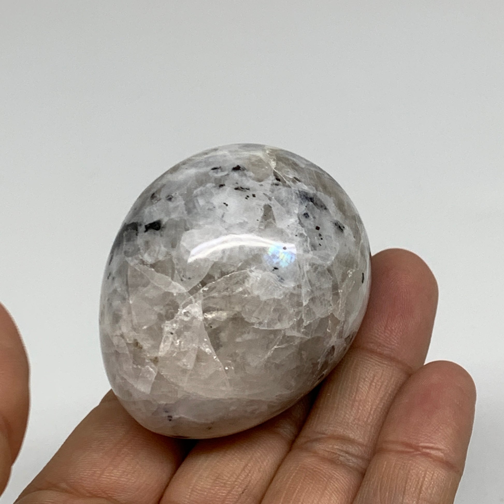 127.7g, 2"x1.7", Natural Gemstone White Rainbow Moonstone Egg, B34419
