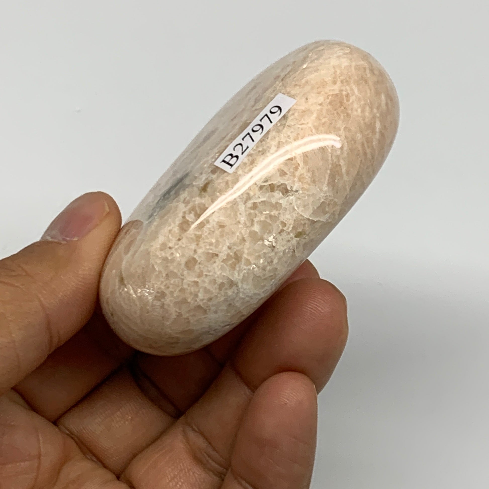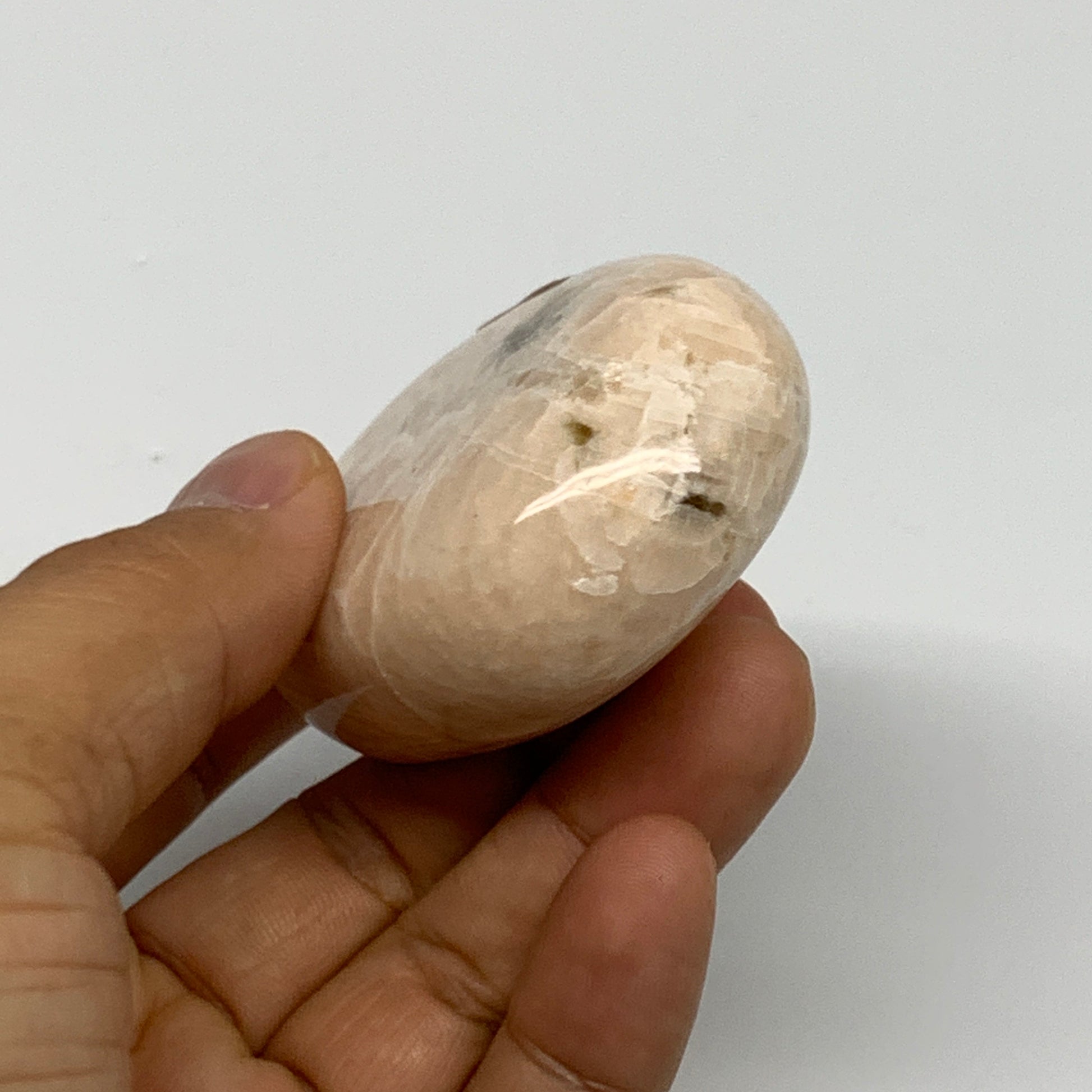 127g,2.5"x1.8"x0.9" Peach Moonstone Crystal Palm-Stone Polished Reiki, B27979