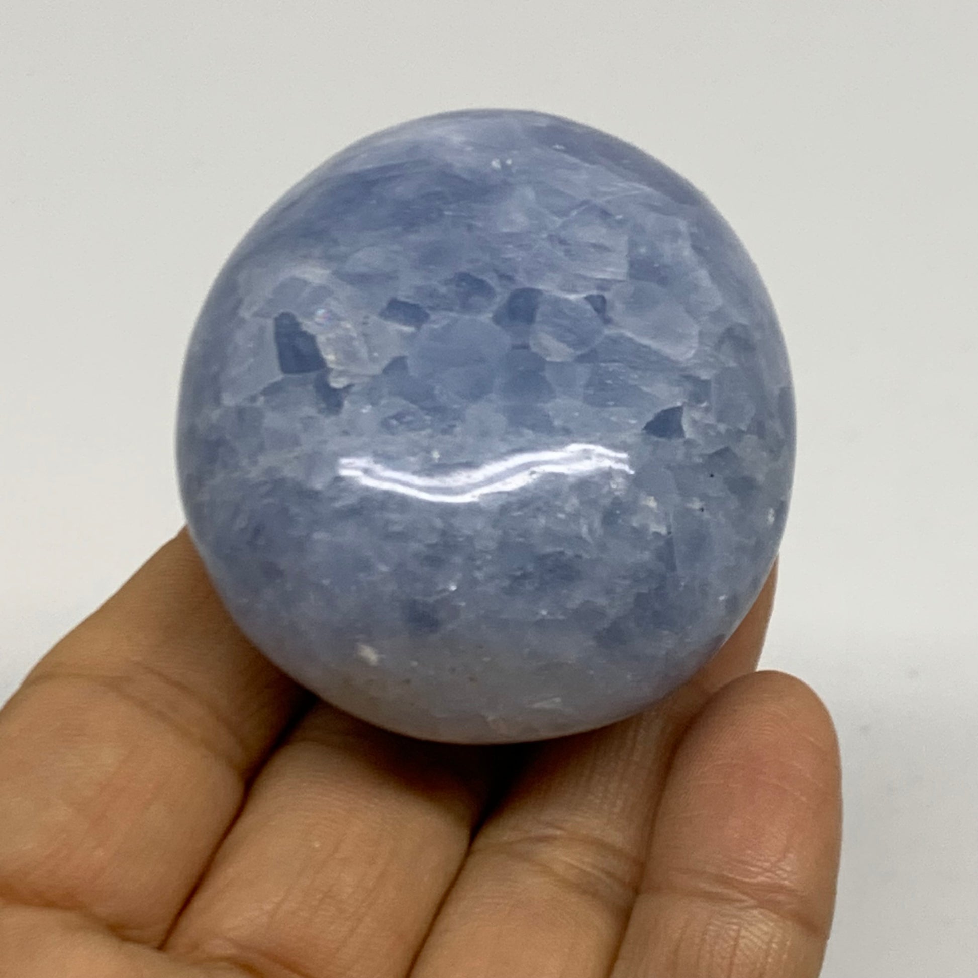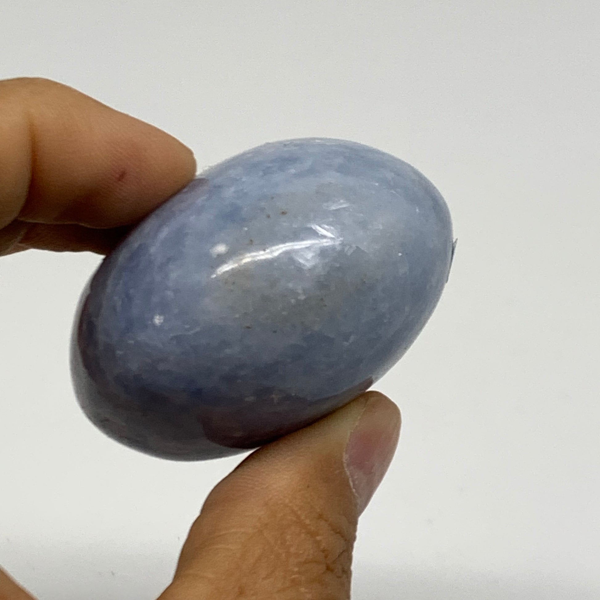 128.1g, 2.2"x1.9"x1.3" Blue Calcite Palm-Stone Polished Tumbled, B38110