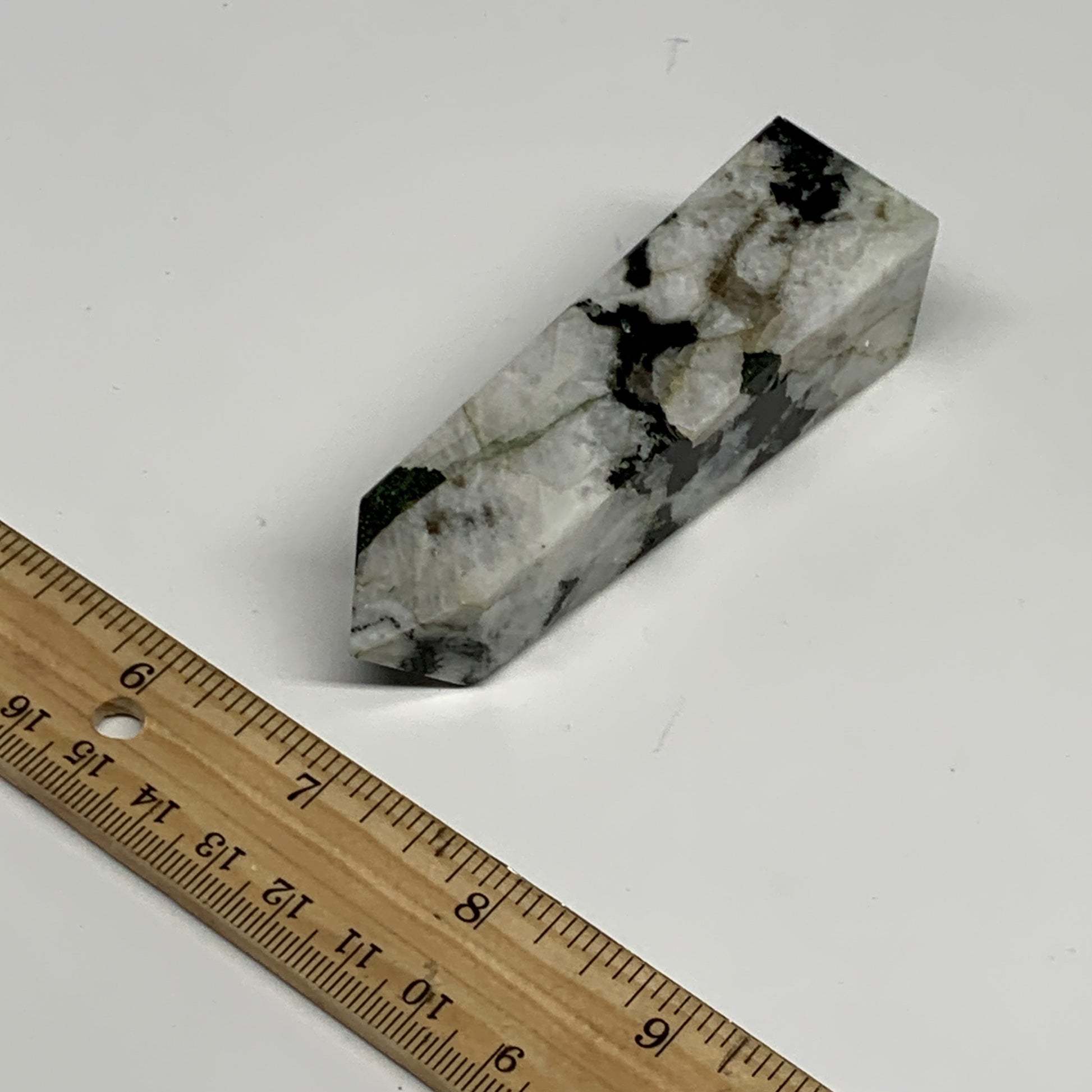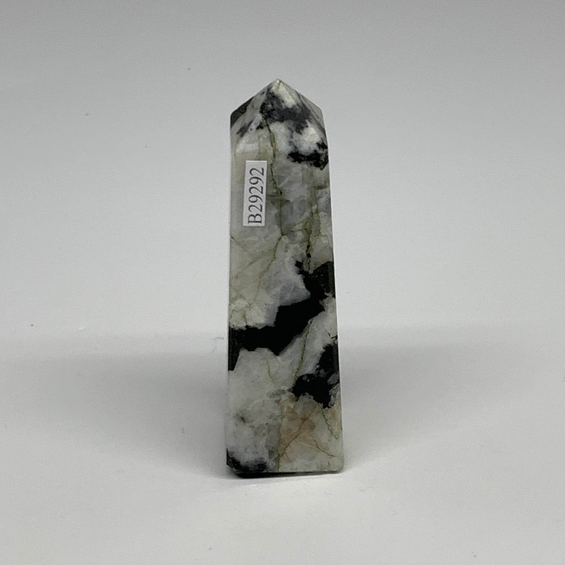 128.4g, 3.7"x1"x1.1" Rainbow Moonstone Tower Obelisk Point Crystal @India,B29292
