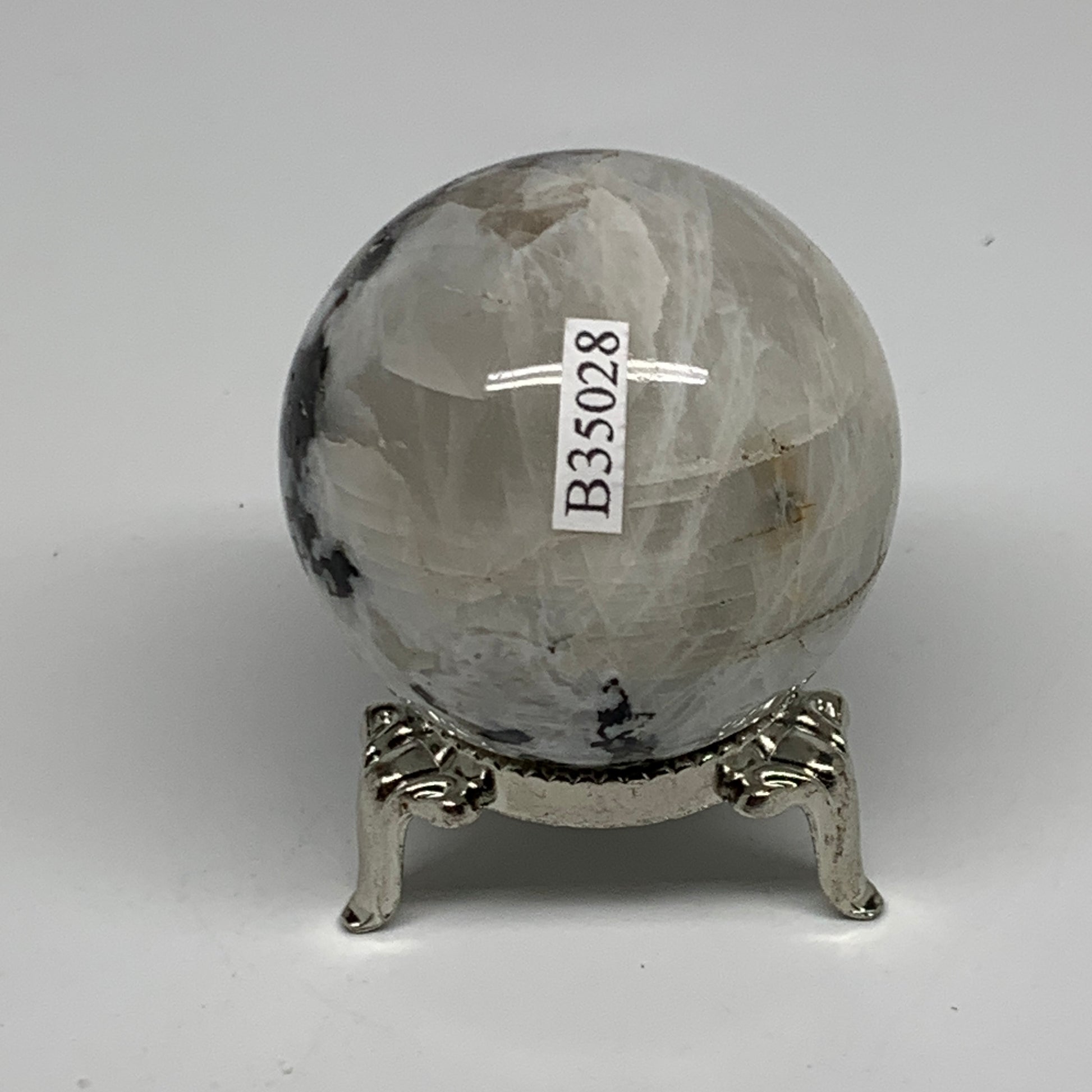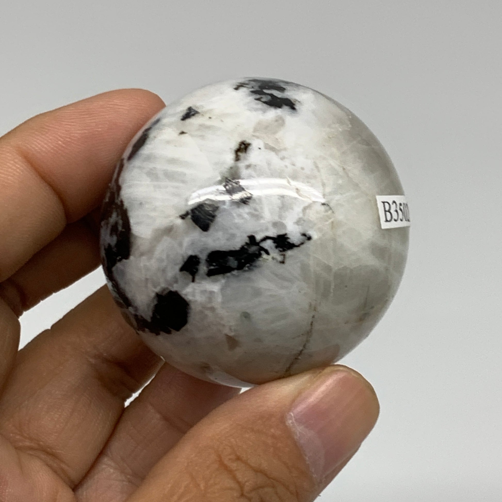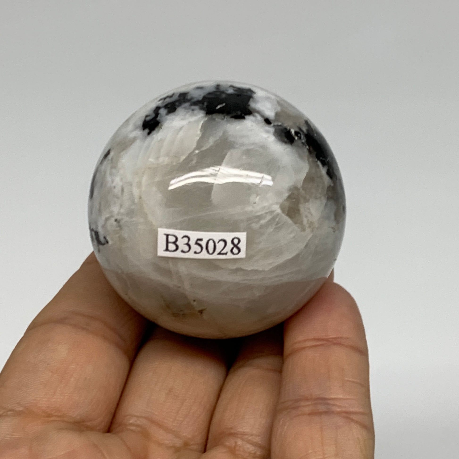 128.5g, 1.8"(45mm), Natural Rainbow Moonstone Sphere Ball Gemstone, B35028