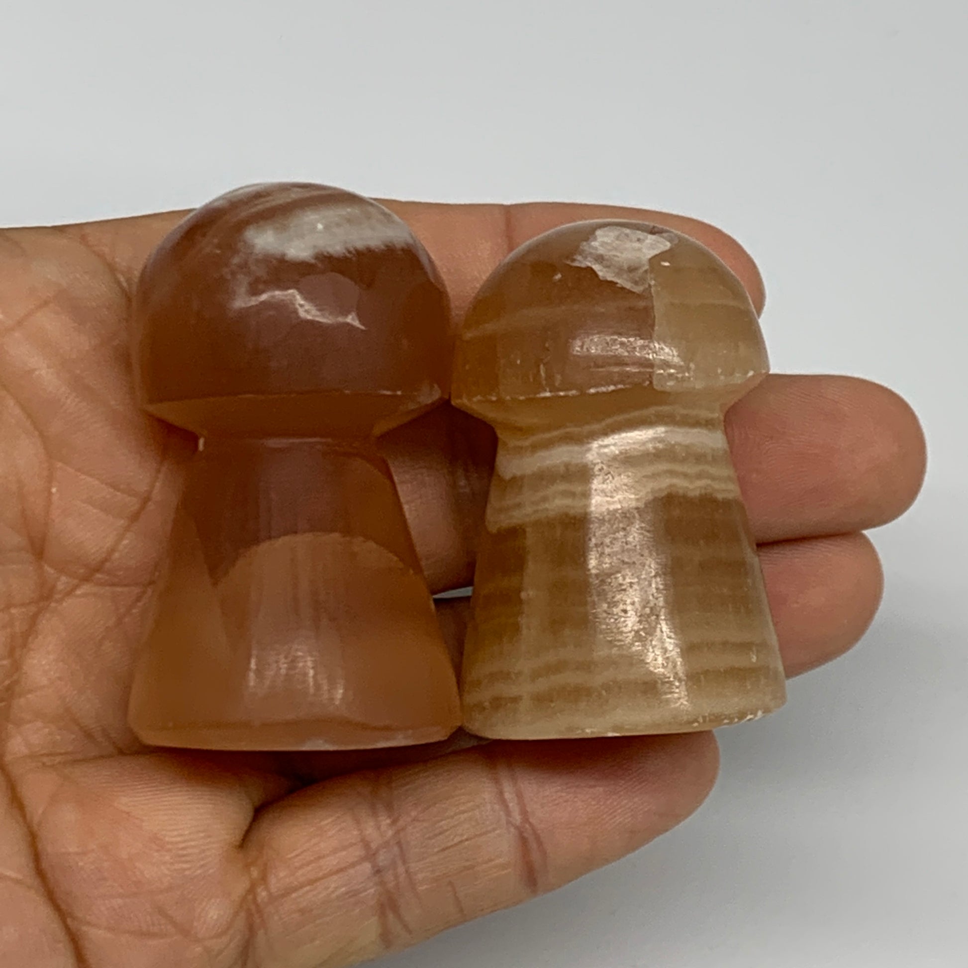 129.2g, 1.8"-2", 2pcs, Natural Honey Calcite Mushroom Gemstone @Pakistan, B31728