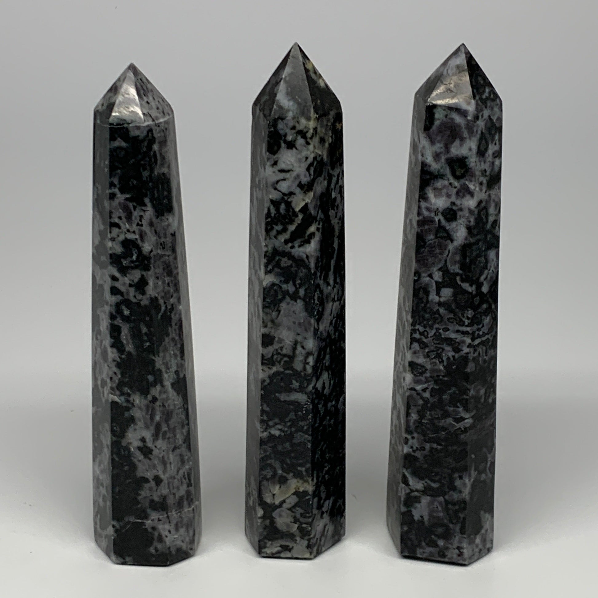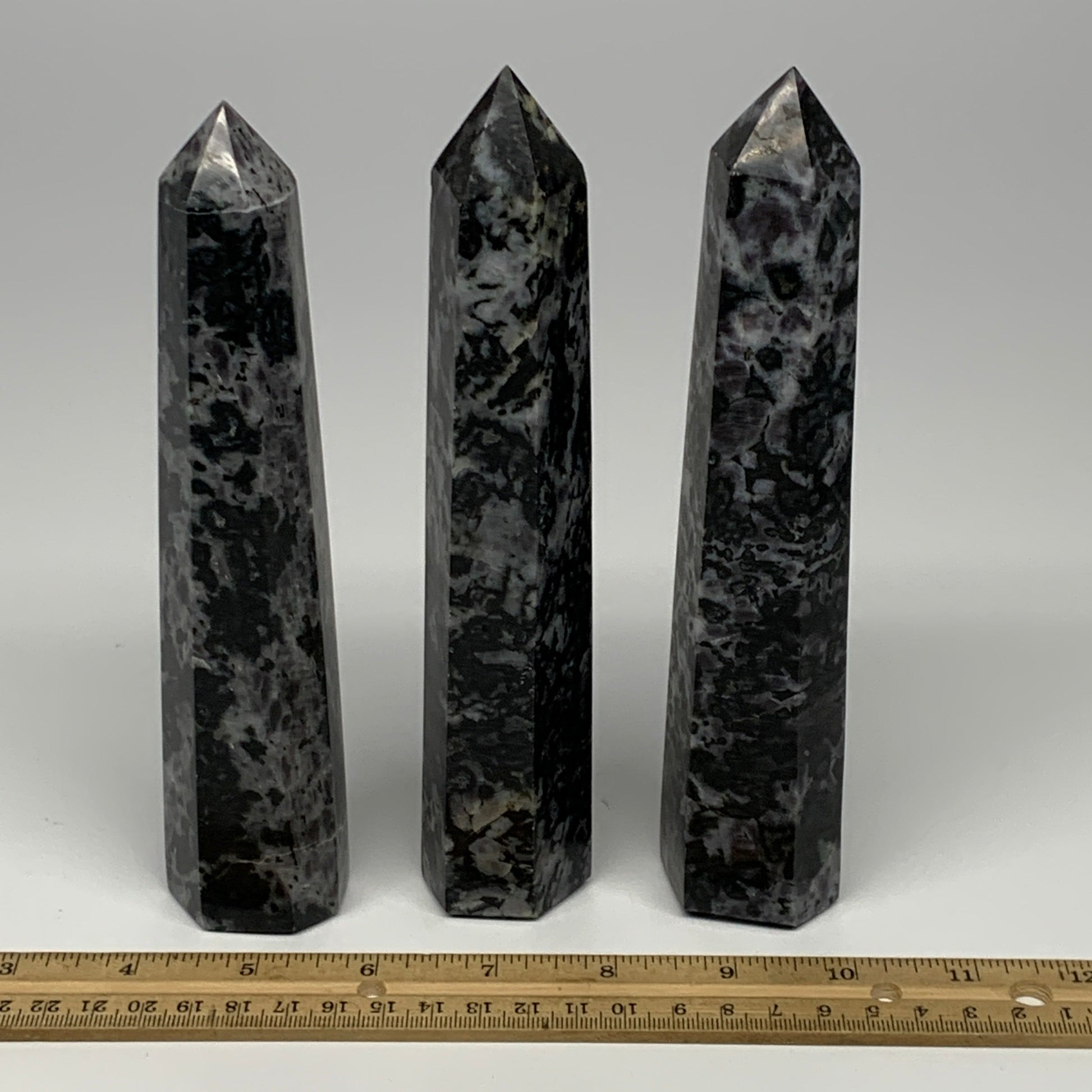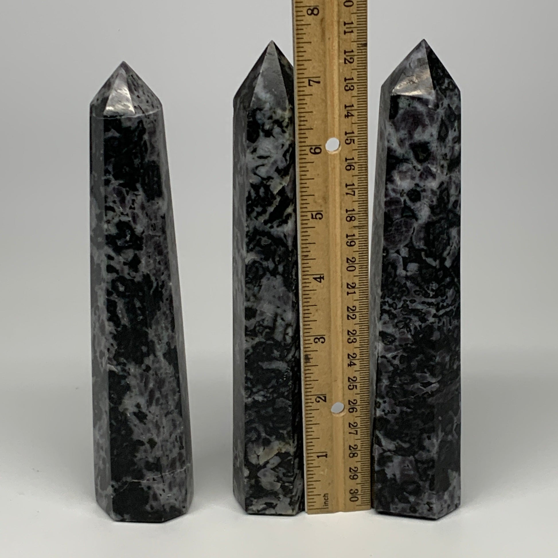 1295 grams, 7.4" - 7.6", 3 pcs, Indigo Gabro Merlinte Towers/Obelisks, B21443
