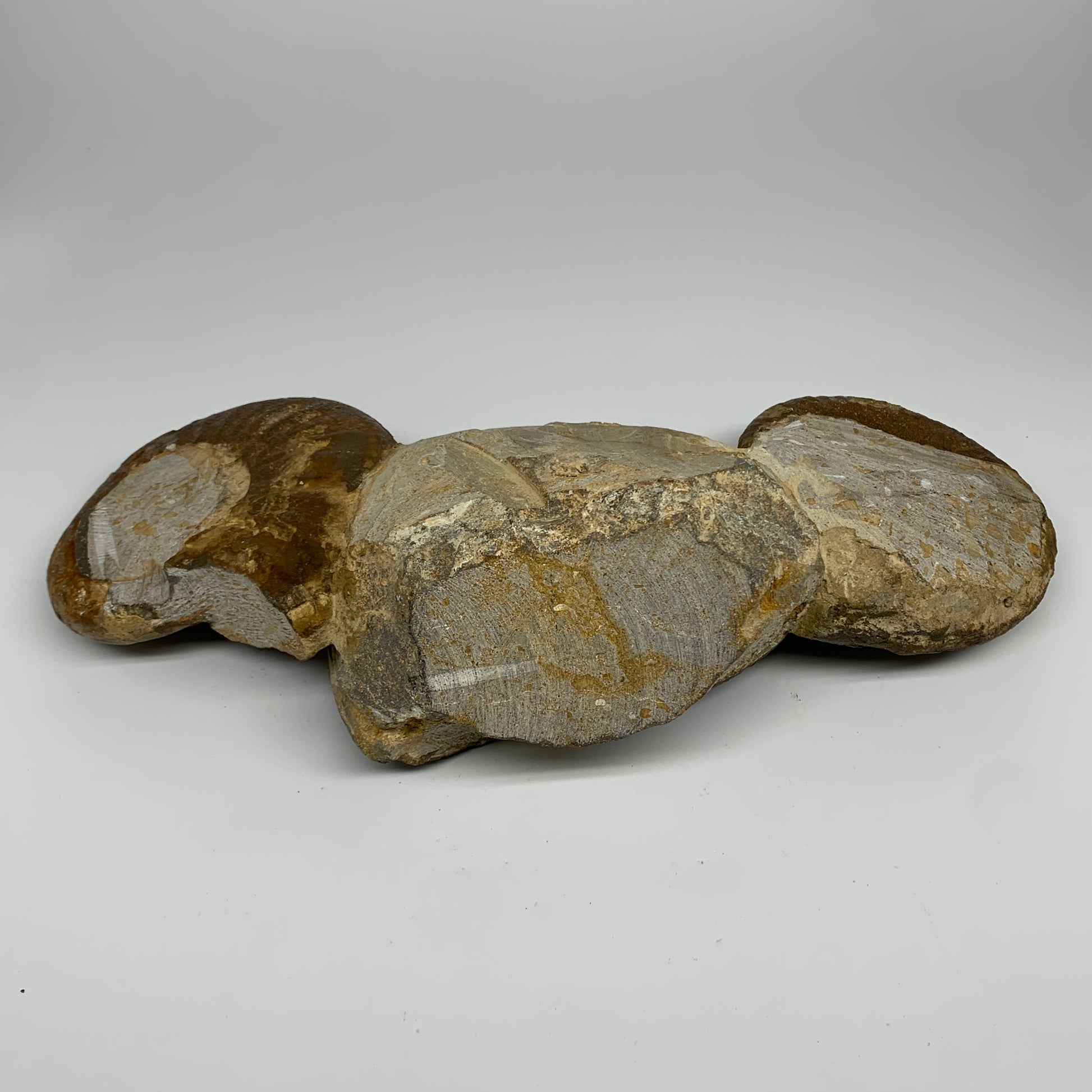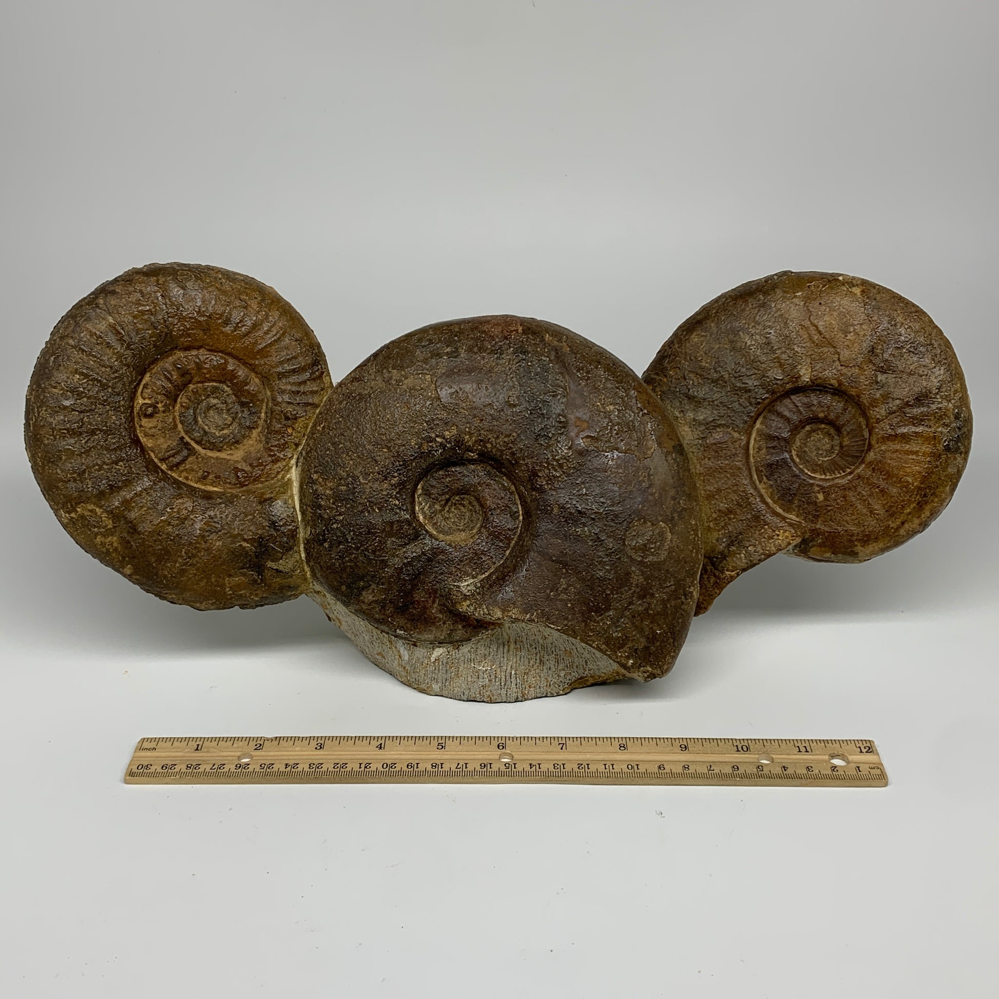 13.4 lbs, 16"x6"x3.5, Rare Ammonite Fossils, 3 piece mounted @Morocco, B33814
